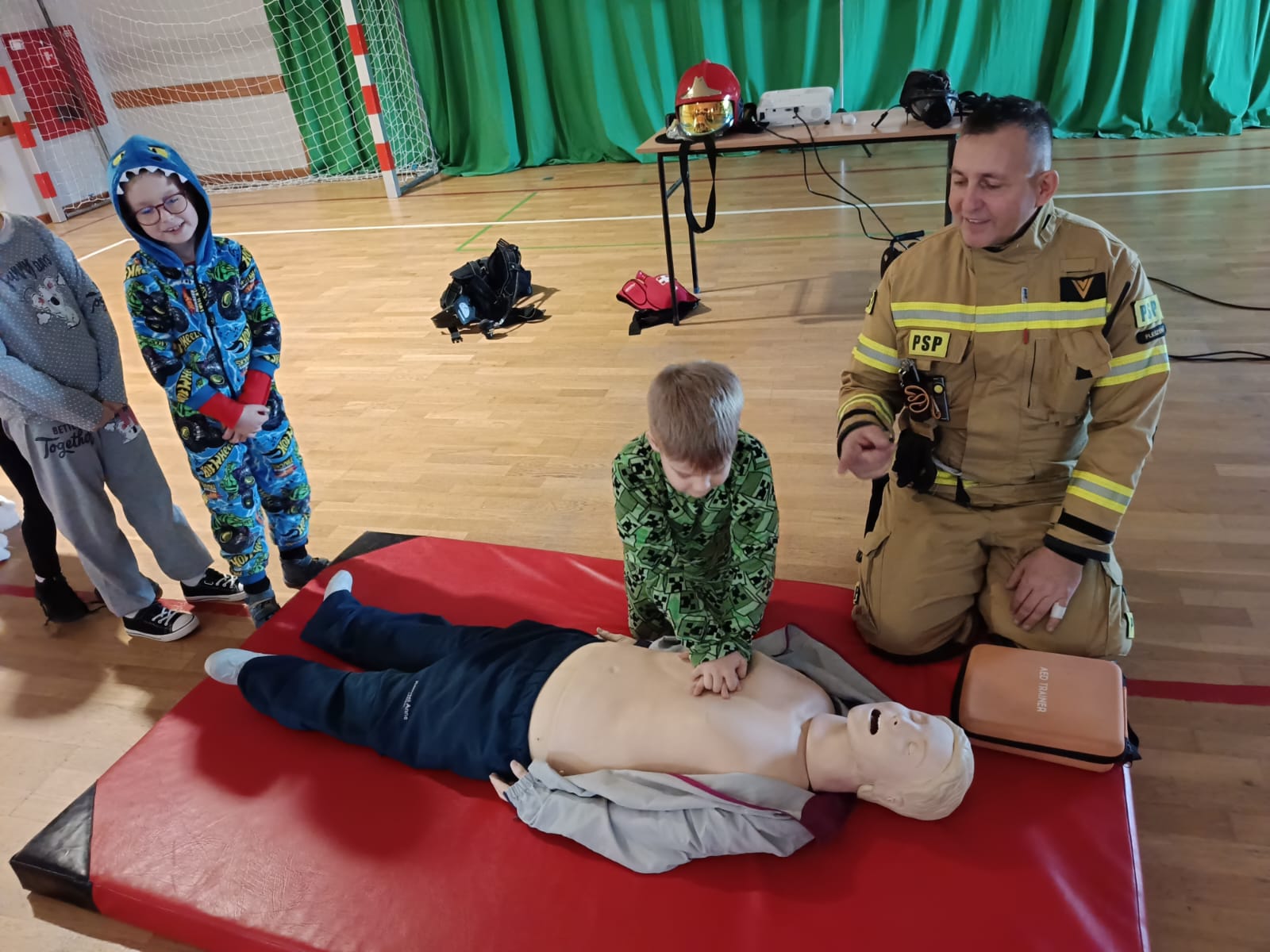 W trakcie tych niecodziennych zajęć dzieci mogły również przećwiczyć udzielanie pierwszej pomocy, prowadzenie resuscytacji i pracę z defibrylatorem automatycznym.