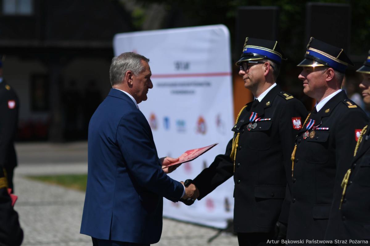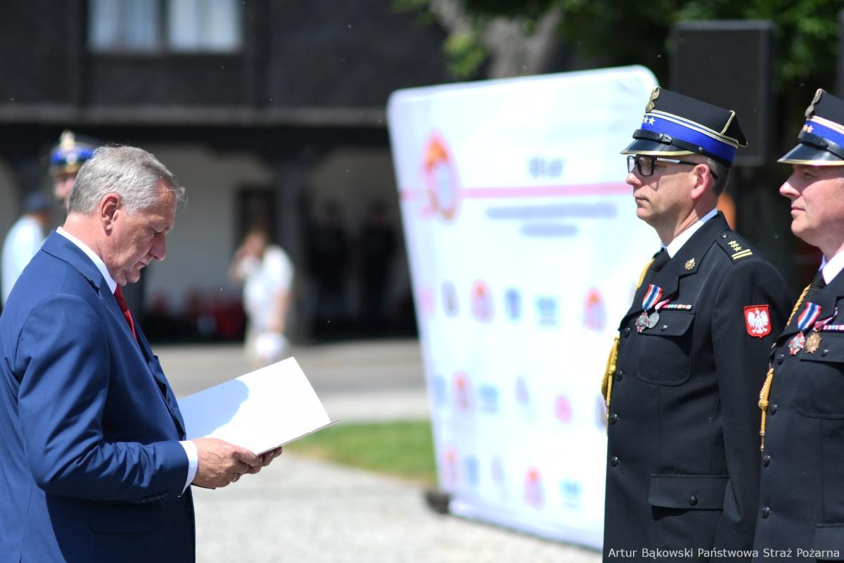 Na uroczystości dwukrotnie wyróżniony został Zastępca Komendanta Powiatowego Państwowej Straży Pożarnej w Pleszewie st. bryg. Waldemar Barański, który rozkazem personalnym Ministra Spraw Wewnętrznych i Administracji awansowany został do stopnia starszego brygadiera. Minister Spraw Wewnętrznych i Administracji odznaczył również st. bryg. Waldemara Barańskiego Srebrną Odznaką „ Zasłużony dla Ochrony Przeciwpożarowej”.