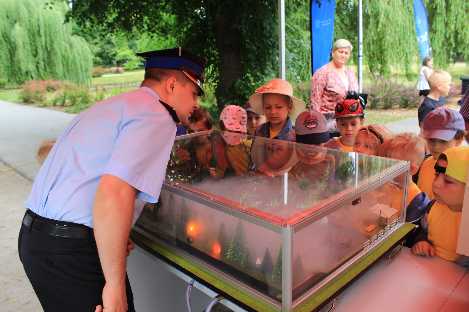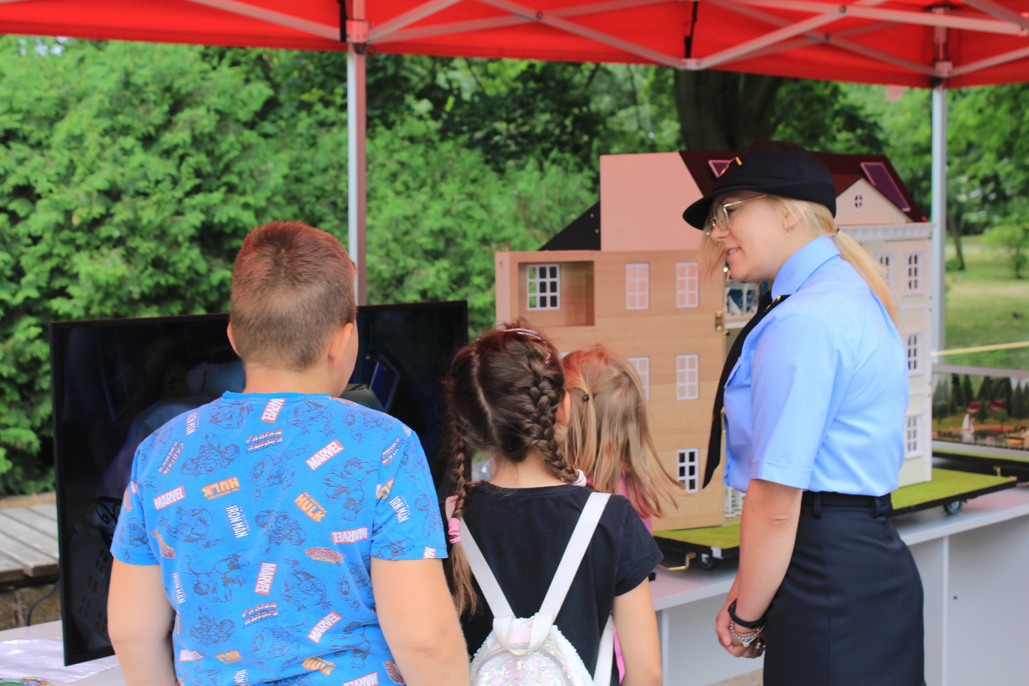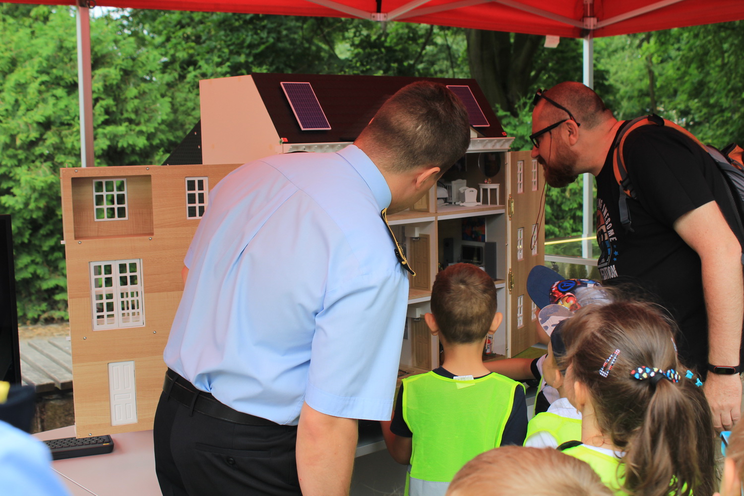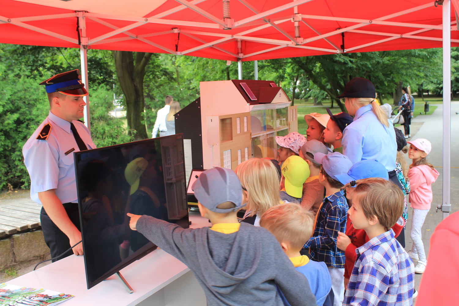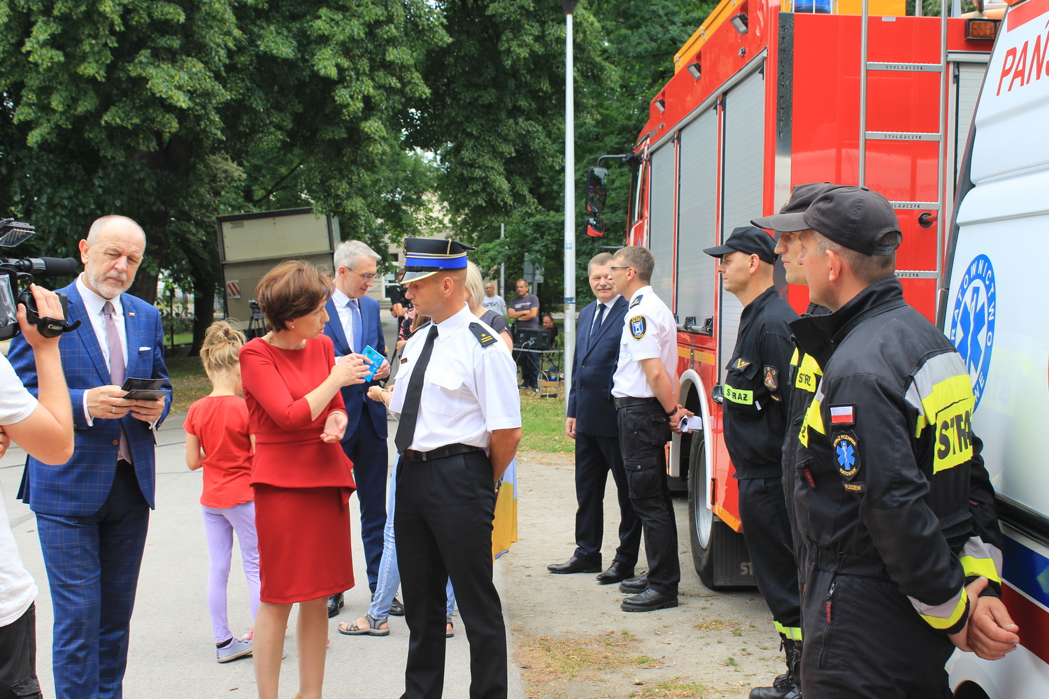 Trasa ta, rozpoczęła się w Pleszewie, który został laureatem tego konkursu w kategorii gmin miejsko-wiejskich. Tego dnia Pani Minister zaprosiła dzieci i rodziców do pleszewskiego parku miejskiego na piknik rodzinny, podczas którego dzieci mogły bawić się w „Miasteczku Rodzina 500+”. Obok wielu przygotowanych tego dnia atrakcji na dzieci czekały również stoiska przygotowane przez Komendę Powiatową Państwowej Straży Pożarnej w Pleszewie. Najmłodsi mogli poznać tam zasady właściwego reagowania i zachowania się w sytuacjach zagrożenia, zobaczyć sprzęt, którego na co dzień używają strażacy, wziąć udział a „akcji gaśniczej”, czy poznać podstawy udzielania pierwszej pomocy. Miejscem, które wzbudziło najwięcej zainteresowania i emocji było stoisko z mobilnym symulatorem zagrożeń jakie możemy spotkać w naszych domach wraz z modułem „jezioro – las”, gdzie z kolei dzieci mogły poznać niebezpieczeństwa jakie czyhają na nie podczas wakacji. Nasze stoiska odwiedzili również specjalni goście tego pikniku – Pani Minister Marlena Maląg oraz Pan Poseł na Sejm RP Pan Jan Mosiński, którzy nie kryli wrażenia jakie wywarł na nich nasz symulator oraz praca edukacyjna i profilaktyczna, którą realizują strażacy pleszewskiej Komendy, a o której opowiedział im Komendant Powiatowy PSP w Pleszewie mł. bryg. Roland Egiert.