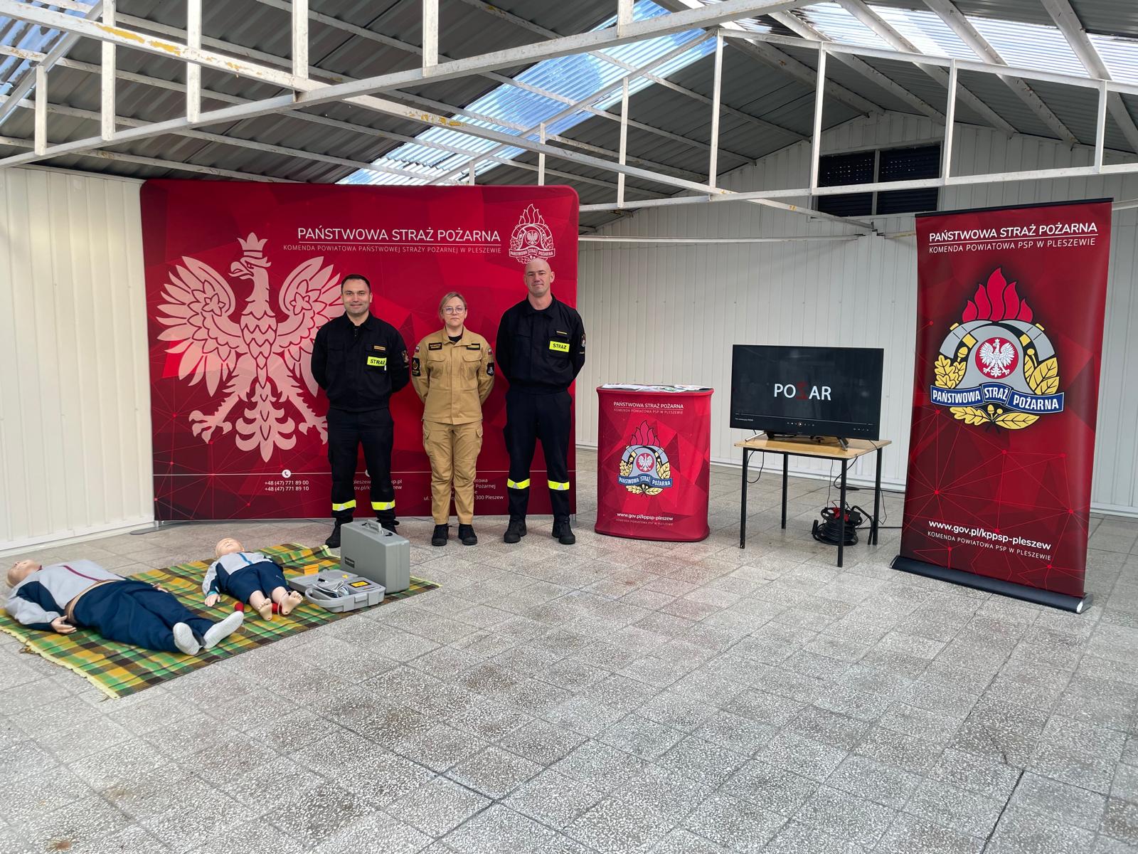 Strażacy przedstawili odwiedzającym m.in. zasady bezpiecznego postępowania podczas okresu grzewczego, sposoby zabezpieczania mieszkań i budynków gospodarczych przed pożarem, jak również zagrożenia związane z emisją tlenku węgla. Uwagę zwiedzających przyciągał również wystawiony przez strażaków sprzęt gaśniczy i ratowniczy Jednostki Ratowniczo – Gaśniczej PSP w Pleszewie. Ogromnym zainteresowaniem cieszył się pokaz ratownictwa medycznego, podczas którego każdy chętny mógł przypomnieć sobie zasady udzielania pierwszej pomocy. Strażackie stoisko spotkało się z niezwykłym zainteresowaniem, co świadczyć może o coraz większej świadomości zagrożeń pożarowych naszego społeczeństwa.