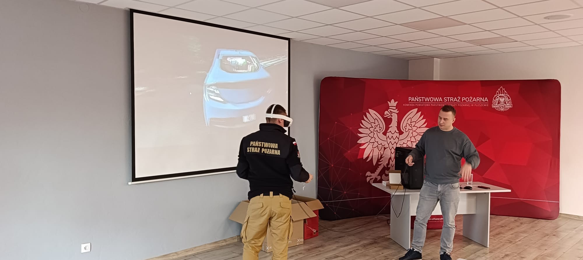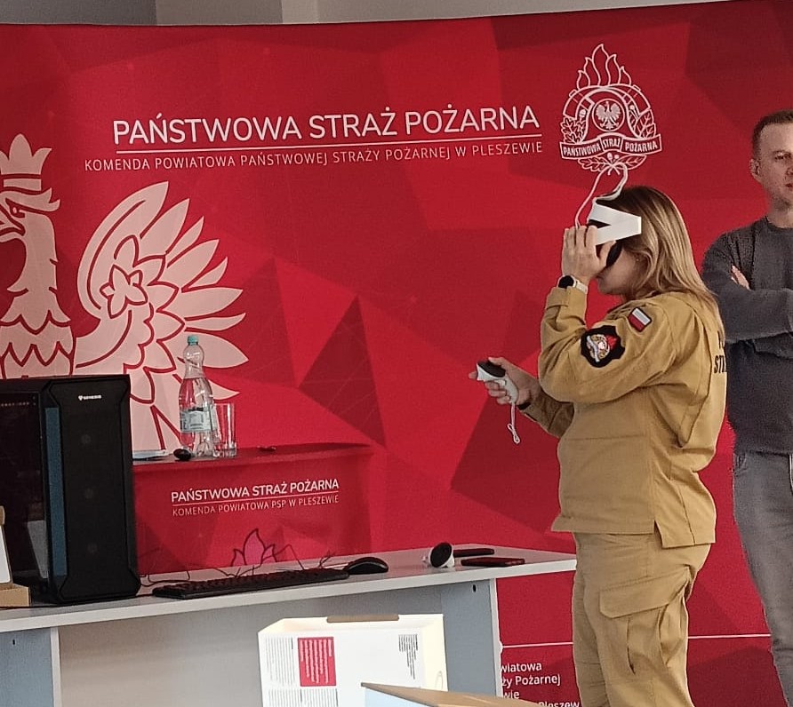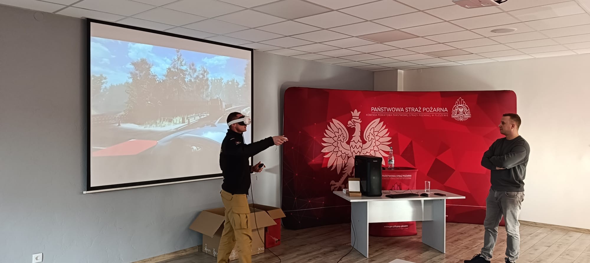 Pleszewscy strażacy uczyli się i sprawdzali możliwości rozwiązań szkoleniowych VR (wirtualnej rzeczywistości) i sprzętu zakupionego przez Komendę Powiatową PSP w Pleszewie.