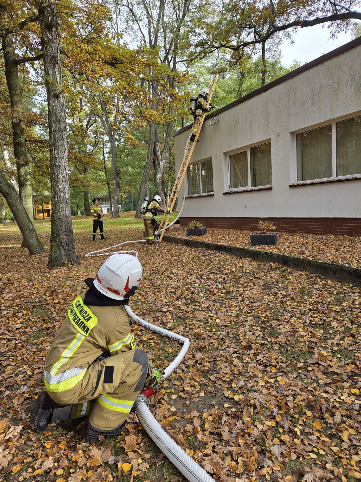 W trzecim epizodzie strażacy zmierzyli się z założeniem dotyczącym pożaru wewnętrznego w obiekcie, w którym znajdowały się osoby poszkodowane. Działania obejmowały procedurę wejścia do pomieszczenia objętego pożarem, przeszukanie budynku, udzielanie kwalifikowanej pierwszej pomocy (KPP), budowę stanowiska gaśniczego na drabinie oraz podawanie prądów wody w obronie sąsiednich obiektów.