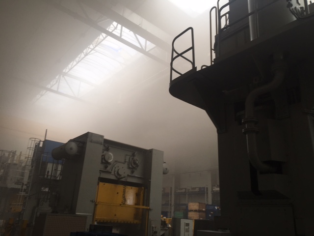 Po przybyciu na miejsce pierwszych zastępów straży pożarnej stwierdzono, że doszło do pożaru w instalacji wentylacyjnej stanowiącej odciągi maszyn produkcyjnych co spowodowało zadymienie całego obiektu.