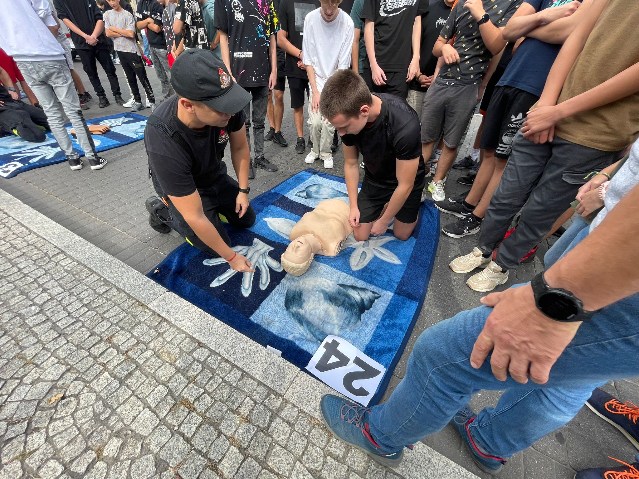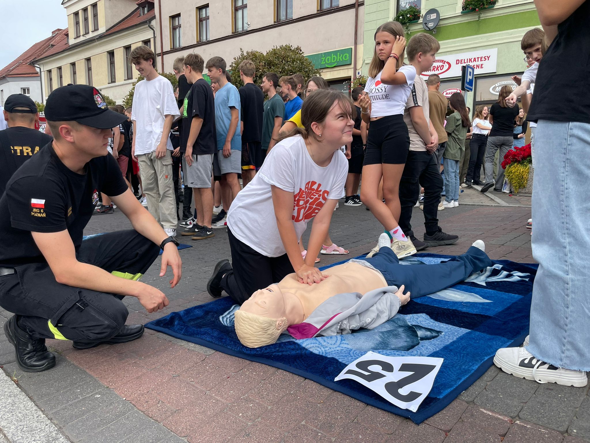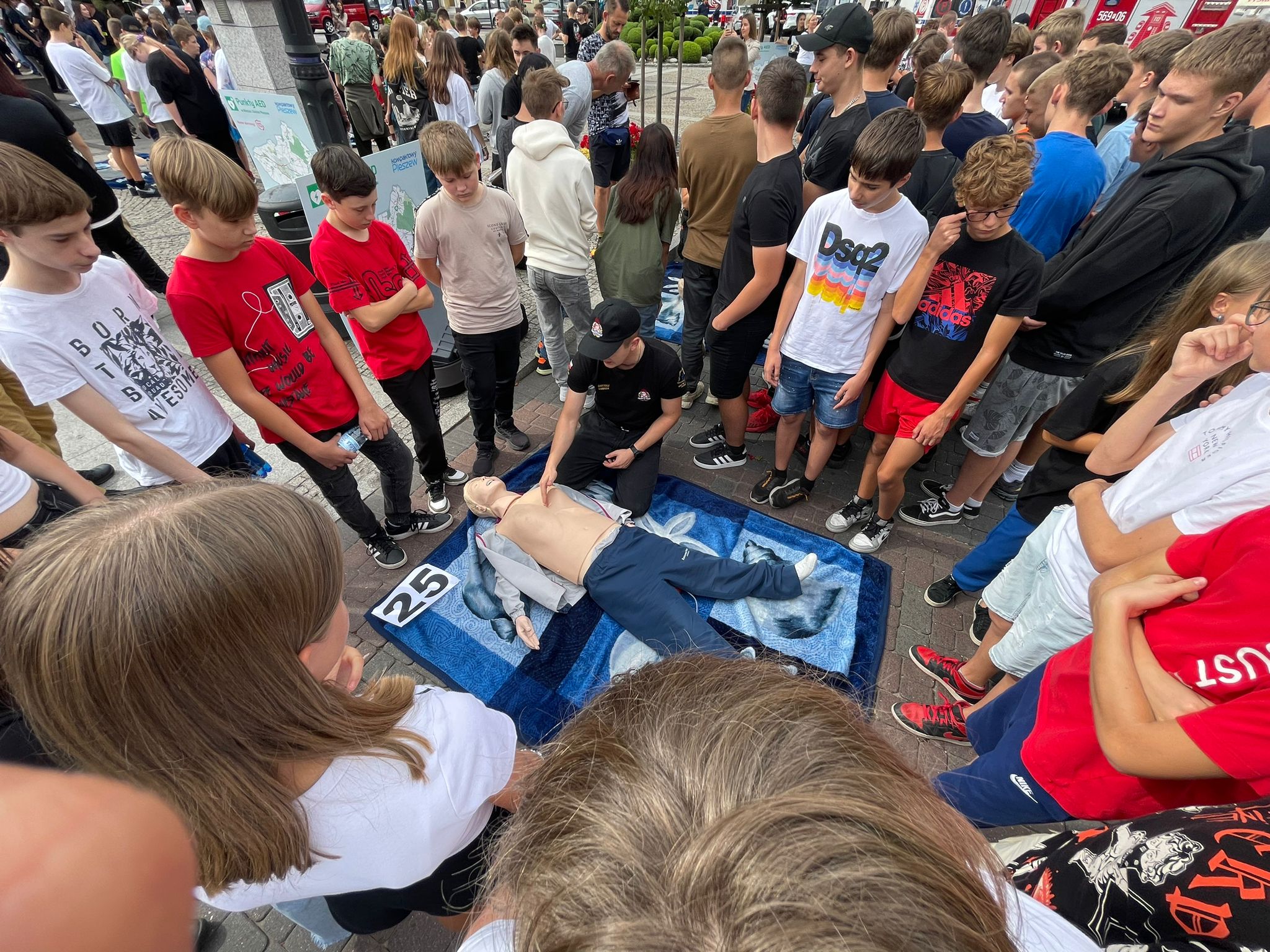 Wspólną resuscytację zgromadzone na pleszewskim rynku grupy rozpoczęły w samo południe. Jednocześnie akcję przeprowadzono w pleszewskich szkołach i przedszkolach. W sumie, w całej akcji uczestniczyło ponad pięć tysięcy osób - starsi ćwiczyli na fantomach, a przedszkolaki uczyły się resuscytacji na pluszowych misiach.