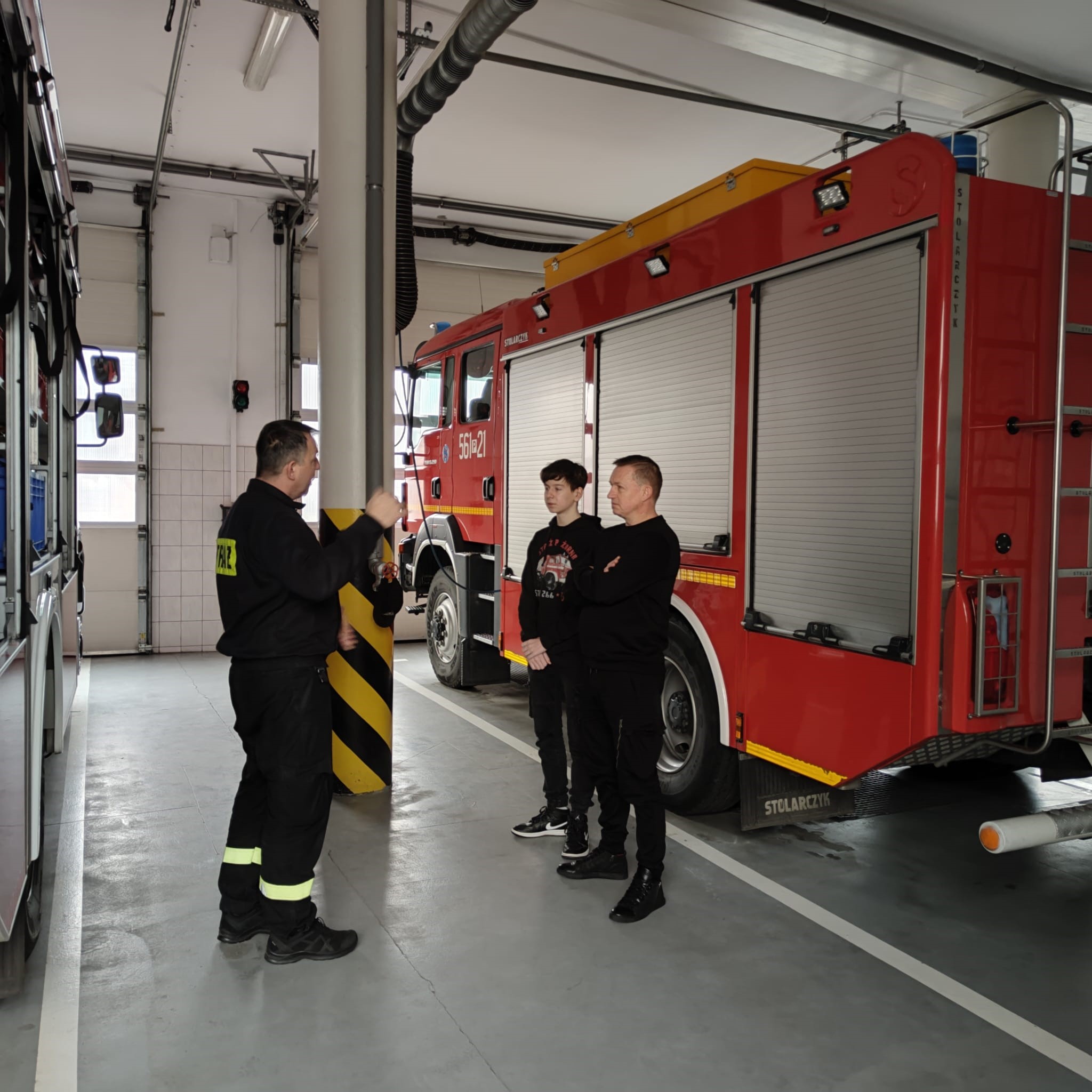 Naszych gości przywitał Komendant Powiatowy PSP w Pleszewie bryg. Roland Egiert. Następnie Pan Piotr z synem Brajanem mieli okazję zwiedzić całą komendę, stanowisko kierowania komendanta powiatowego oraz jednostkę ratowniczo – gaśniczą, gdzie strażacy pokazali im i opowiedzieli o sprzęcie służącym do działań ratowniczo-gaśniczych, a także o specyfice pracy strażaka.