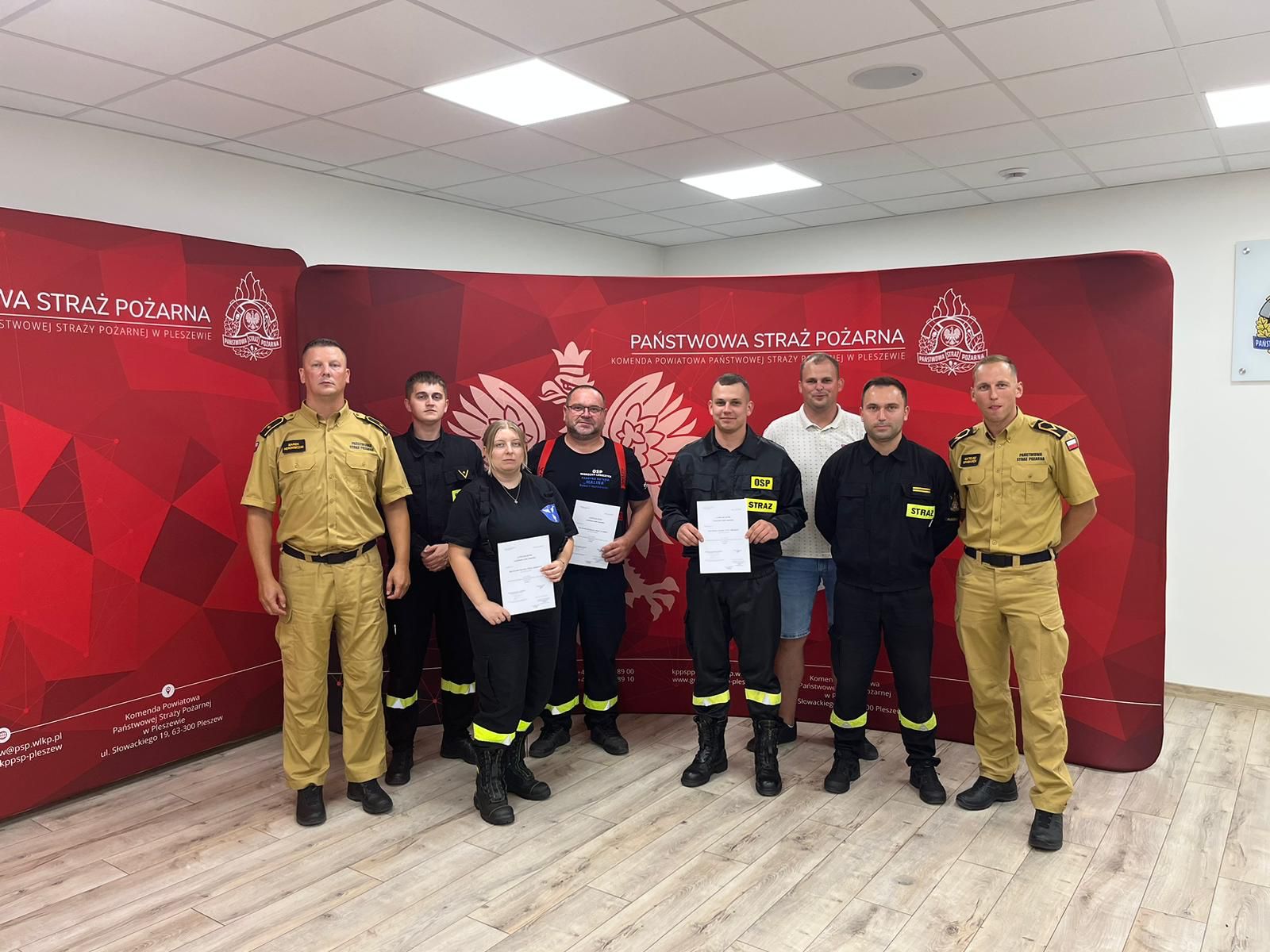 Egzamin przeprowadził mł. asp. Marek Heronimczak, w asyście sekc. Damiana Talagi oraz Powiatowego Koordynatora Ratownictwa Medycznego PSP w Pleszewie - mł. asp. Bartosza Sawady.
