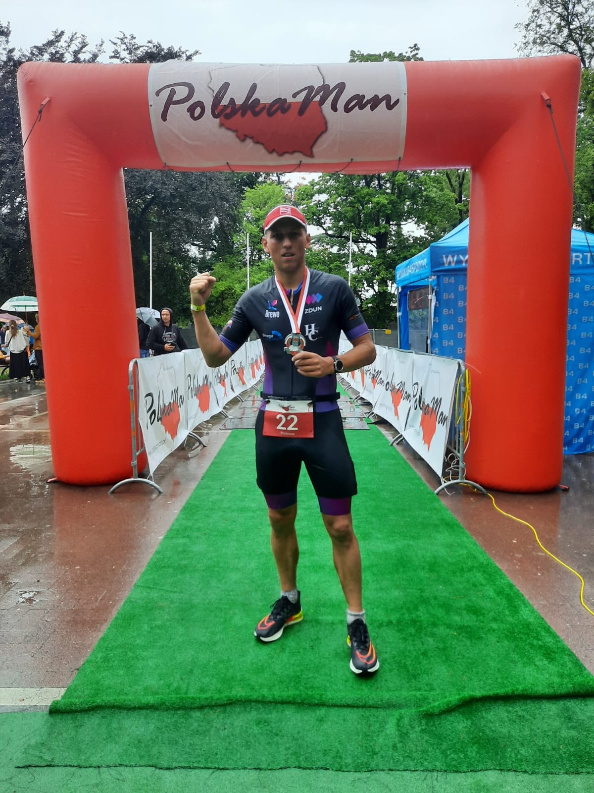 Zmagania zawodników odbywały się na kilku dystansach. Podczas swojego startu Mateusz zmierzył się z dystansem długim nazywanym "ironman, t.j.: 3,8km pływania, 180km jazdy rowerem oraz 42,195km biegu. „Pogoda w tym dniu nie pomagała, zwłaszcza na rowerze. Ulewny deszcz przez cały czas trwania zawodów dawał się we znaki” – wspomina nasz reprezentant. Jednak mimo tak niesprzyjających warunków ukończyłem zawody z czasem 10 godzin 29 minut i 27 sekund co pozwoliło mu na zajęcie 16 miejsca open i 9 miejsce w kategorii wiekowej. O tym jak ciężkie były to zawody świadczy fakt, że 16 osób w ogóle ich nie ukończyło.