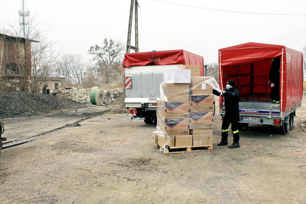 Prawie 15 000 maseczek, 10 000 rękawiczek jednorazowych, 1000 kombinezonów ochronnych, 1000 płynów dezynfekcyjnych oraz gogle ochronne, przyłbice i termometry bezdotykowe dostarczono do naszych druhów transportem przygotowanym wspólnie przez Komendę Powiatową Państwowej Straży Pożarnej w Pleszewie i Ochotniczą Straż Pożarną w Dobrzycy.