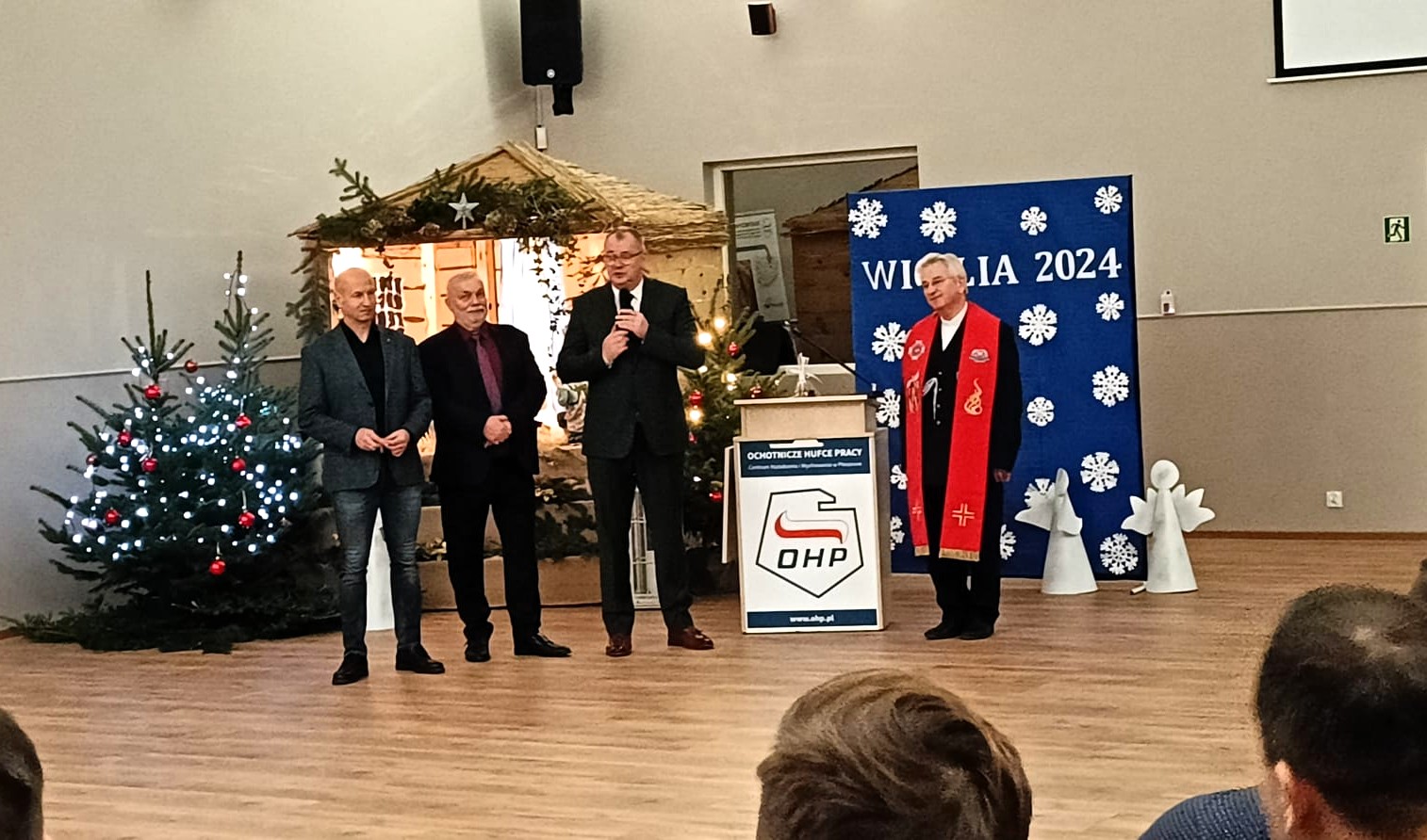 Podczas uroczystości nie zabrakło okolicznościowych życzeń i przemówień, czytania biblii i śpiewania kolęd. Punktem kulminacyjnym było oczywiście łamanie się opłatkiem i składanie życzeń świątecznych, które były okazją do podzielenia się życzliwością i dobrym słowem. Następnie wszyscy uczestnicy zasiedli do suto zastawionego wigilijnymi potrawami stołu.