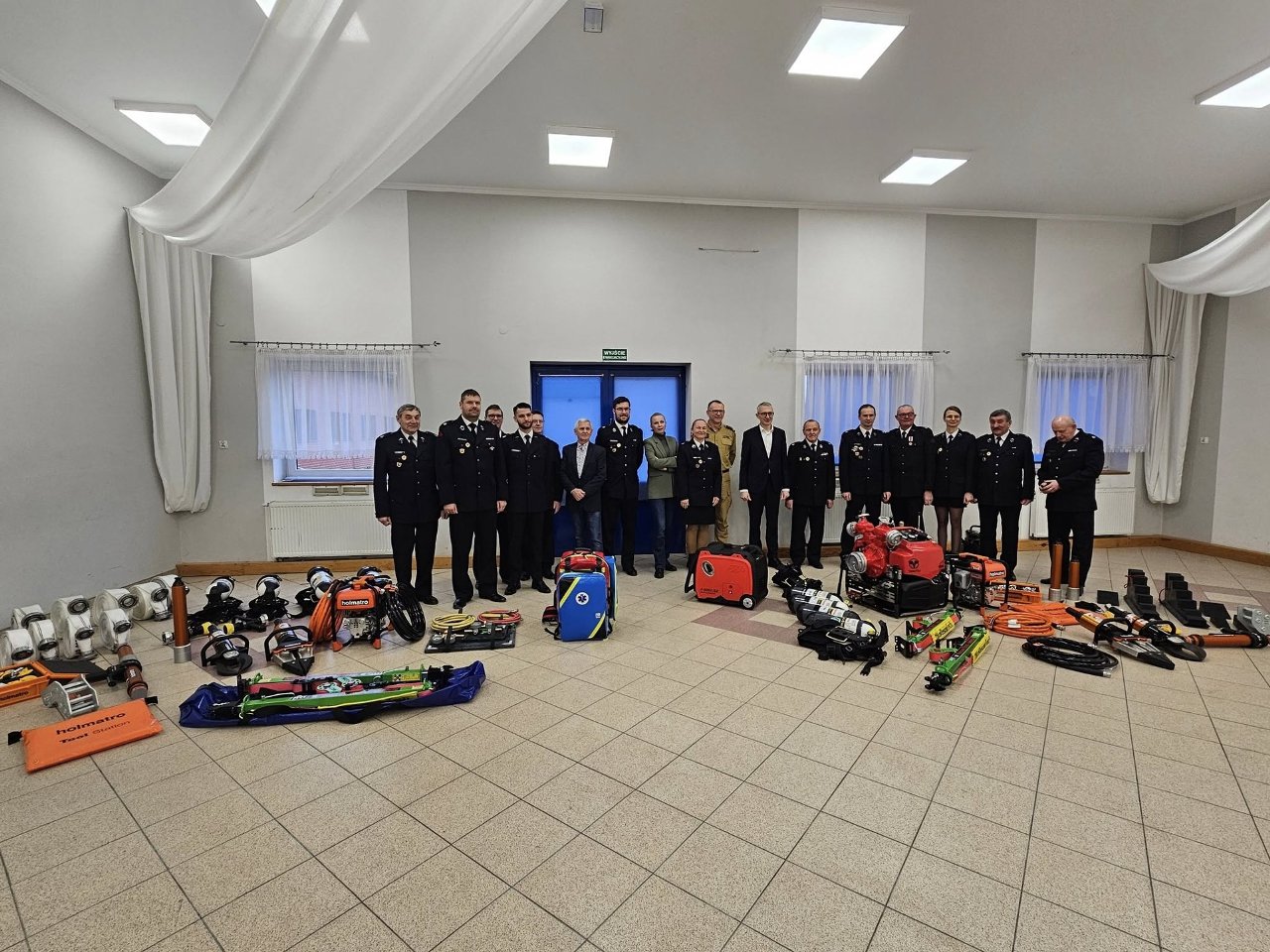 Druhowie z Pleszewa wzbogacili się o zestaw narzędzi hydraulicznych (nożyce, rozpierak ramieniowy, rozpierak kolumnowy, pompa hydrauliczna, wąż hydrauliczny, zestaw łańcuchów do rozpieraka ramiennego i kolumnowego, wspornik progowy, stanowisko narzędziowe), drabinę strażacką, agregat prądotwórczy, aparaty powietrzne, zestaw podpór, prądownice, węże tłoczne, drabiny nasadkowe, zestaw poduszek wysokociśnieniowych oraz zestaw ratownictwa medycznego. Łączna wartość to 220 591,80 zł.