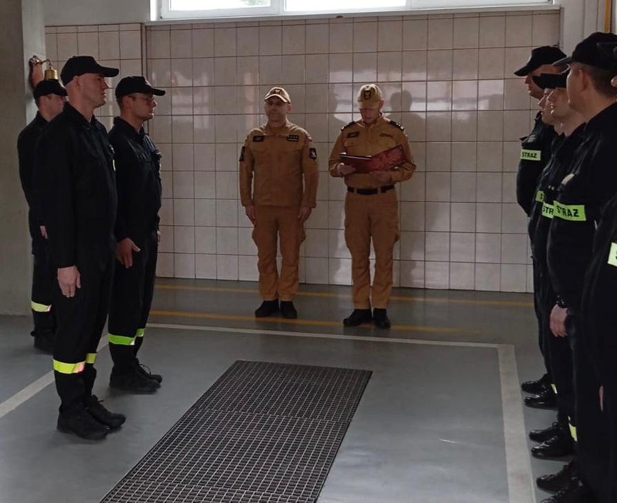 W obecności dwóch zmian służbowych wręczenia aktów mianowania dokonał Komendant Powiatowy Państwowej Straży Pożarnej w Pleszewie bryg. Roland Egiert w asyście st. kpt. Pawła Mimiera – dowódcy pleszewskiej Jednostki Ratowniczo – Gaśniczej.