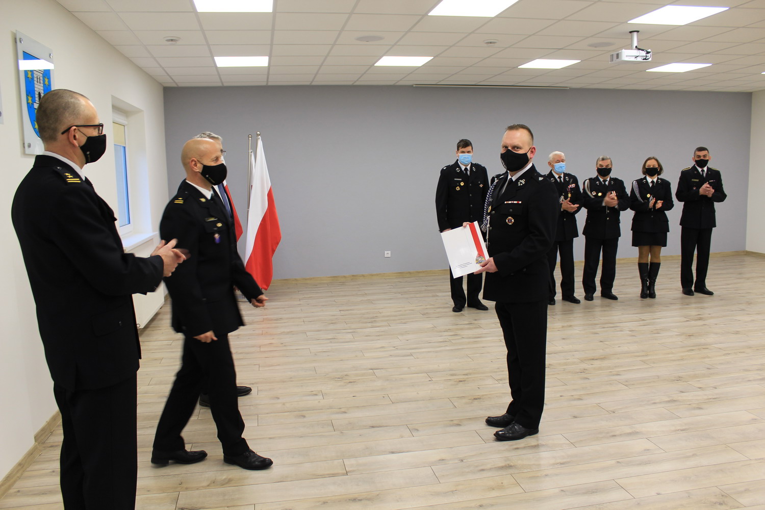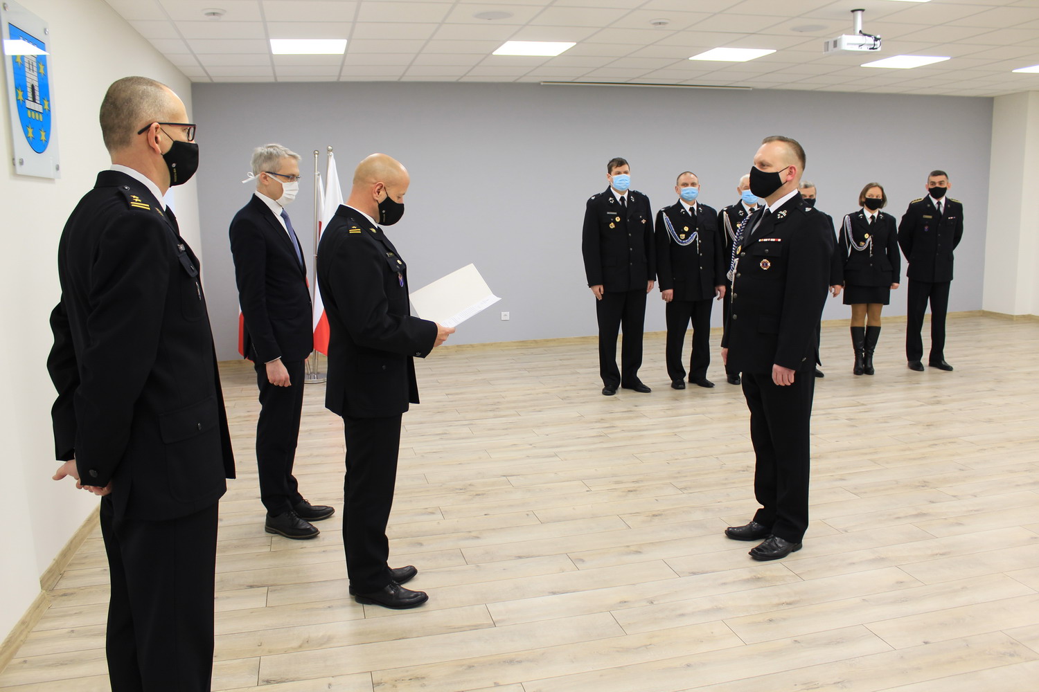 Komendant Powiatowy PSP, mł. bryg. Roland Egiert, w towarzystwie Burmistrza Miasta Pleszewa – pana Arkadiusza Ptaka, swojego zastępcy bryg. Waldemara Barańskiego oraz zarządu Ochotniczej Straży Pożarnej w Pleszewie odczytał tę decyzję, a następnie przekazał ją na ręce Prezesa Ochotniczej Straży Pożarnej w Pleszewie druha Leszka Kołaskiego.