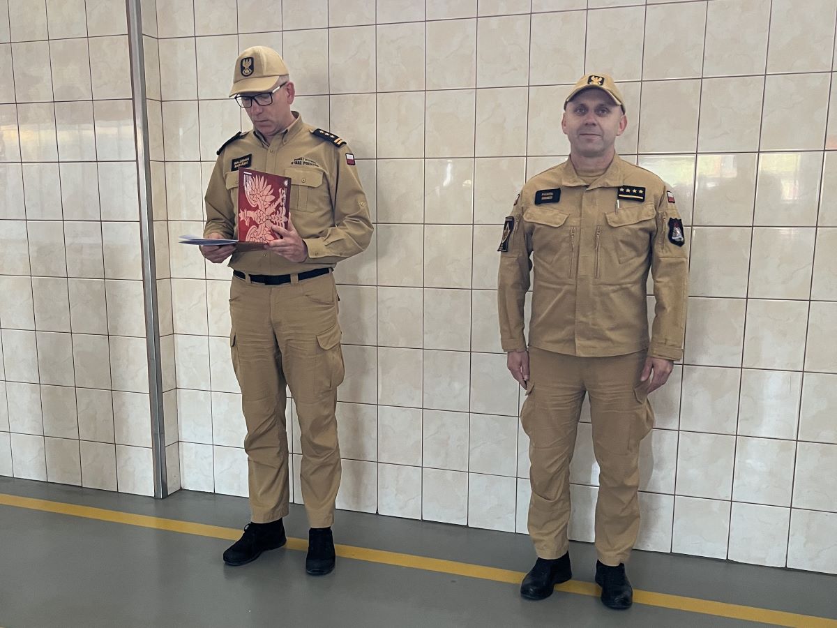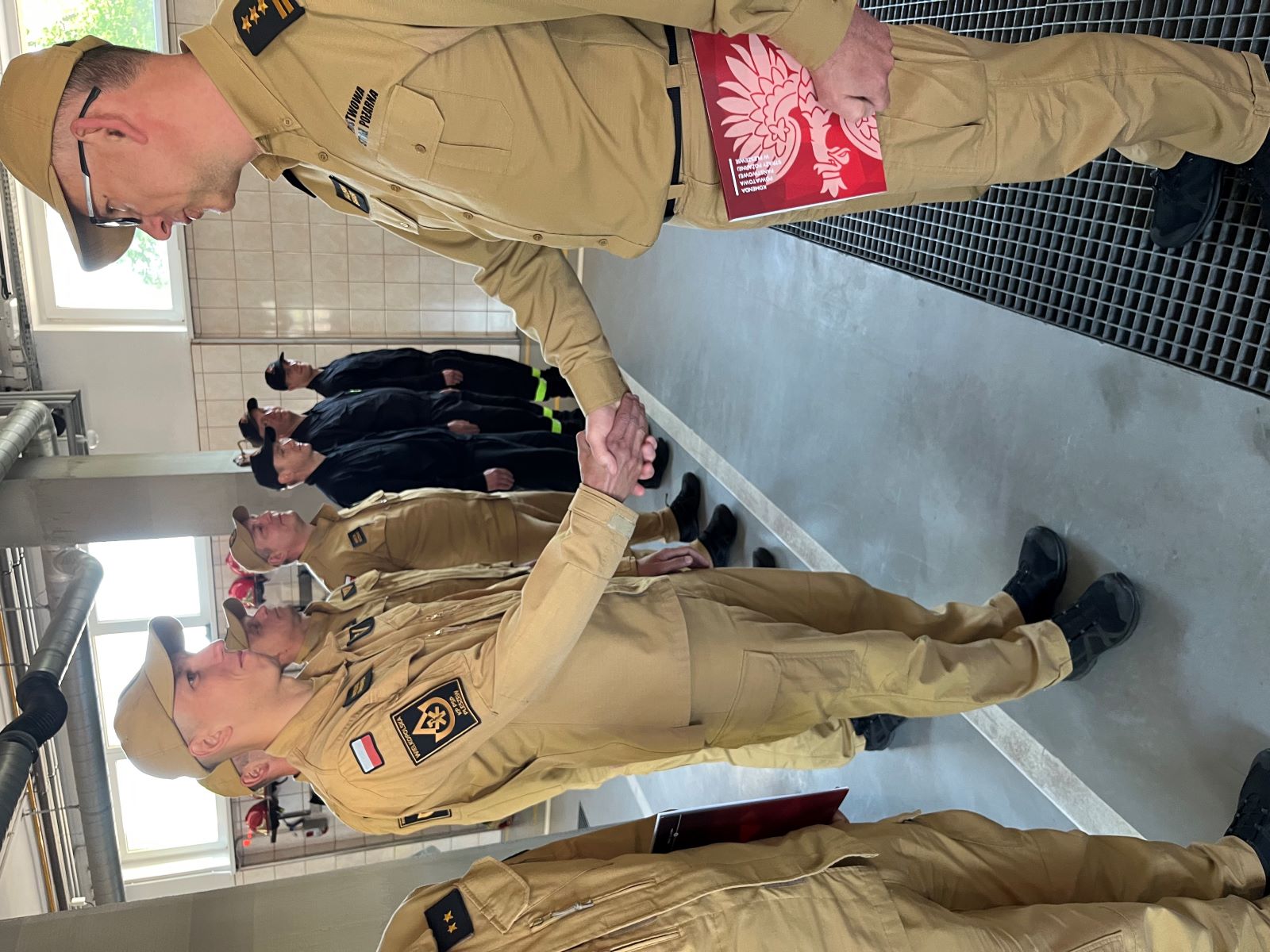 Decyzją Wielkopolskiego Komendanta Wojewódzkiego Państwowej Straży Pożarnej przyznano nagrody za zaangażowanie w trakcie prowadzonych działań ratowniczych w warunkach trudnych i niebezpiecznych, w ramach centralnego odwodu operacyjnego, związanych z pożarem w Biebrzańskim Parku Narodowym w miesiącu kwietniu 2025 r. W obecności dwóch zmian służbowych wręczenia nagród asp. Michałowi Wardęckiemu oraz mł.asp. Mateuszowi Grabarkowi dokonał Zastępca Komendanta Powiatowego Państwowej Straży Pożarnej w Pleszewie st. bryg. Waldemar Barański w asyście Dowódcy Jednostki Ratowniczo-Gaśniczej st.kpt. Pawła Mimiera.