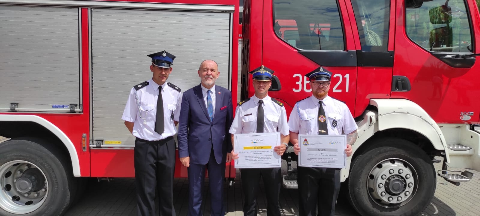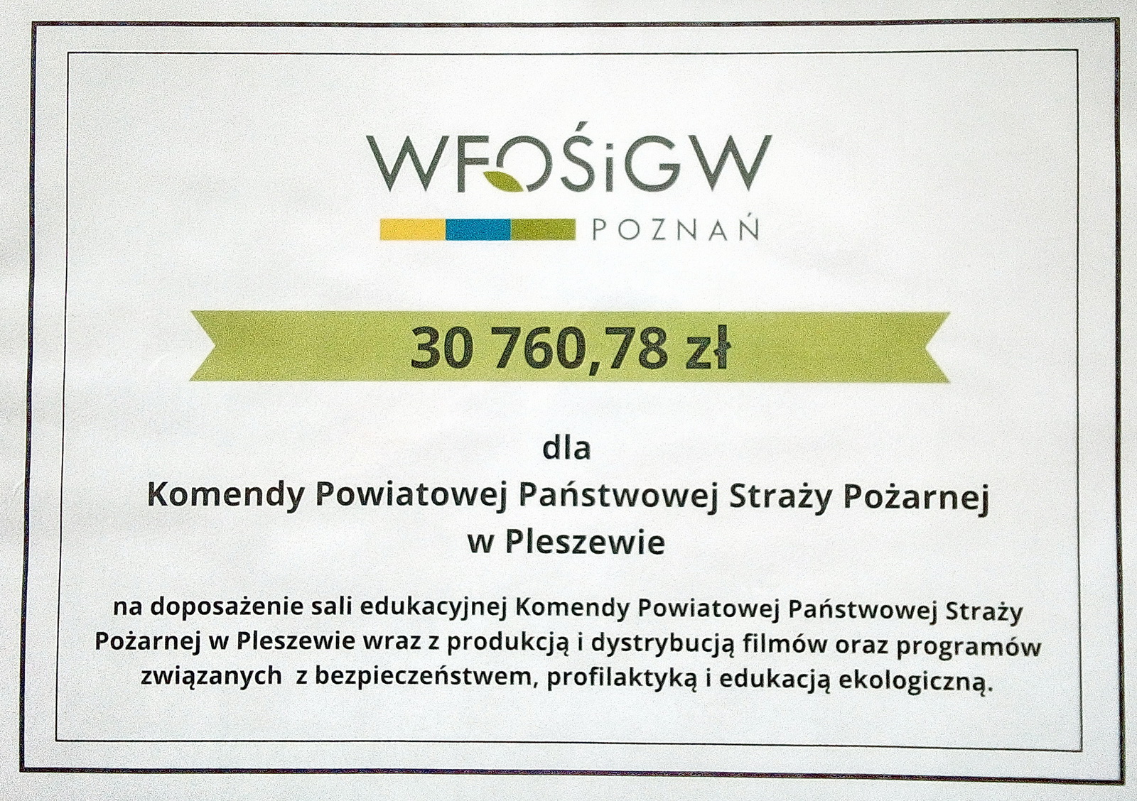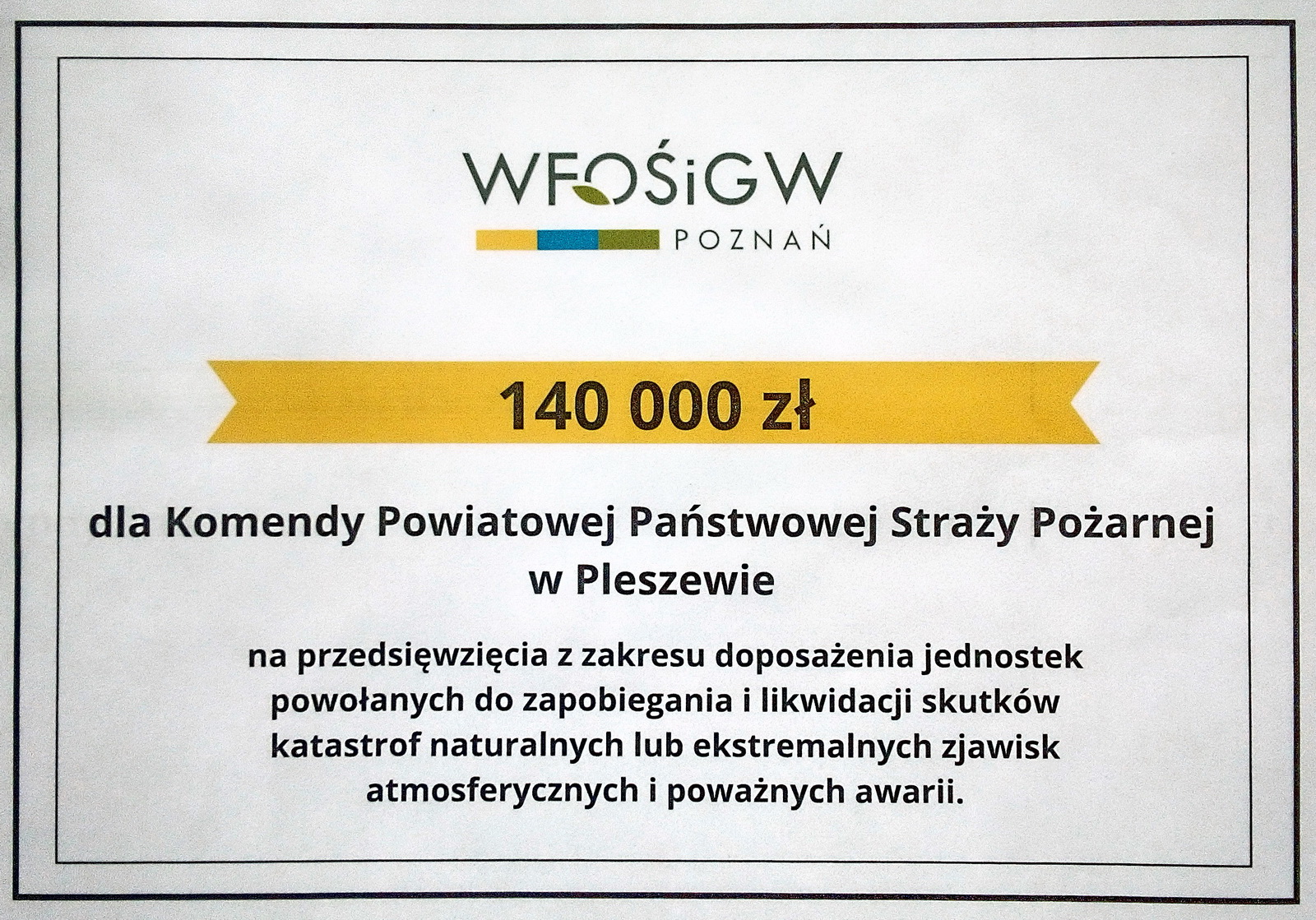 13 lipca 2022 r. na placu przed Komendą Miejską Państwowej Straży Pożarnej w Koninie obyło się uroczyste wręczenie promes dla jednostek Państwowej Straży Pożarnej i ochotniczych straży pożarnych z województwa wielkopolskiego. Nasz powiat uhonorowany został aż siedmioma promesami. Otrzymały ja Ochotnicze Straże Pożarne z Pleszewa, Kowalewa, Czermina, Gołuchowa, Białobłot, Kuźni – Piły oraz Komenda Powiatow a Państwowej straży Pożarnej w Pleszewie. Organizatorem uroczystości był Wojewódzki Fundusz Ochrony Środowiska i Gospodarki Wodnej w Poznaniu. Zaproszonych gości przywitała Prezes WFOŚiGW w Poznaniu Pani Jolanta Ratajczak. Wśród przybyłych na uroczystość byli m. in.: