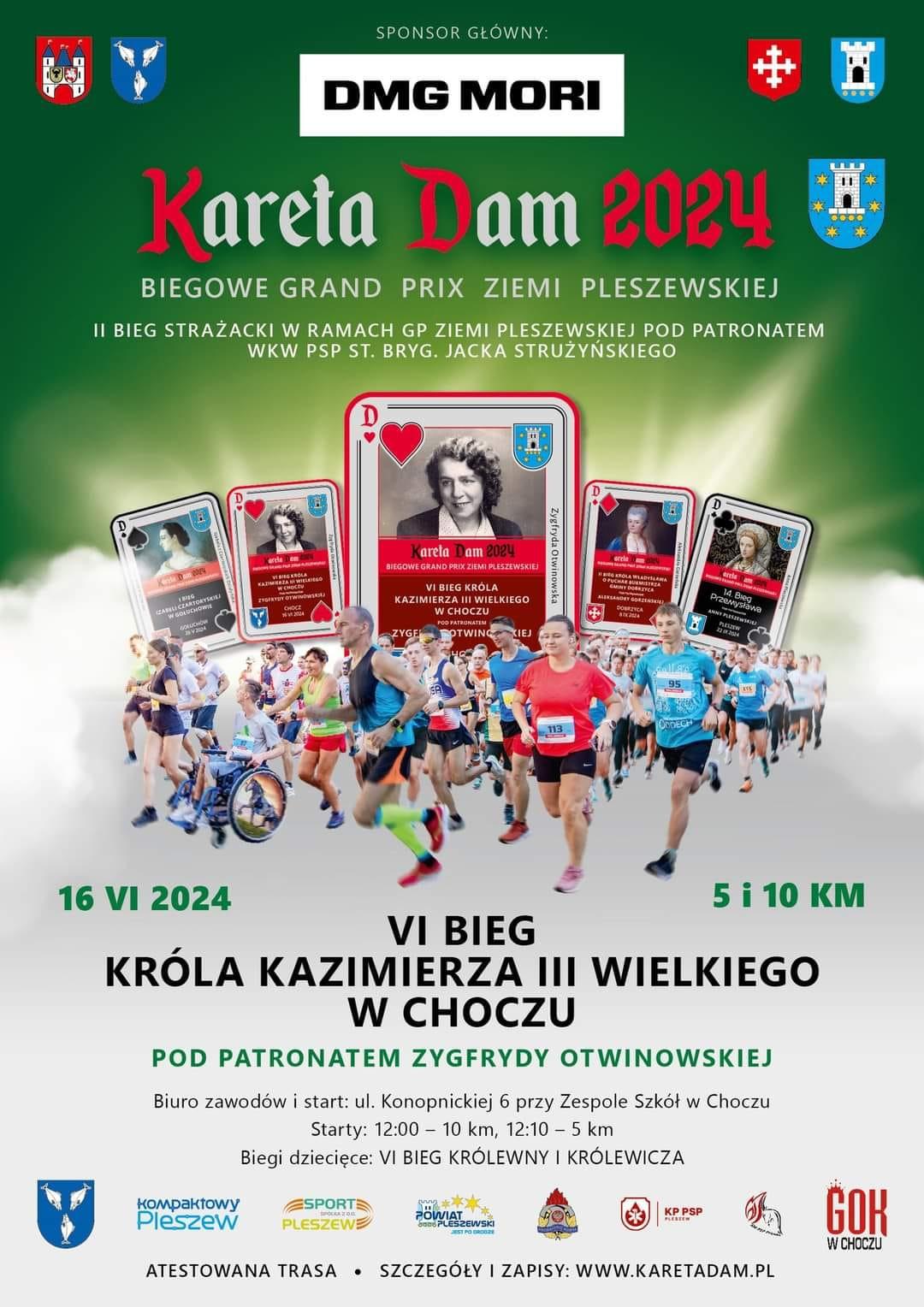 16 czerwca 2024 r. w Choczu odbył się drugi z etapów II Biegu Strażackiego w ramach Biegowego Grand Prix Ziemi Pleszewskiej "Kareta Dam 2024" pod patronatem Wielkopolskiego Komendanta Wojewódzkiego PSP st. bryg. Jacka Strużyńskiego. Uczestniczący w nim strażacy musieli pokonać dystans 10 kilometrów. Zwycięzcą tego etapu w kategorii PSP został Tomasz Musiał z Komendy Miejskiej Państwowej Straży Pożarnej w Lesznie, który przebiegł go w 34 minut i 37 sekund. Drugie miejsce wywalczył reprezentant Komendy Miejskiej Państwowej Straży Pożarnej w Poznaniu, który przybiegł na metę po 34 minutach i 57 sekundach. Trzecie miejsce zajął Jakub Frankowski – funkcjonariusz Komendy Powiatowej Państwowej Straży Pożarnej w Ostrowie Wielkopolskim. Pleszewską Komendę PSP reprezentowali: Roland Egiert (0:46:53) i Artur Jakóbczak (0:49:06). W kategorii strażaków Ochotniczej Straży Pożarnej najlepsi okazali się Aron Przybył z Ochotniczej Straży Pożarnej Kuźnia-Piła oraz Karolina Pogorzelska z Ochotniczej Straży Pożarnej w Krępkowie. Nagrody w imieniu Wielkopolskiego Komendanta Wojewódzkiego Państwowej Straży Pożarnej st. bryg. Jacka Stróżyńskiego, najszybszym tego dnia zawodnikom wręczył Komendant Powiatowy Państwowej Straży Pożarnej w Pleszewie - bryg. Roland Egiert.