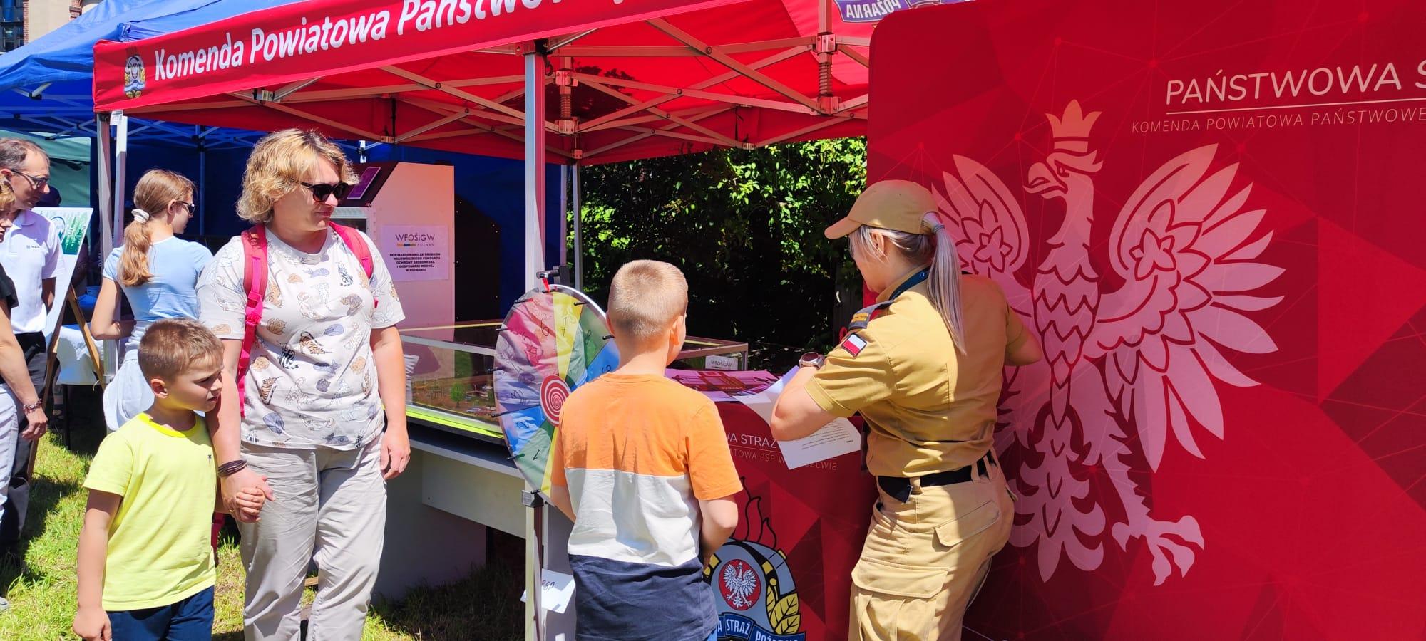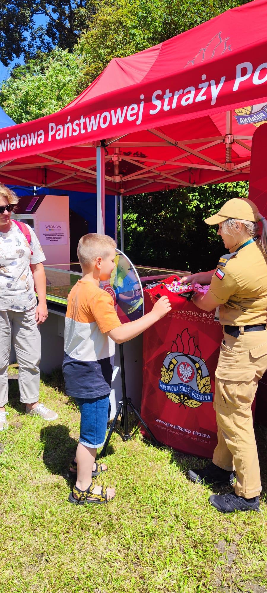 Obok bardzo wielu atrakcji na uczestników Festiwalu czekało również stoisko edukacyjne przygotowane przez Komendę Powiatową Państwowej Straży Pożarnej w Pleszewie. Zarówno dzieci, jak i dorośli mogli poznać tam zasady właściwego reagowania i zachowania się w sytuacjach najróżniejszych zagrożeń. Miejscem, które wzbudzało największe zainteresowanie i emocje było stoisko z mobilnym symulatorem zagrożeń jakie możemy spotkać w naszych domach wraz z modułem „jezioro – las”, gdzie z kolei dzieci mogły poznać niebezpieczeństwa jakie czyhają podczas rozpoczynających się wakacji. Dzieci mogły wziąć również udział w quizie i losowaniu upominków.