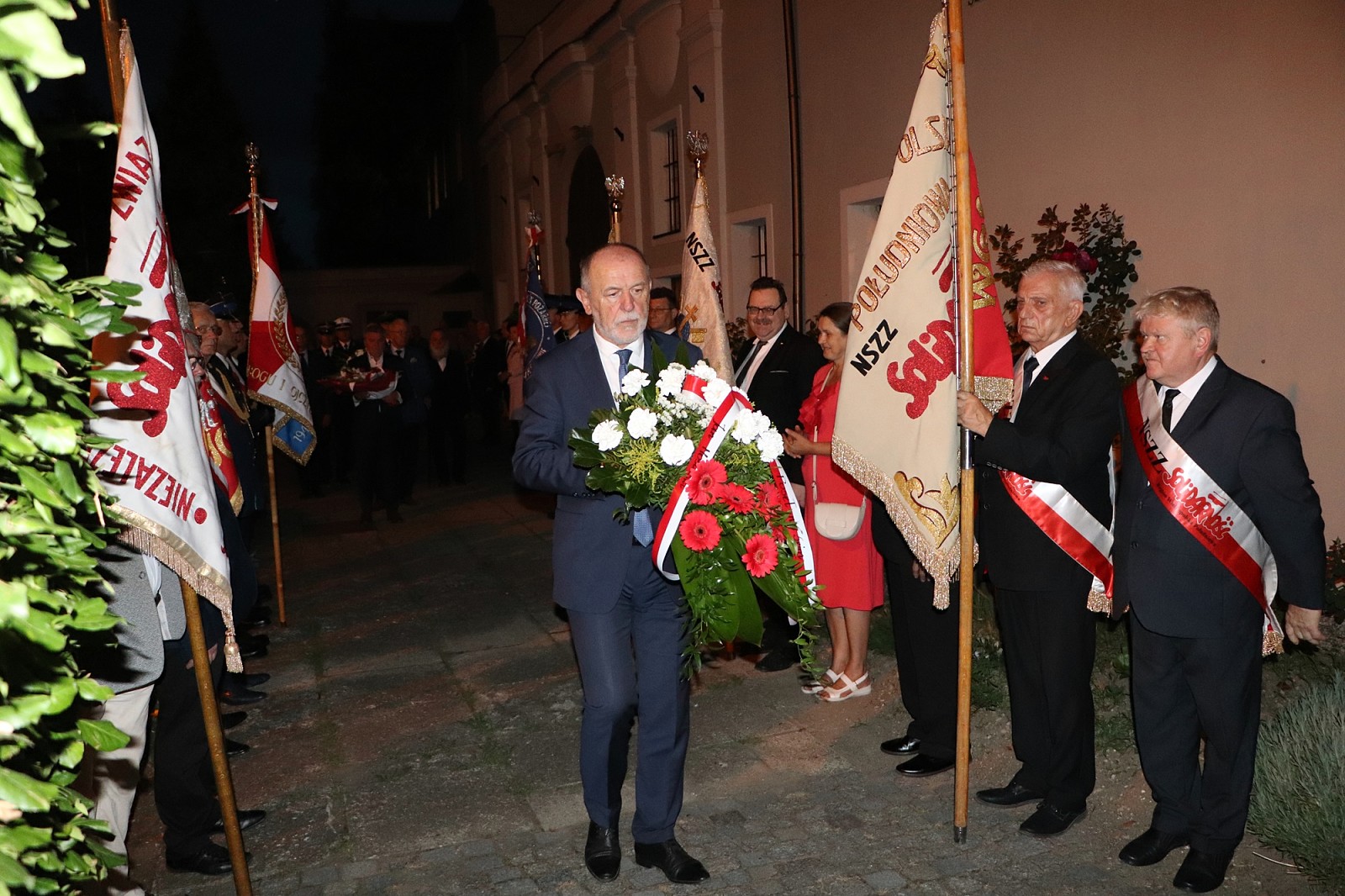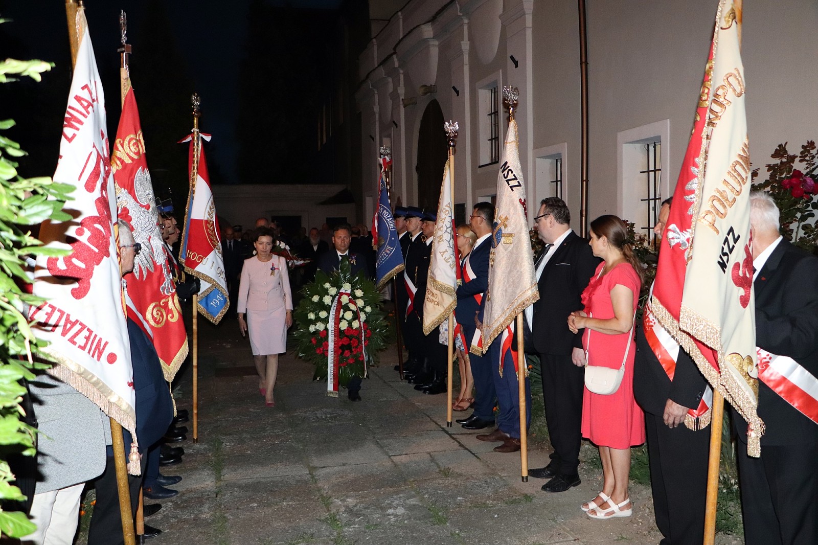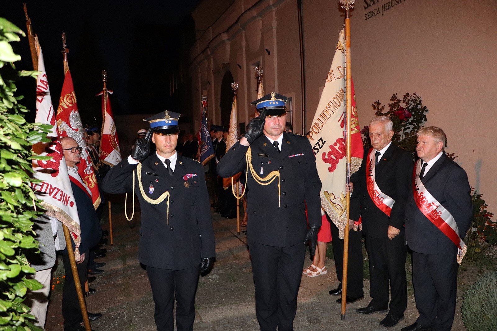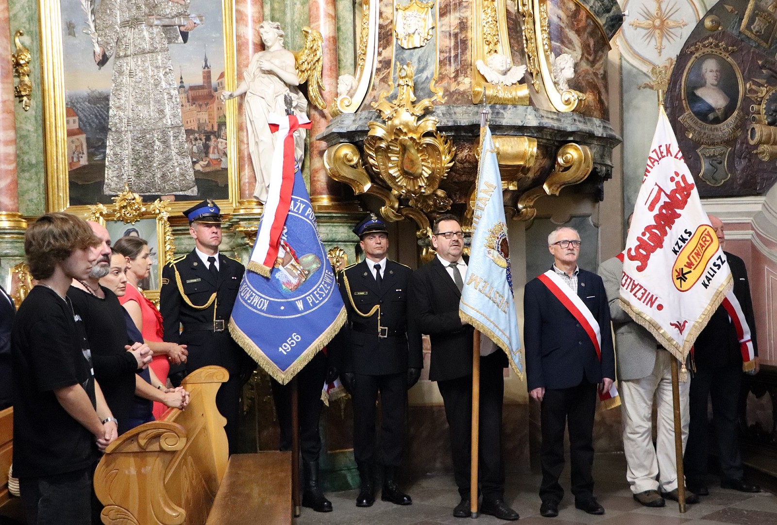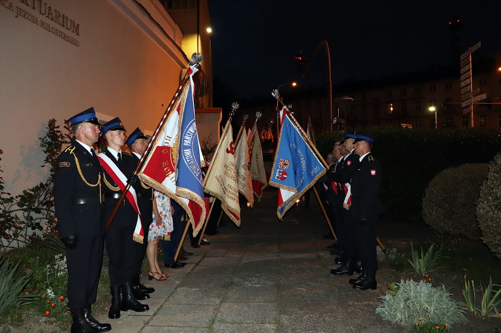 Po nabożeństwie przybyłe delegacje złożyły wiązanki kwiatów i znicze pod tablicą ku czci ofiar stanu wojennego w ogrójcu oo. jezuitów. Pleszewskich strażaków reprezentował Komendant Powiatowy PSP w Pleszewie bryg. Roland Egiert wraz z pocztem sztandarowym pleszewskiej Komendy PSP.
