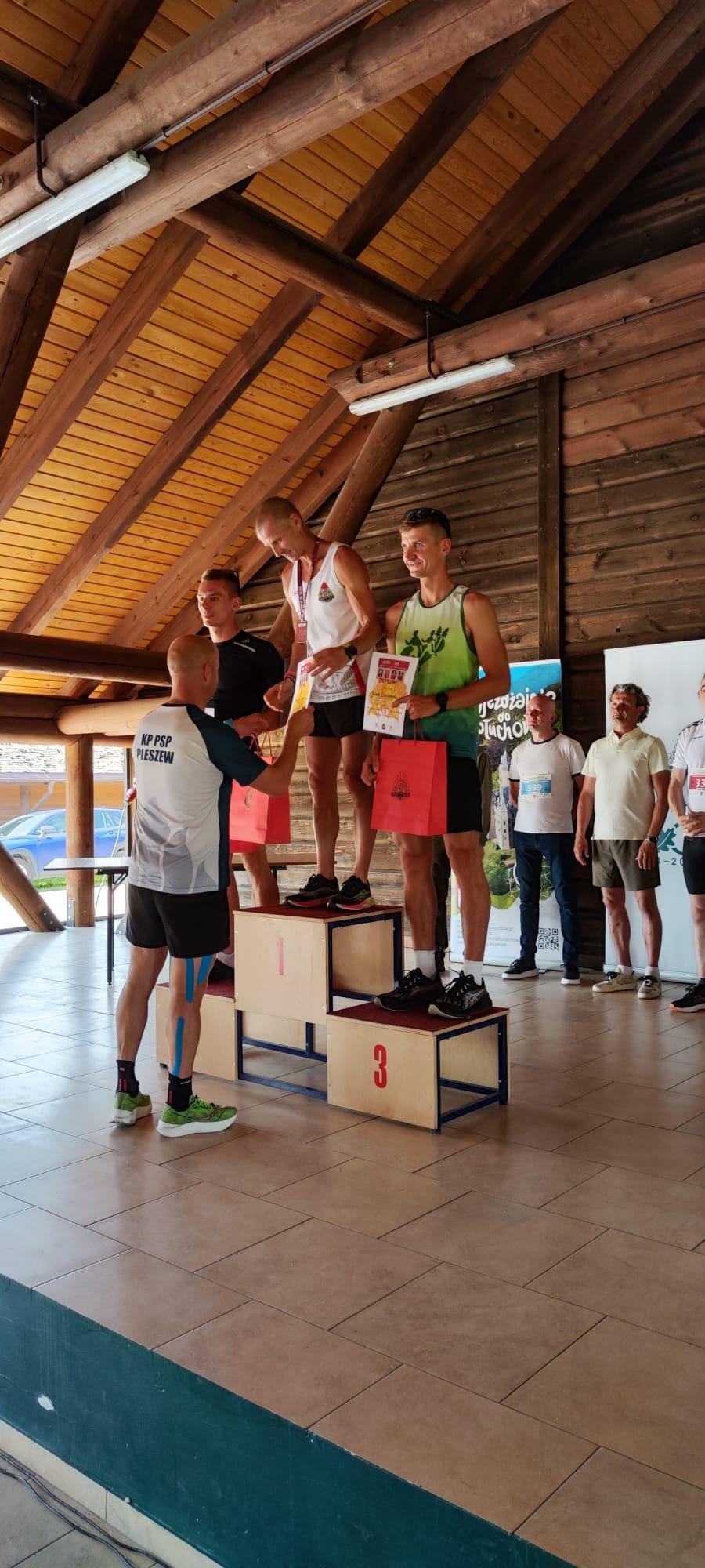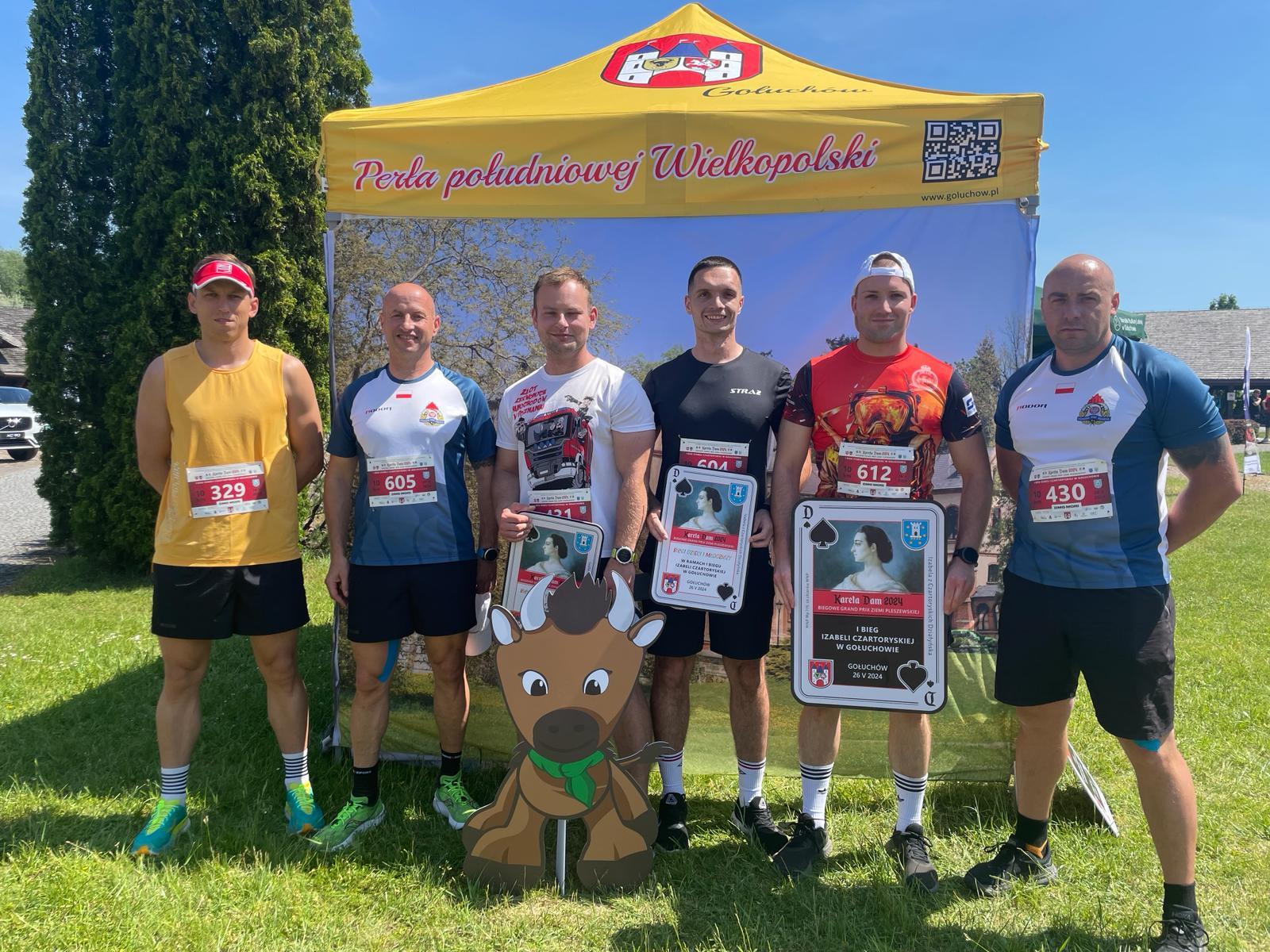 Bieg odbył się 26 maja w Gołuchowie ramach Grand Prix Ziemi Pleszewskiej 2024, uczestniczący w nim strażacy musieli pokonać dystans 10 kilometrów. Pierwszy na mecie Tomasz Musiał Komendy Miejskiej Państwowej Straży Pożarnej w Lesznie, przebiegł ten dystans w 35 minut i 20 sekund. Tuż za nim, z czasem gorszym jedynie o osiem sekund, uplasował się Bartosz Losy – reprezentant Komendy Miejskiej Państwowej Straży Pożarnej w Poznaniu. Trzecie miejsce na podium wywalczył Jakub Frankowski – funkcjonariusz Komendy Powiatowej Państwowej Straży Pożarnej w Ostrowie Wielkopolskim, który przybiegł na metę po 40 minutach i 16 sekundach. Komendę Powiatową Państwowej Straży Pożarnej w Pleszewie reprezentowali: Mateusz Grabarek (0:40:32). Michał Nowacki (0:47:01). Roland Egiert (0:49:04), Artur Jakóbczak (0:49:35), Jakub Matjasik (0:52:16), Jakub Reich (0:53:37) i Adam Pacholak (0:53:57). W kategorii strażaków Ochotniczej Straży Pożarnej najlepsi okazali się Piotr Gaszczyński z Ochotniczej Straży Pożarnej Strzegowa oraz Karolina Pogorzelska z Ochotniczej Straży Pożarnej Krępkowo. W imieniu Wielkopolskiego Komendanta Wojewódzkiego Państwowej Straży Pożarnej st. bryg. Jacka Strużyńskiego, najszybszym tego dnia zawodnikom, nagrody wręczył Komendant Powiatowy Państwowej Straży Pożarnej w Pleszewie - bryg. Roland Egiert. Sponsorem pamiątkowych gadżetów dla uczestników biegu był Sklep Pożarniczy Remiza24 S.C.