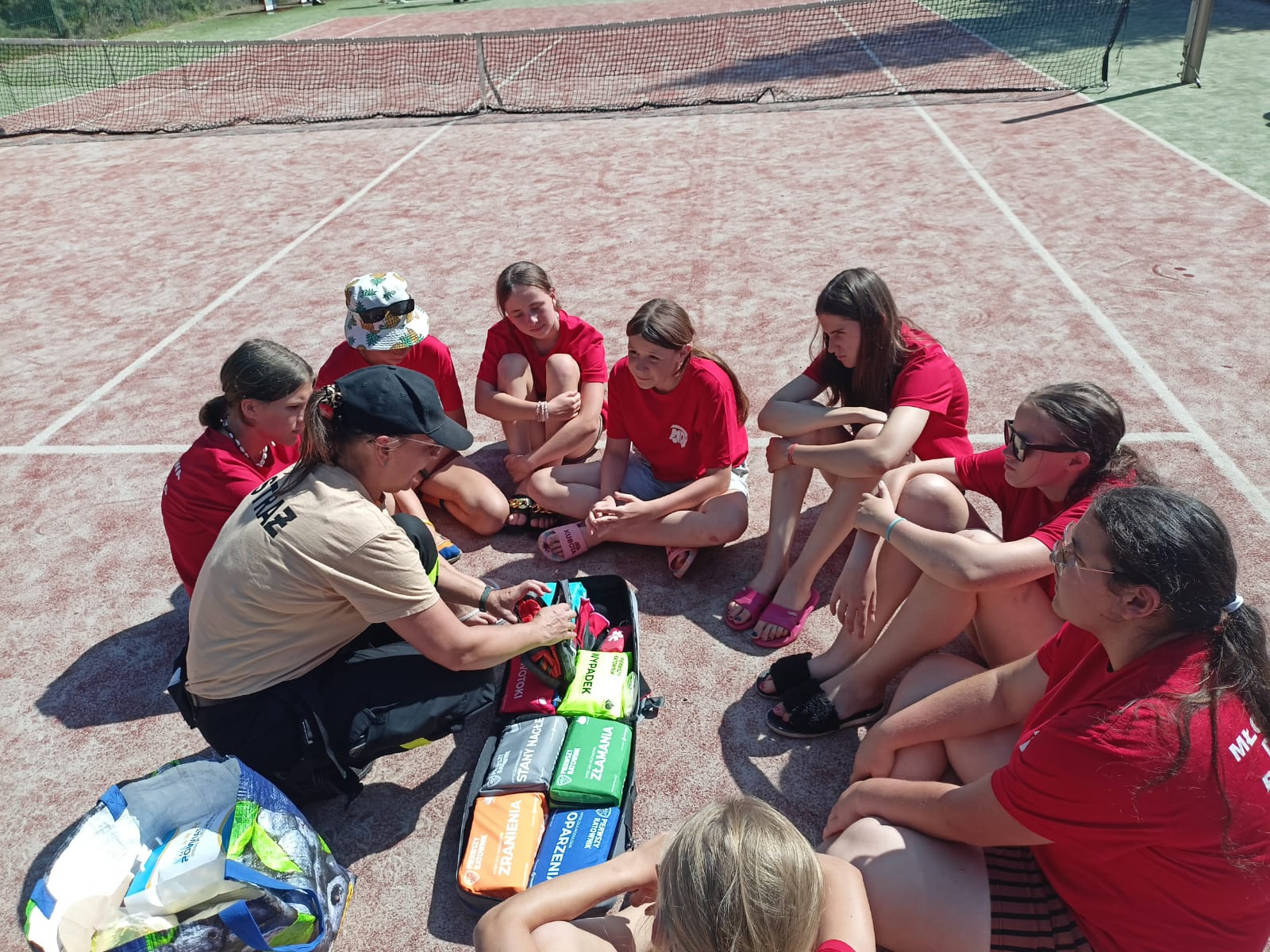 Wizyta była nie tylko okazją do sprawdzenia warunków w jakich odpoczywają młodzi strażacy, ale również do przeprowadzenia zajęć edukacyjnych dotyczących zasad bezpiecznego zachowania się w sytuacjach zagrożenia oraz podstaw udzielania pierwszej pomocy. Przy tej okazji Specjalistyczna Grupa Ratownictwa Wodno–Nurkowego z Kościana zaprezentowała swój sprzęt, a młodzi strażacy mogli przećwiczyć zadania przewidziane dla zawodów CTIF MDP.