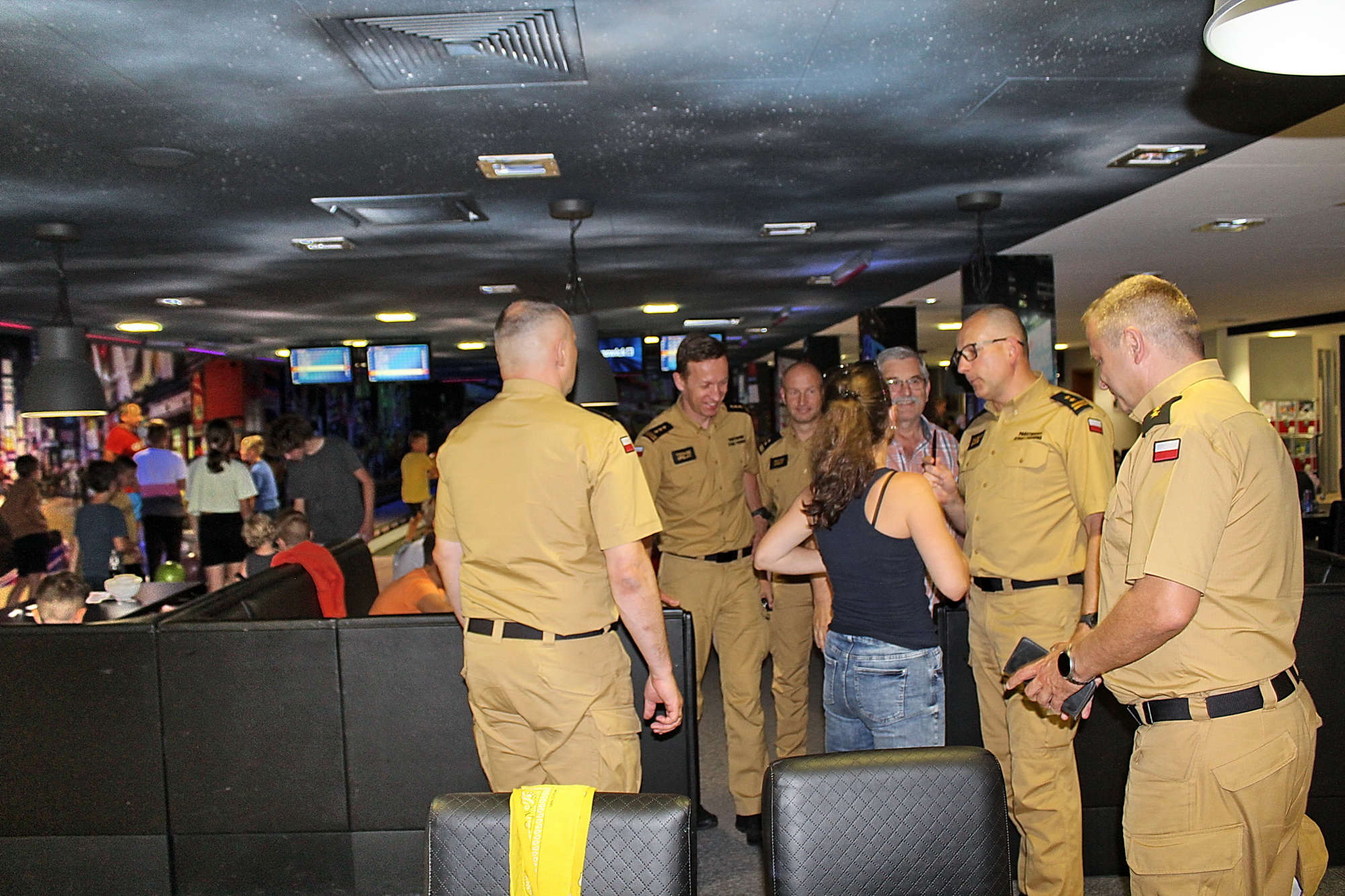 Następnie wizytujący przenieśli się do Parku Wodnego „Planty” w Pleszewie, gdzie w ramach Wakacyjnej Akademii Sportu i Przygody odbywały się półkolonie dla Młodzieżowych Drużyn Pożarniczych z terenu naszego powiatu. Spotkanie było okazją do zwiedzenia obiektu, w którym znajdują się m.in. baseny, siłownie, gabinety spa i sauny. Uczestników półkolonii zastano podczas zajęć i zabawy na znajdującej się tam również kręgielni.