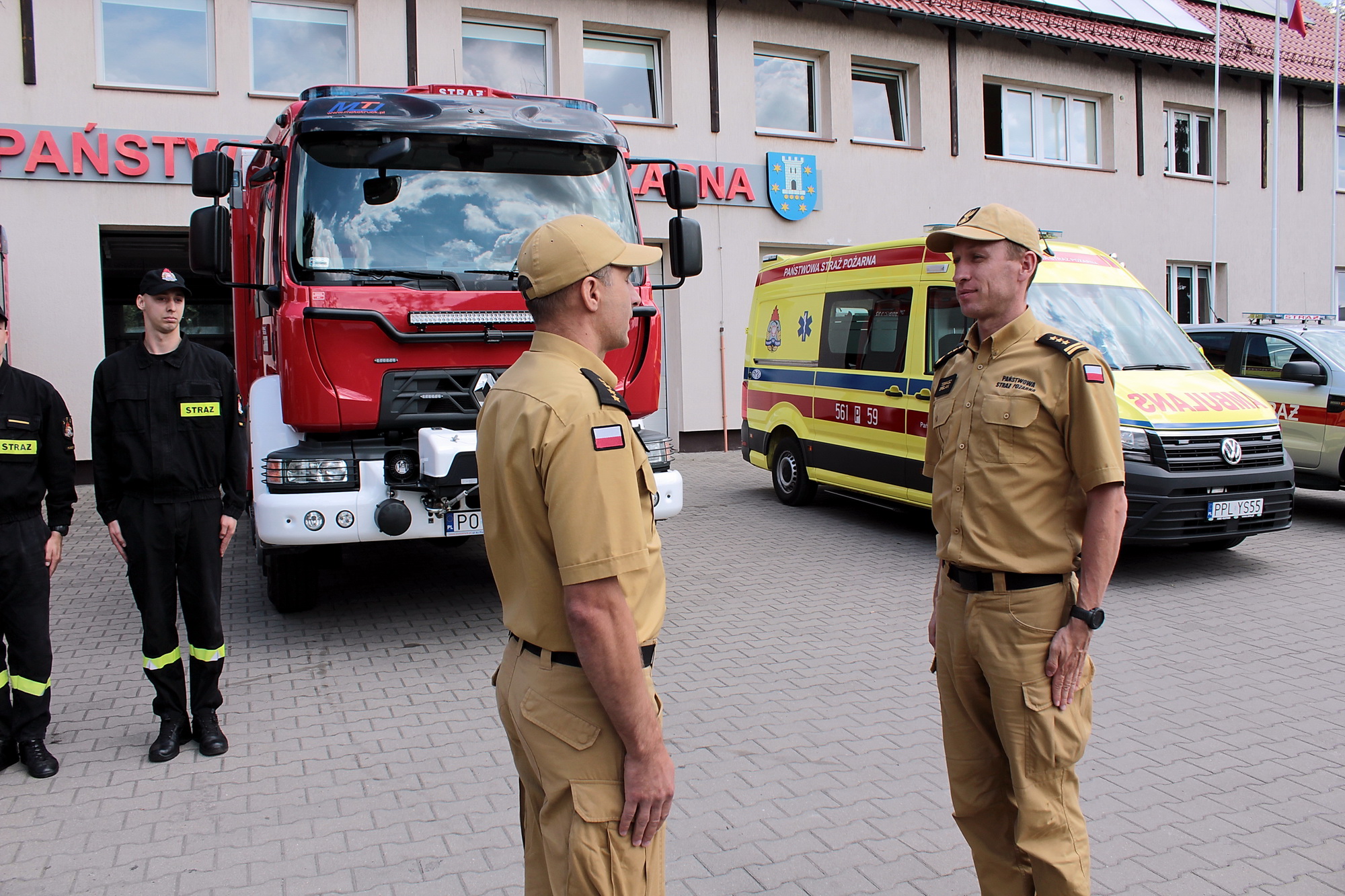 Podczas spotkań z młodymi druhami Zastępcy Wielkopolskiego Komendanta Wojewódzkiego PSP towarzyszyli: Komendant Powiatowy PSP w Pleszewie bryg. Roland Egiert wraz ze swoim zastępcą bryg Waldemarem Barańskim oraz Komendant Miejski PSP w Kaliszu st. bryg. Tomasz Polak.