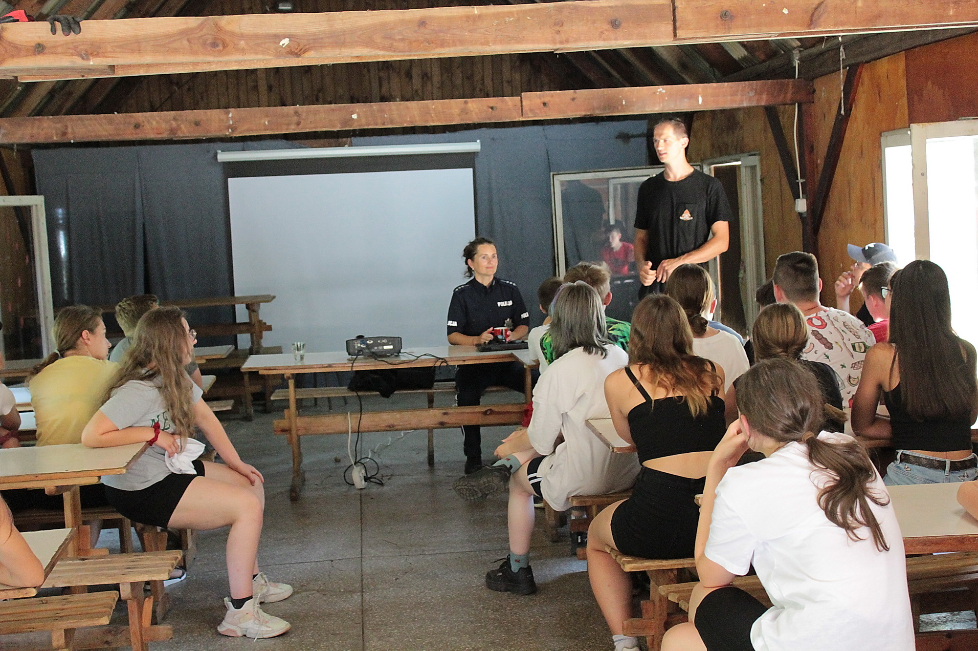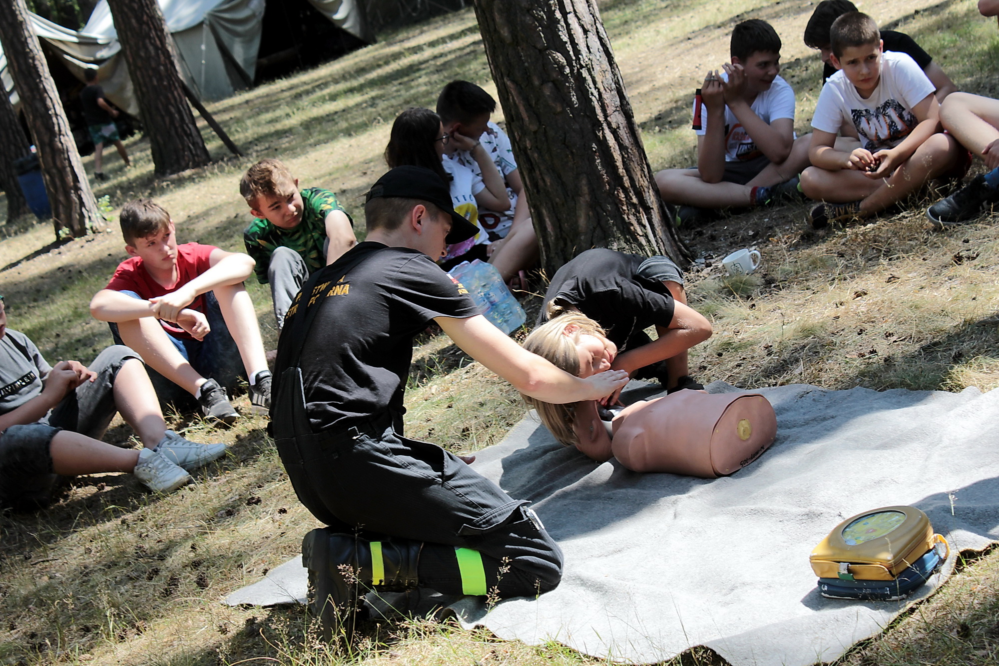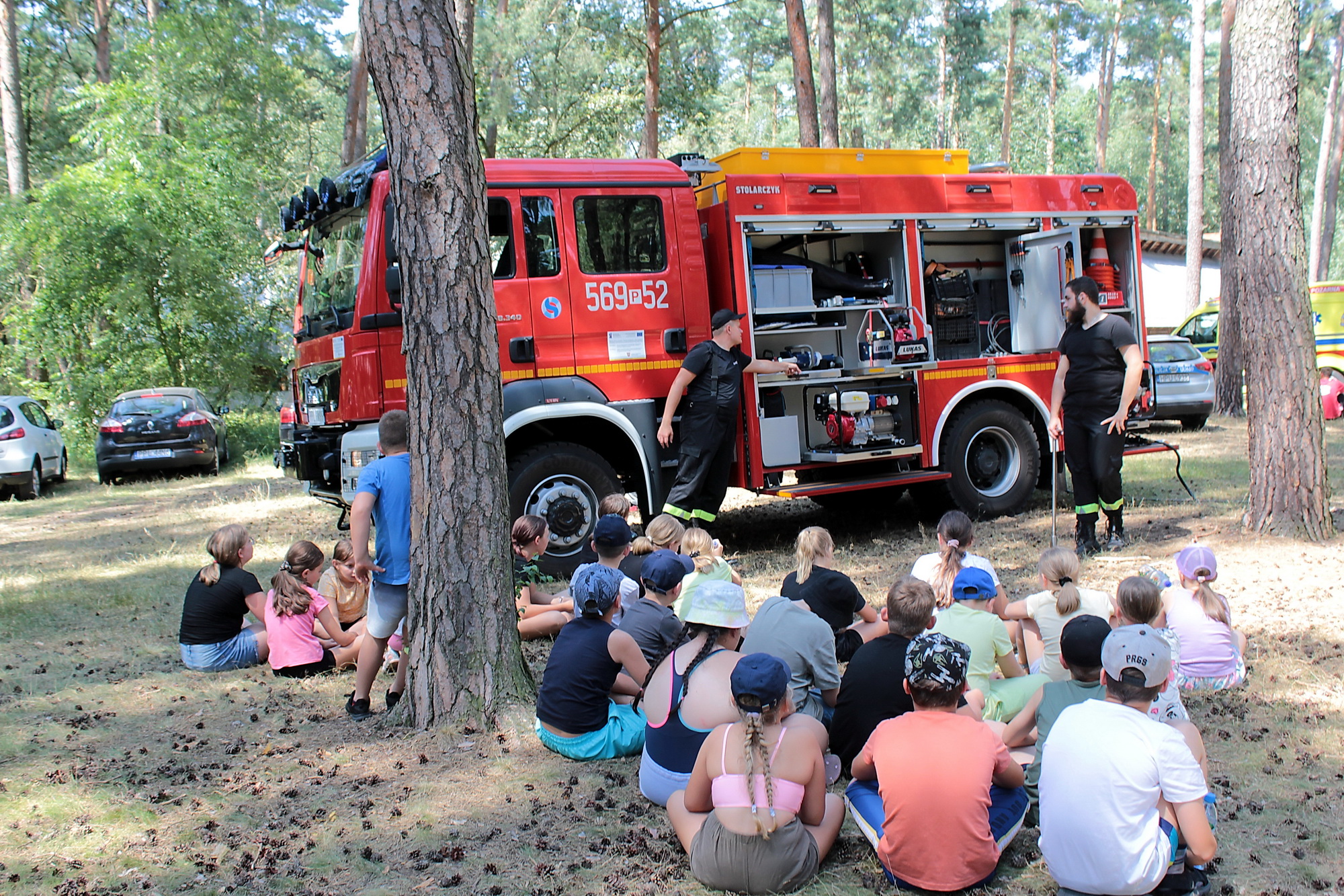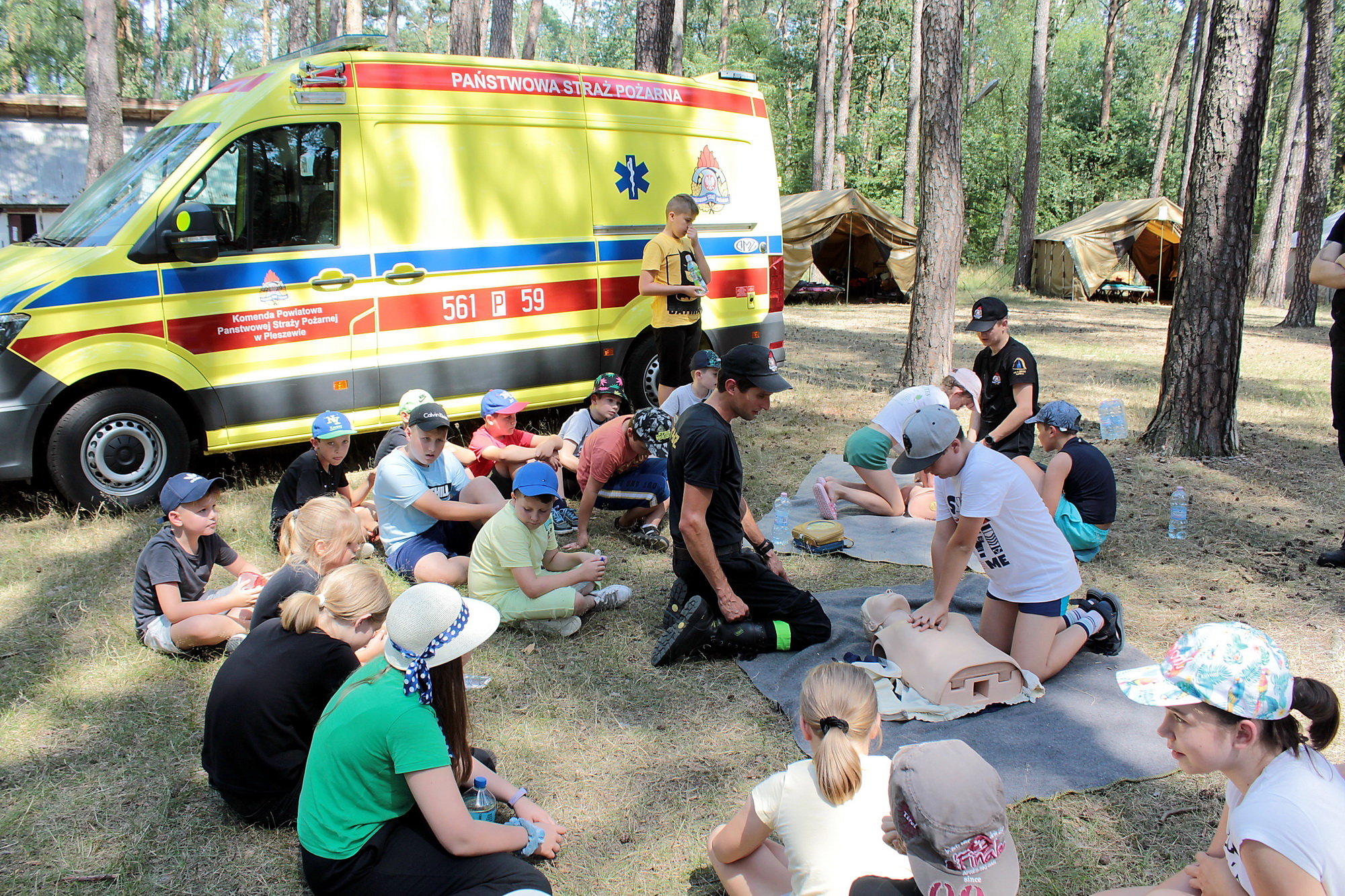 Na tym jednak nie koniec, bowiem przy tej okazji także, wspólnie z funkcjonariuszami policji i druhami z OSP w Gołuchowie, dla wszystkich przebywających na obozie osób strażacy przeprowadzili zajęcia edukacyjne dotyczące zasad bezpiecznego zachowania się w sytuacjach zagrożenia oraz podstaw udzielania pierwszej pomocy.