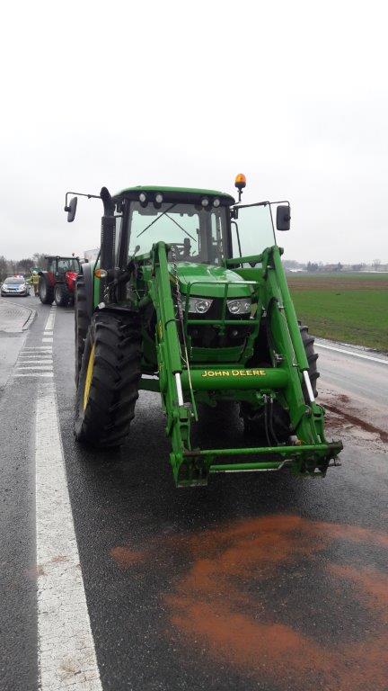 Po dojeździe na miejsce zdarzenia strażacy zastali samochód osobowy po kolizji z ciągnikiem rolniczym. Działania Straży polegały na zabezpieczeniu miejsca zdarzenia, udzieleniu kwalifikowanej pierwszej pomocy oraz neutralizacji płynów eksploatacyjnych, które w wyniku zderzenia wyleciały z ciągnika rolniczego. Osoba poszkodowana po przebadaniu przez ratowników ZRM pozostała na miejscu zdarzenia – nie wymagała hospitalizacji. Ruch drogą krajową odbywał się wahadłowo, a działania trwały ponad godzinę.