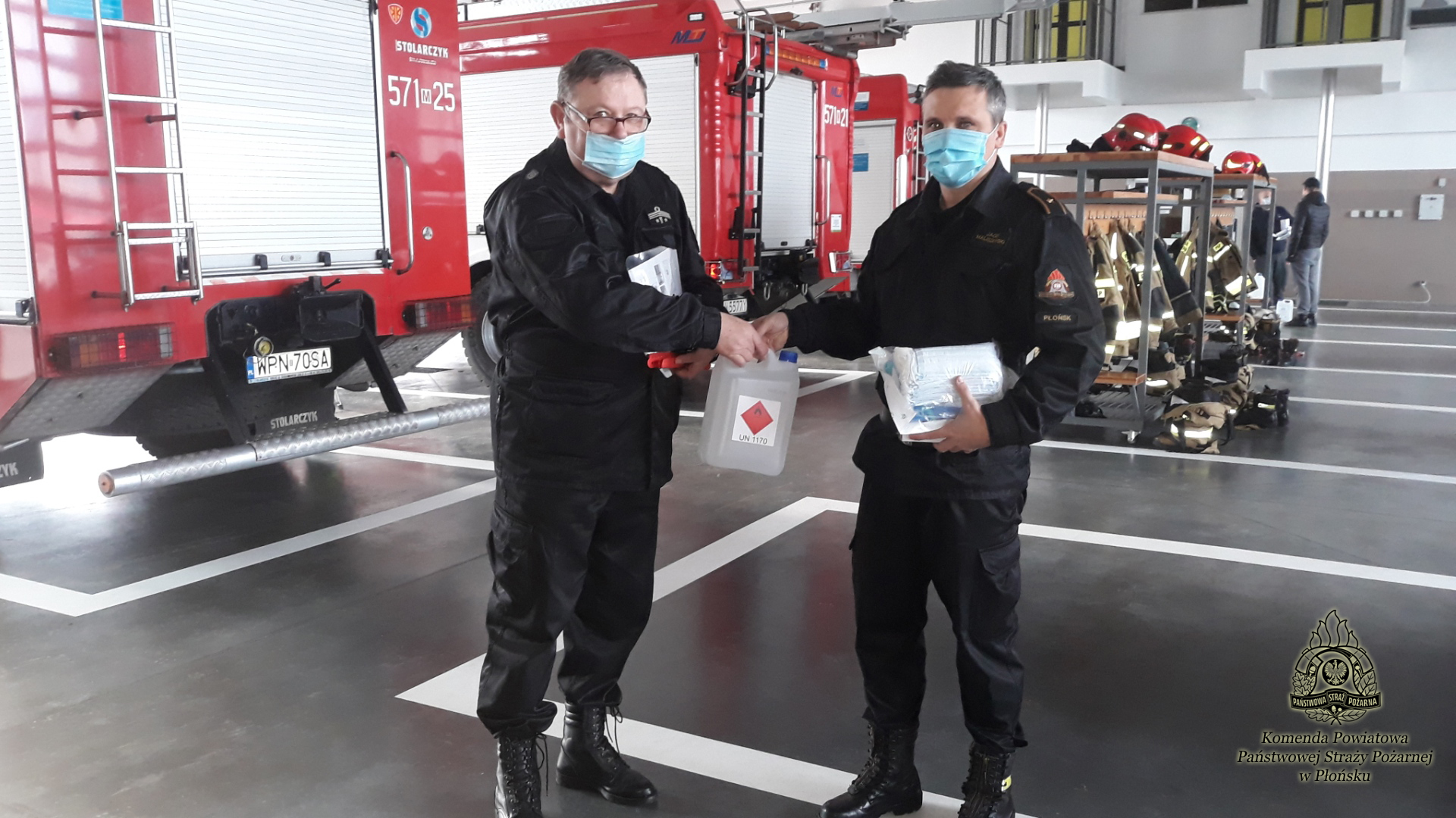 30 listopada b.r. jednostkom OSP na terenie powiatu płońskiego, wyznaczonym do działań z koronawirusem przekazano środki dezynfekujące i materiały chroniące przed zarażeniem się koronawirusem SARS-CoV-2. Jednostki, które otzrymały środki to: OSP Baboszewo, OSP Czerwińsk nad Wisłą, OSP Dzierzążnia, OSP Joniec, OSP Radzymin, OSP Nowe Miasto, OSP Płońsk, OSP Siedlin, OSP Raciąż, OSP Kaczorowy, OSP Sochocin i OSP Nowe Wrońska. Każda jednostka otrzymała: maski jednorazowe - 50 szt., Trisept Complex do rąk i powierzchni - po 5 l, przyłbice - po 4 szt., rękawiczki - po 100 szt., fartuch chirurgiczny - po 1 szt.