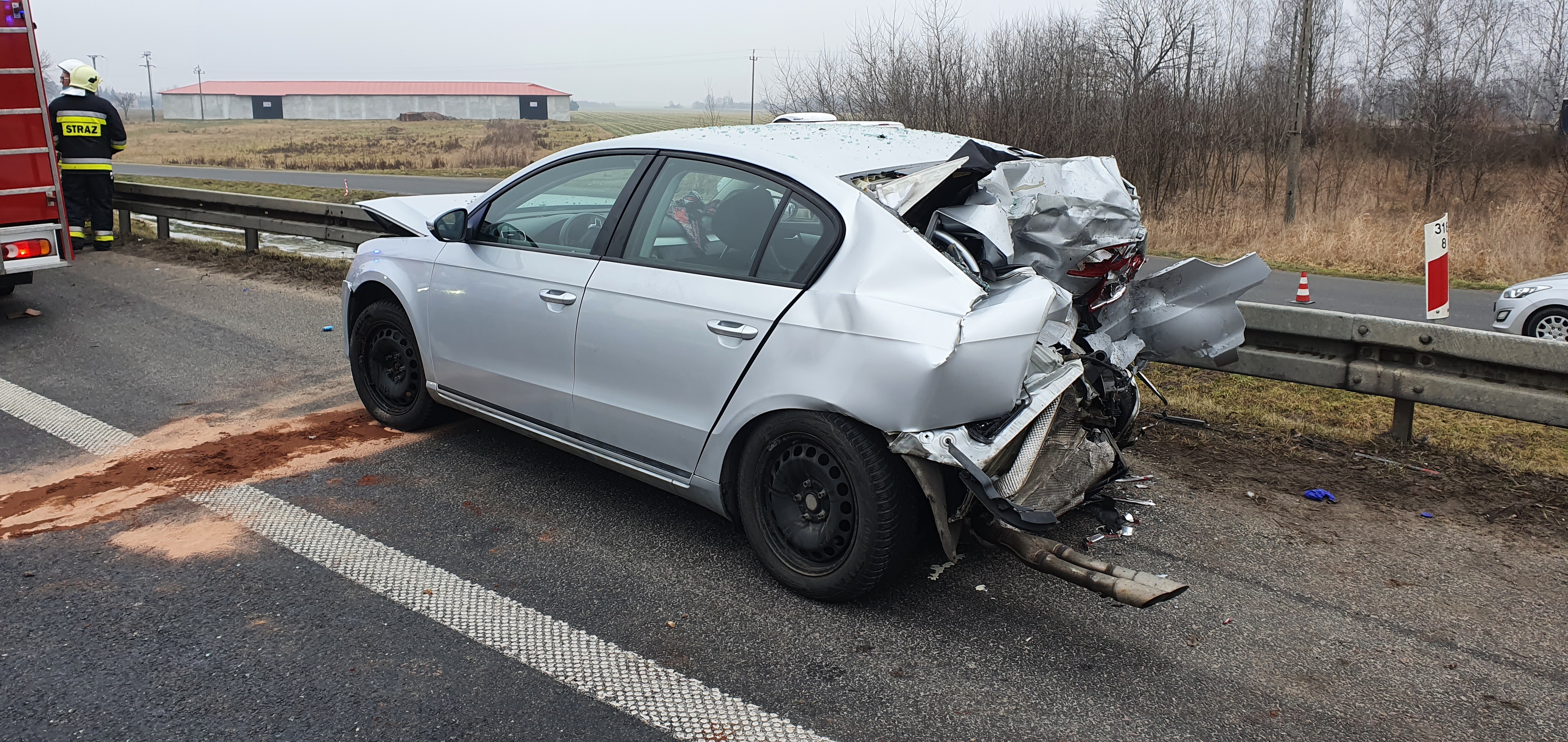 Bus Mercedes uderzył w tył Volkswagena, a ten w tył Hyundaia. W konsekwencji wypadku pas w kierunku Gdańska został całkowicie zablokowany. Działania straży pożarnej polegały na zabezpieczeniu miejsca zdarzenia, ewakuowaniu zakleszczonych osób i udzieleniu kwalifikowanej pierwszej pomocy poszkodowanym w wypadku. W sumie w zdarzeniu uczestniczyło 11 osób, pięć zostało przewiezionych do szpitali. Na miejsce przybył Komendant Powiatowy PSP w Płońsku st. bryg. Dariusz Brzeziński oraz Grupa Operacyjna KW PSP Warszawa. Działania trwały 2 h 40 min, brało w nich udział 11 zastępów PSP i OSP.