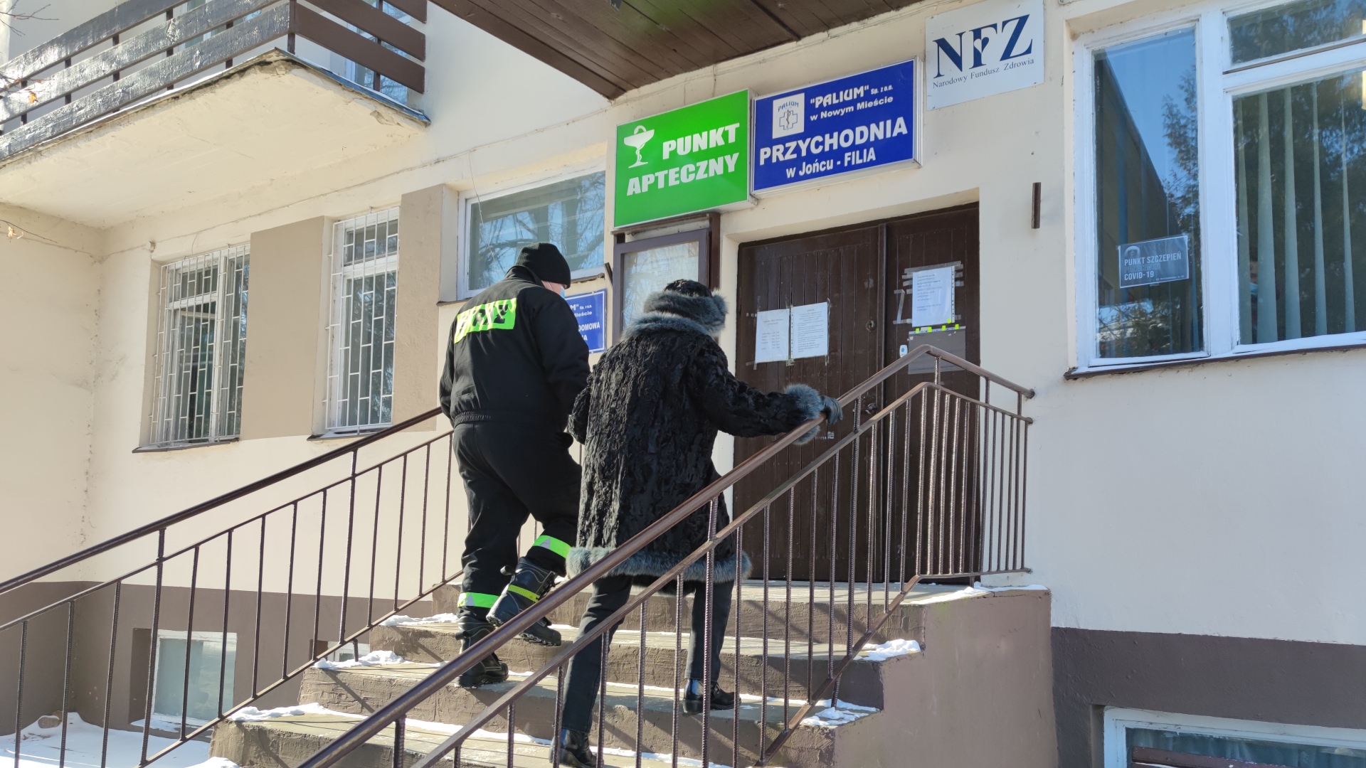 Dzisiaj, tj. 12 lutego 2021 r. strażacy OSP Joniec pomogli dotrzeć mieszkance Królewa do punktu szczepień przeciw covid-19.