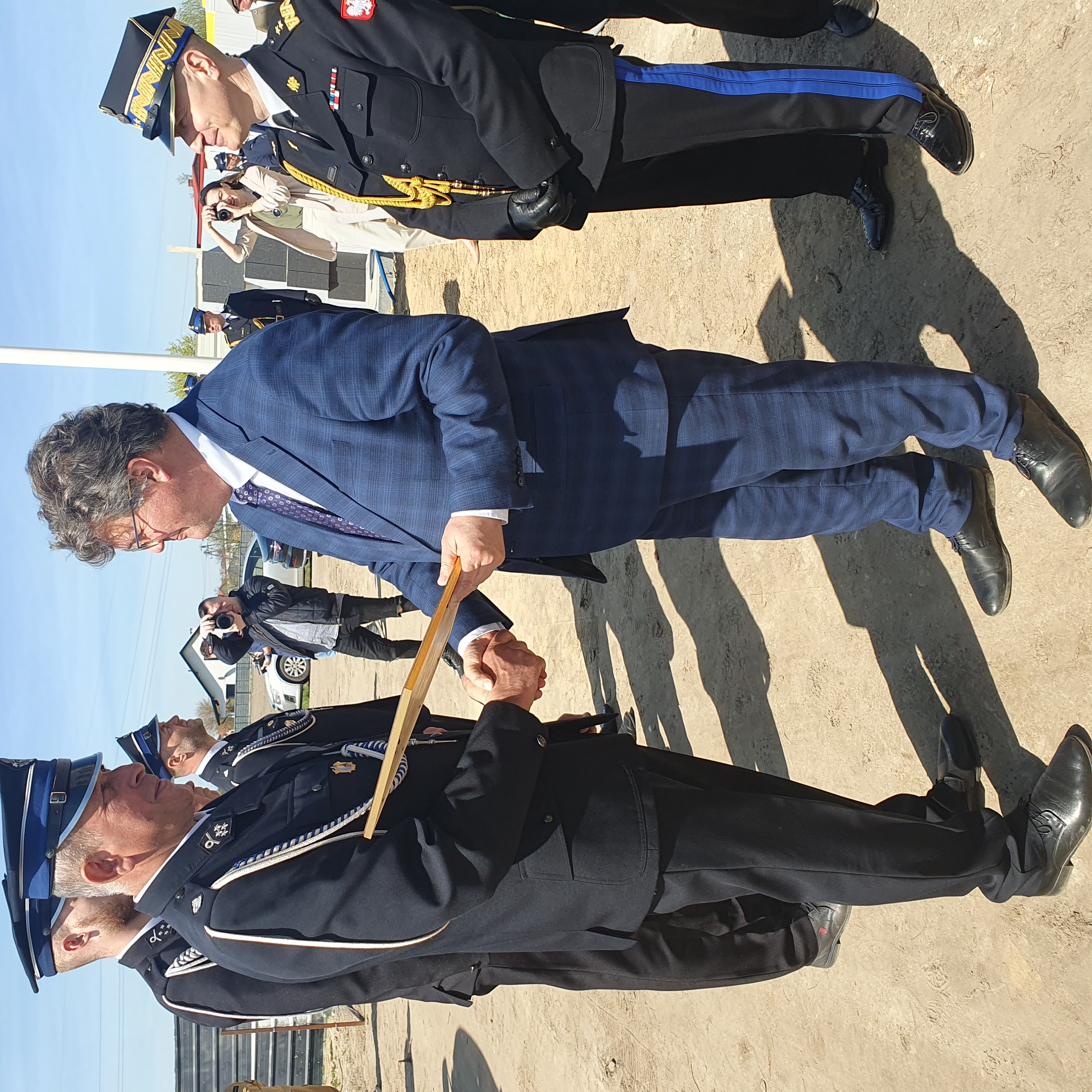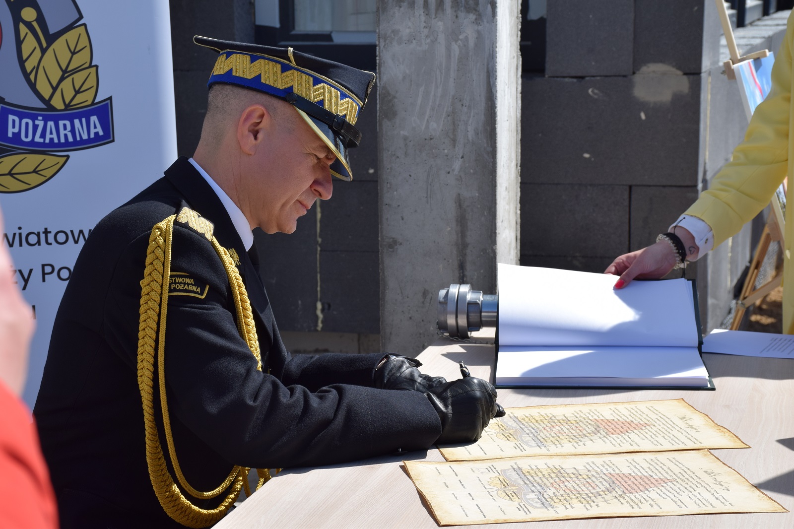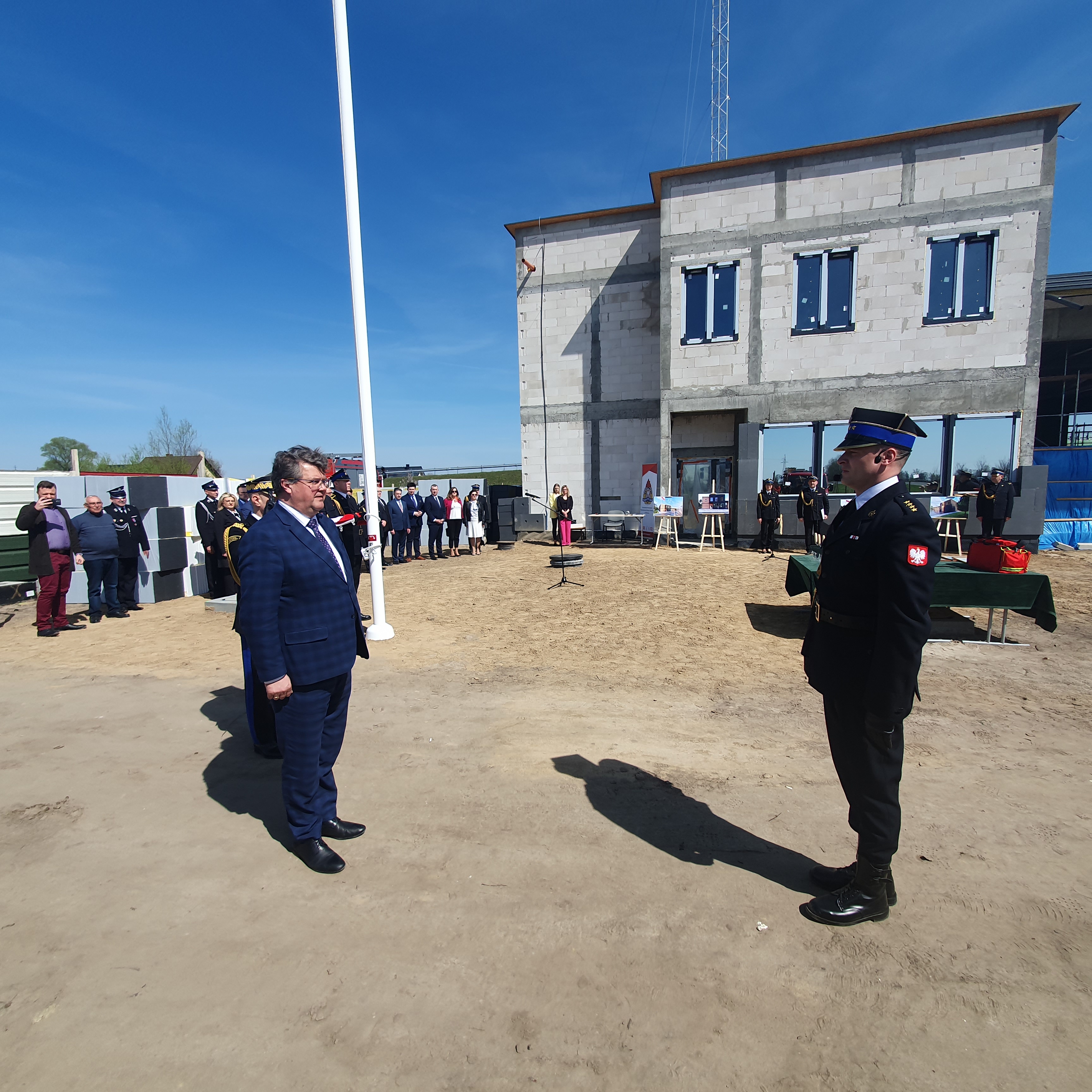 Podpisanie i wmurowanie aktu erekcyjnego pod budowę Jednostki Ratowniczo - Gaśniczej w Raciążu, włączenie do Krajowego Systemu Ratowniczo-Gaśniczej oraz przekazanie sprzętu pożarniczego jednostkom OSP z terenu powiatu płońskiego