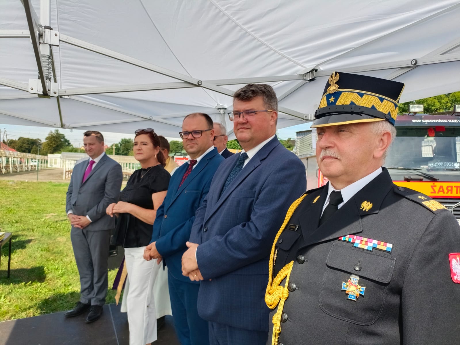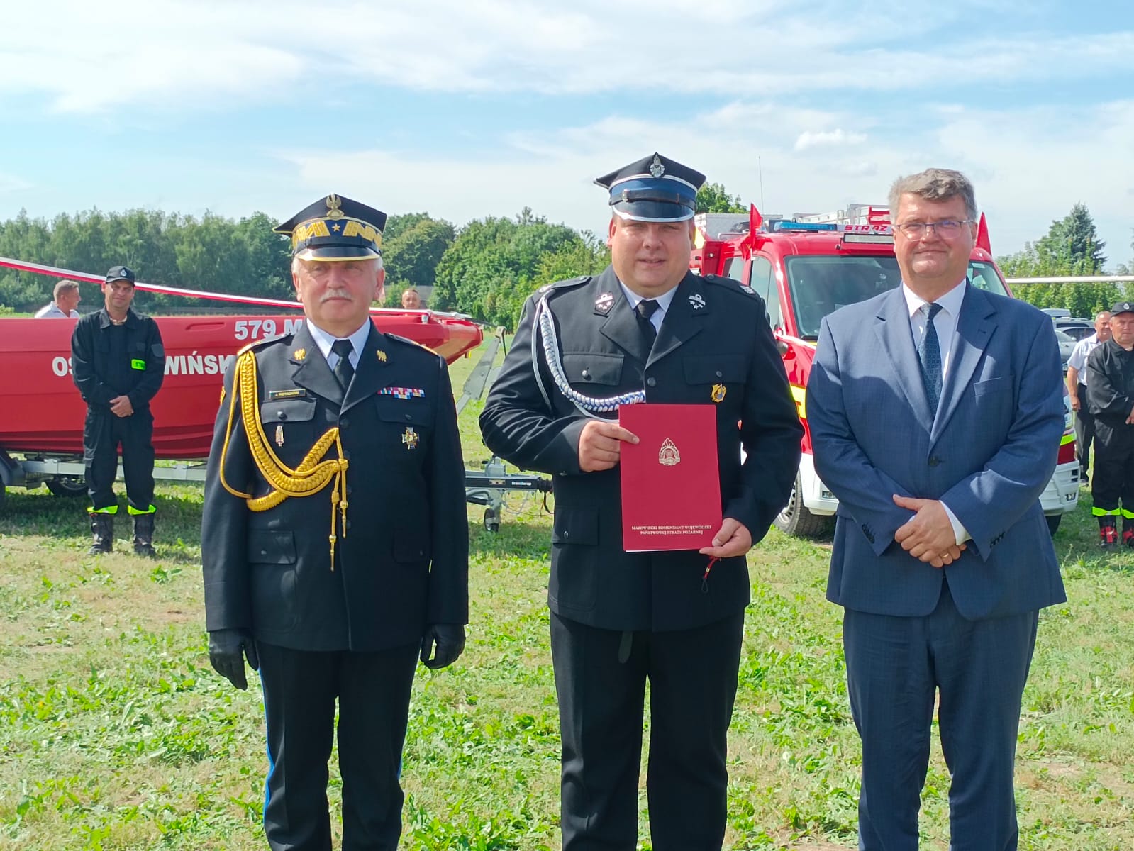 Uroczystego wręczenia aktów przekazania i kluczyków do samochodów pożarniczych oraz łodzi dokonał Pan Maciej Wąsik - Sekretarz Stanu w MSWiA w asyście nadbryg. Jarosława Piotrowskiego - Mazowieckiego Komendanta Wojewódzkiego PSP.