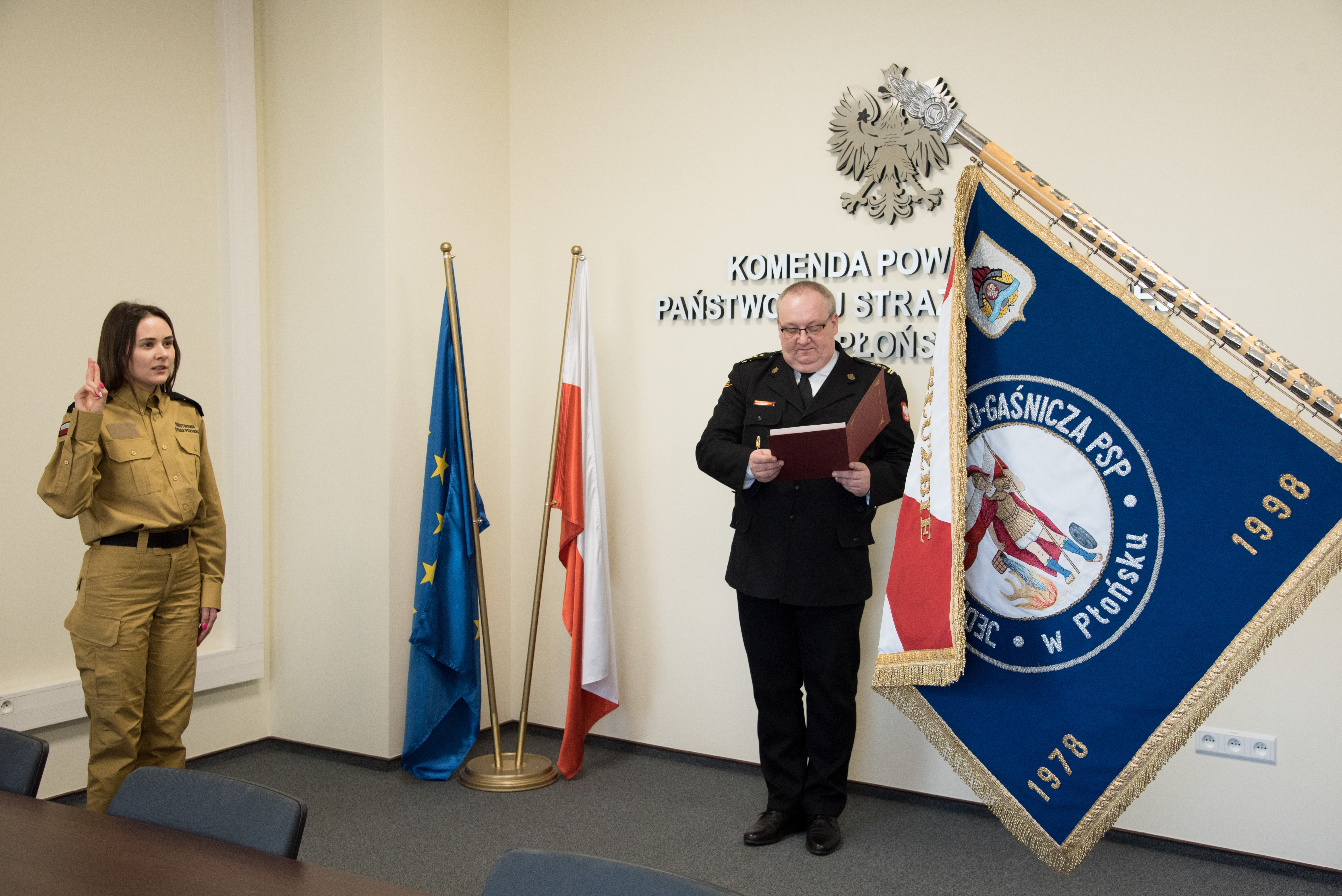 z okazji ślubowania, które złożył strażak przyjęty do służby przygotowawczej w Państwowej Straży Pożarnej. Ślubowanie od str. Klaudii Wrońskiej przyjął Komendant Powiatowy PSP w Płońsku