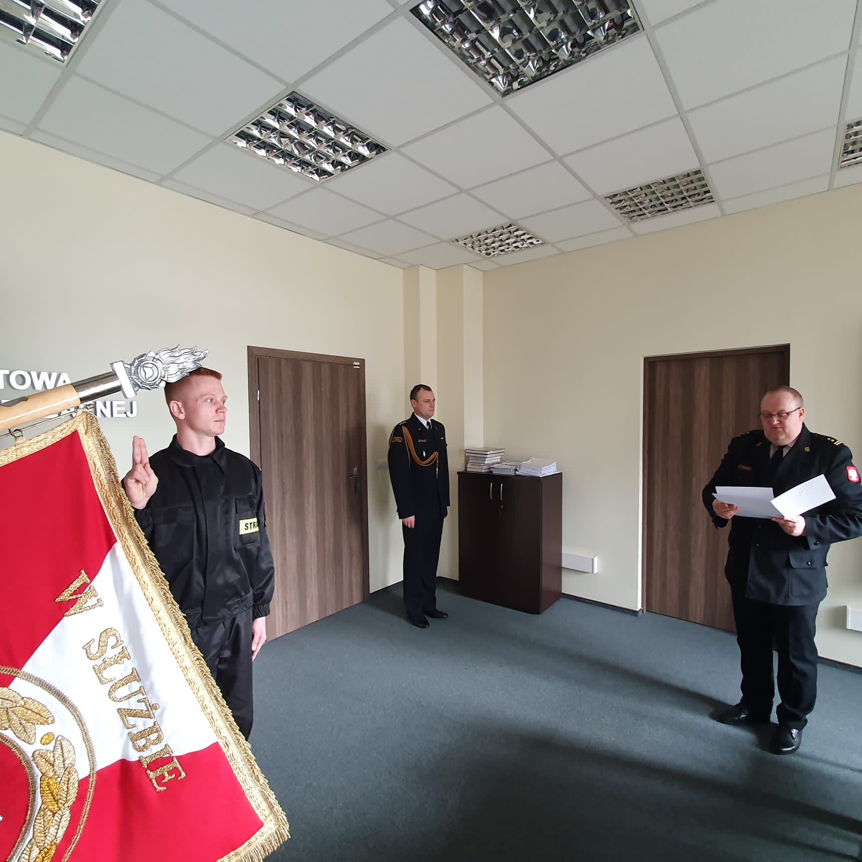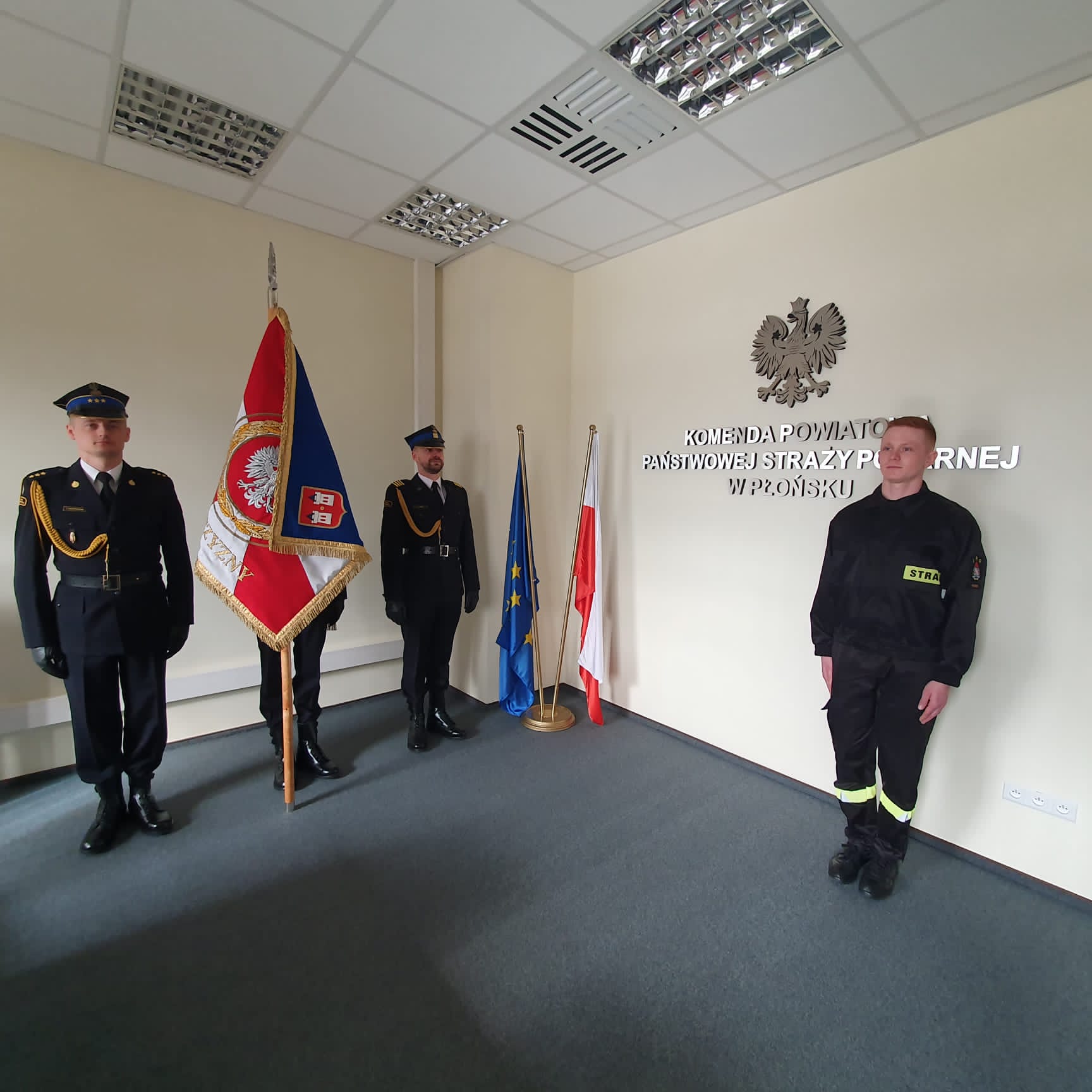 5 kwietnia 2023 roku w siedzibie Komendy Powiatowej PSP w Płońsku odbyła się uroczysta zbiórka z okazji ślubowania, które złożył strażak przyjęty do służby przygotowawczej w Państwowej Straży Pożarnej. Ślubowanie od str. Huberta Kopczyńskiego przyjął Komendant Powiatowy PSP w Płońsku bryg. Artur Czachowski.