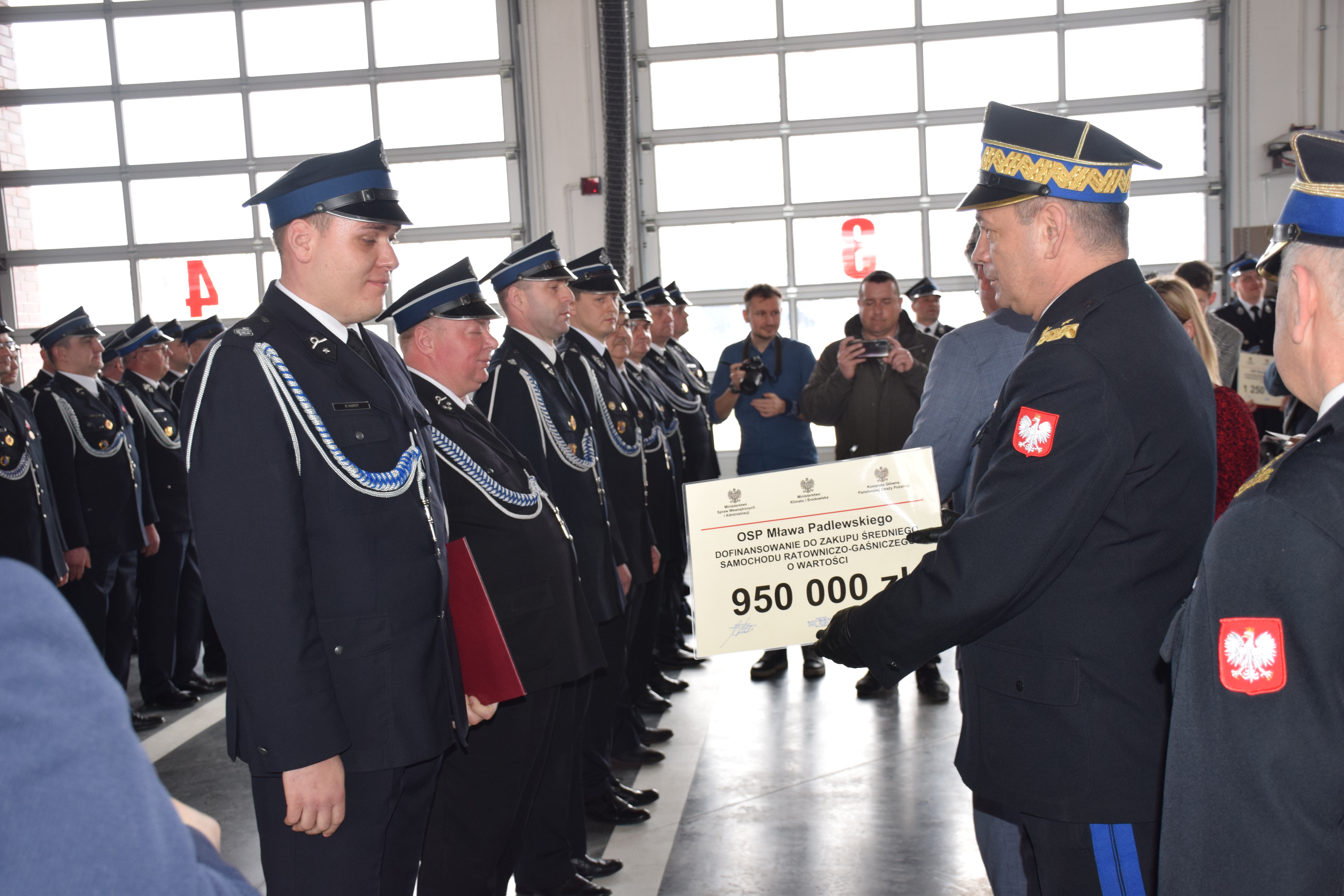 Promesy na zakup średnich samochodów ratowniczo-gaśniczych (GBA) odebrali druhowie z OSP: Nasierowo Górne, Gostynin, Mchowo, Mława Padlewskiego, Łąck, Gójsk, Gozdowo i Kuczbork .