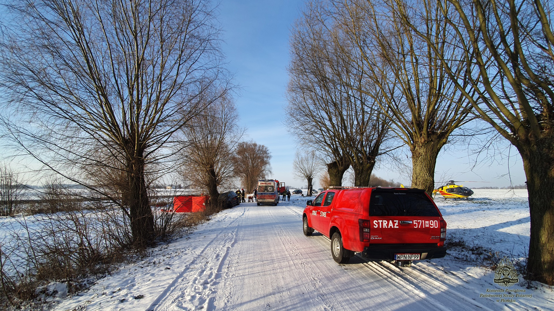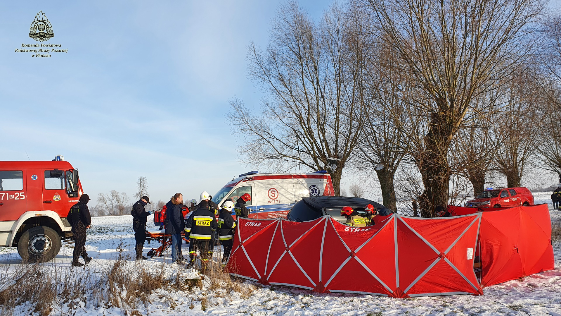 Pojazdem podróżowały trzy osoby, w tym roczne dziecko. Straż pożarna przybyła na miejsce zdarzenia po 12 minutach od zgłoszenia. Po przybyciu okazało się, że w najgorszym stanie był kierowca, u którego stwierdzono brak czynności życiowych. Działania straży pożarnej polegały na zabezpieczeniu miejsca zdarzenia, podjęciu resuscytacji u kierowcy pojazdu oraz udzielenia kwalifikowanej pierwszej pomocy pozostałym uczestnikom wypadku. Dzięki resuscytacji prowadzonej przez osobę postroną, strażaków ratowników oraz zespół pogotowia ratunkowego, kierującemu przywrócono czynności życiowe.
