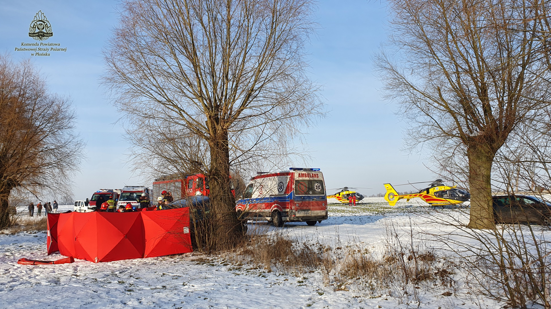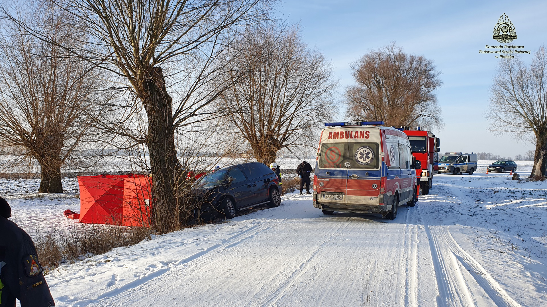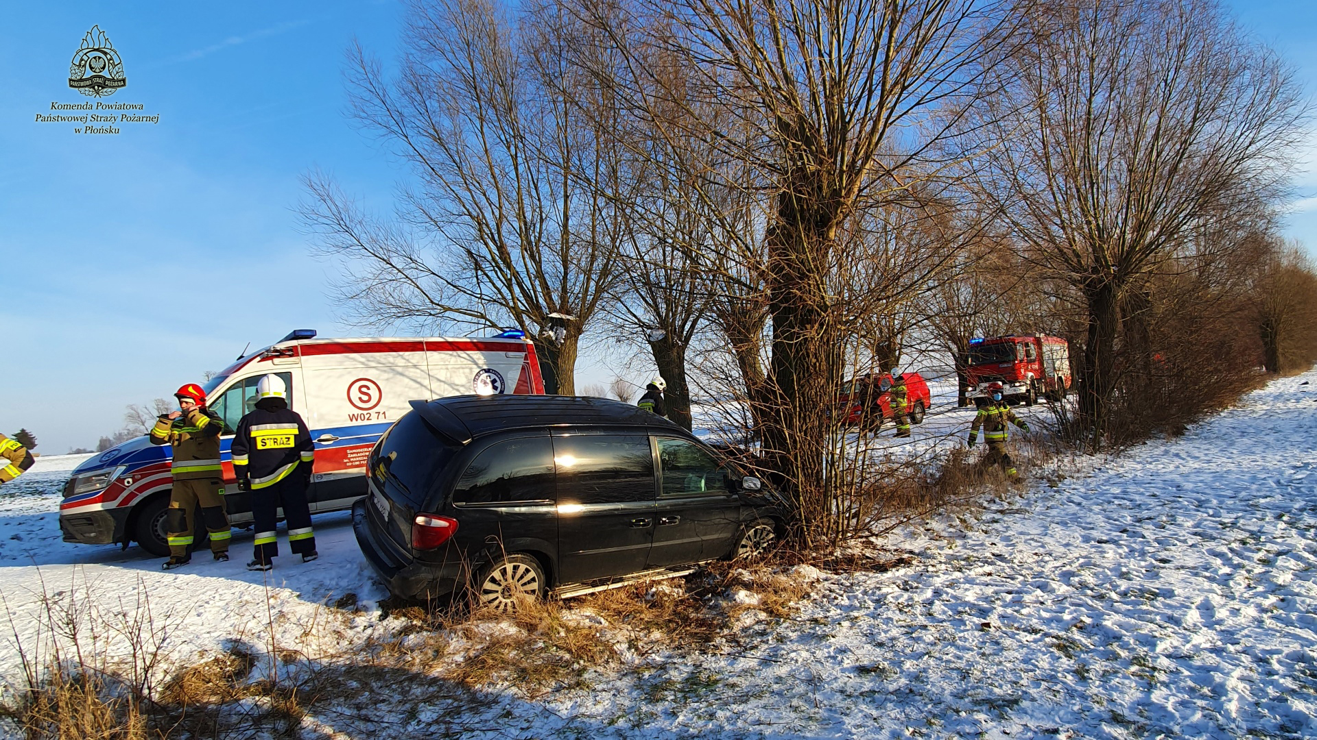 1 lutego b.r. w Nowym Guminie (gm. Dzierzążnia) doszło do wypadku samochodu osobowego, który wypadł z drogi i uderzył w drzewo.