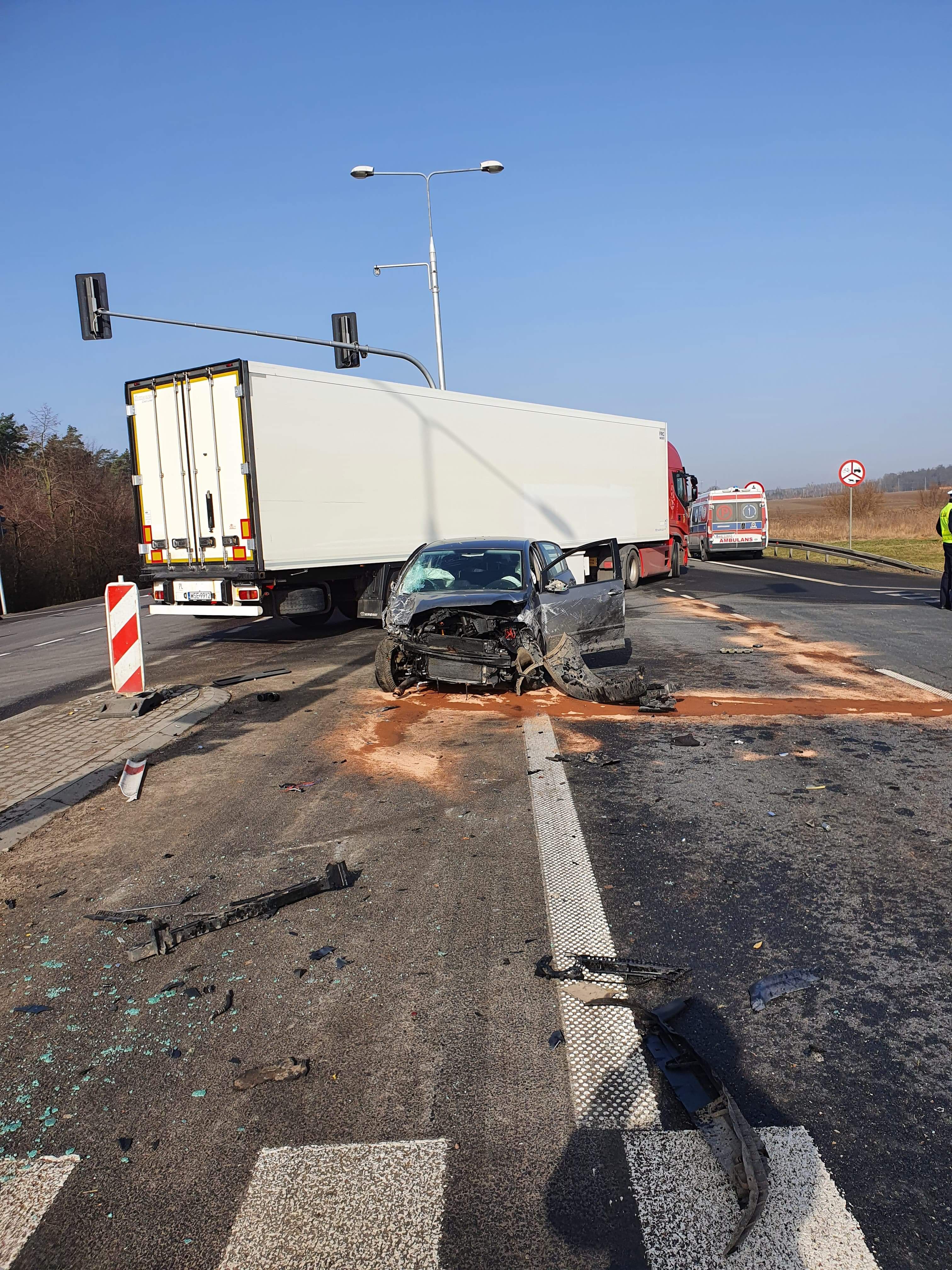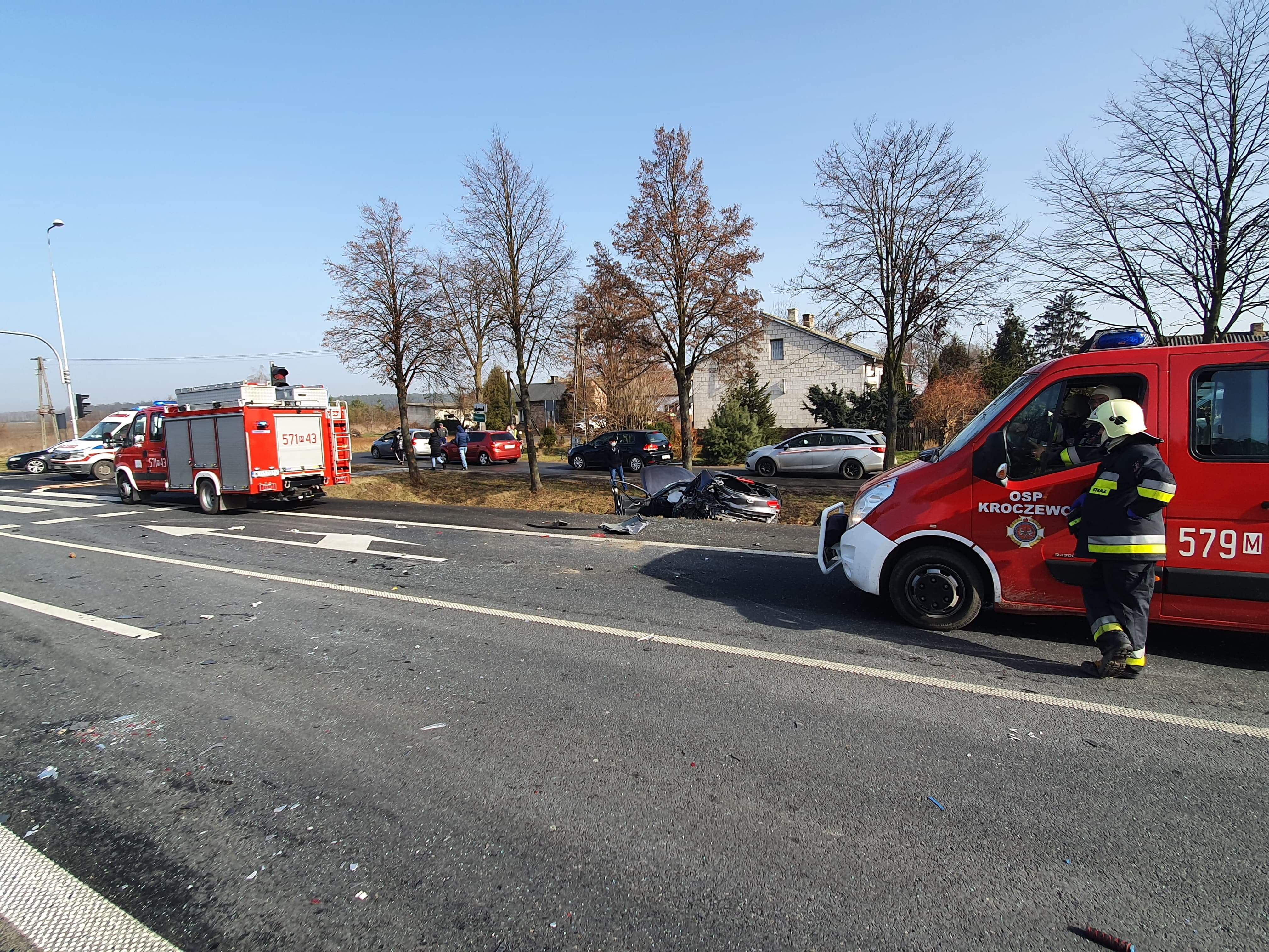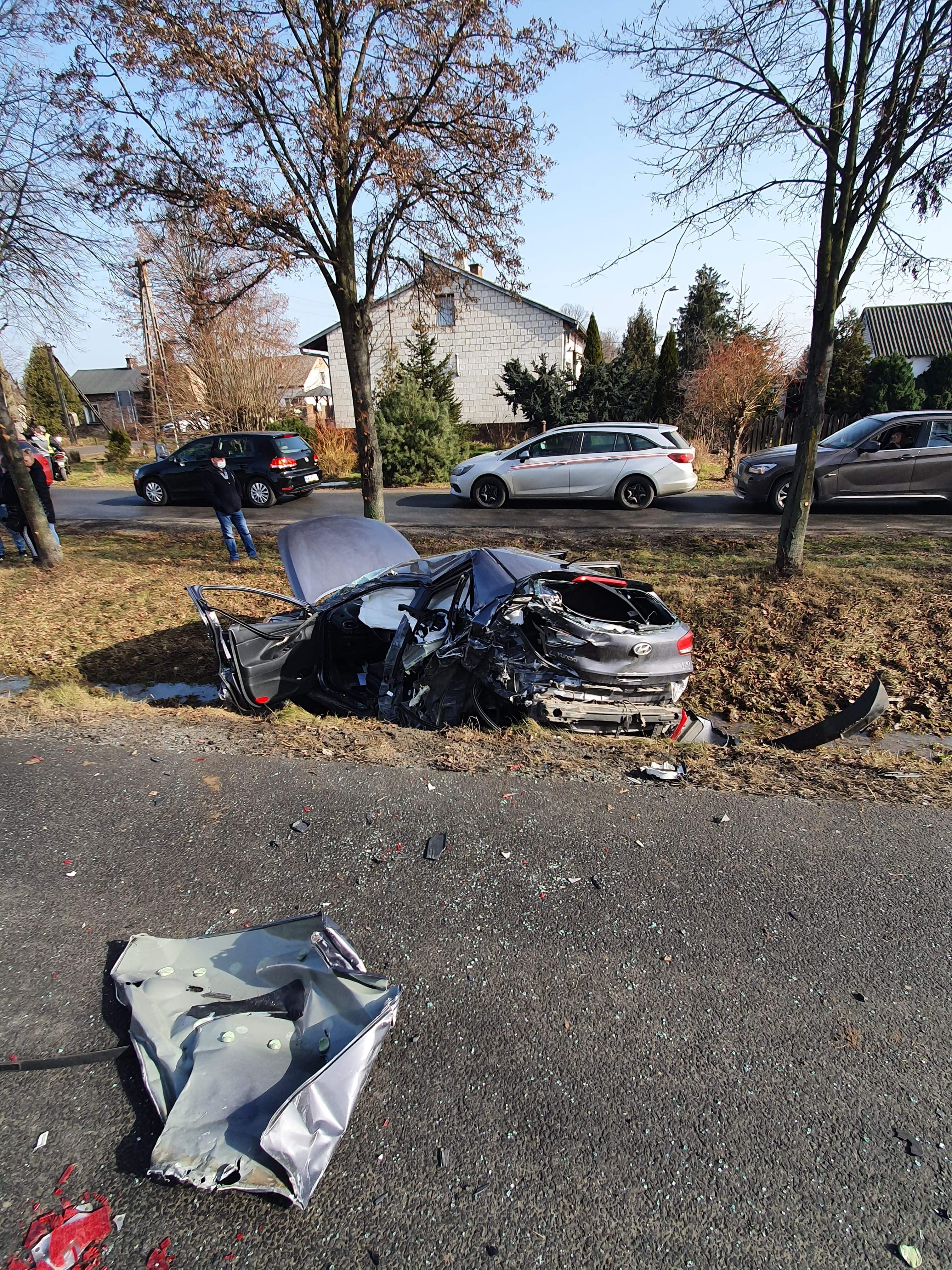 Samochód Volkswagen Golf uderzył w tył Hyundaia, a następnie w słup sygnalizatora świetlnego przejścia dla pieszych. Jako pierwsi pomocy poszkodowanym udzielali strażak z JRG 4 Przemysław Niewiadomski oraz strażak z OSP Kraszewo Dawid Podgórski, którzy najechali na wypadek. Działania straży pożarnej polegały na zabezpieczeniu miejsca zdarzenia, ewakuowaniu dwóch zakleszczonych osób z samochodu Hyundai i udzieleniu kwalifikowanej pierwszej pomocy. W działaniach brały udział 4 zastępy PSP i OSP.
