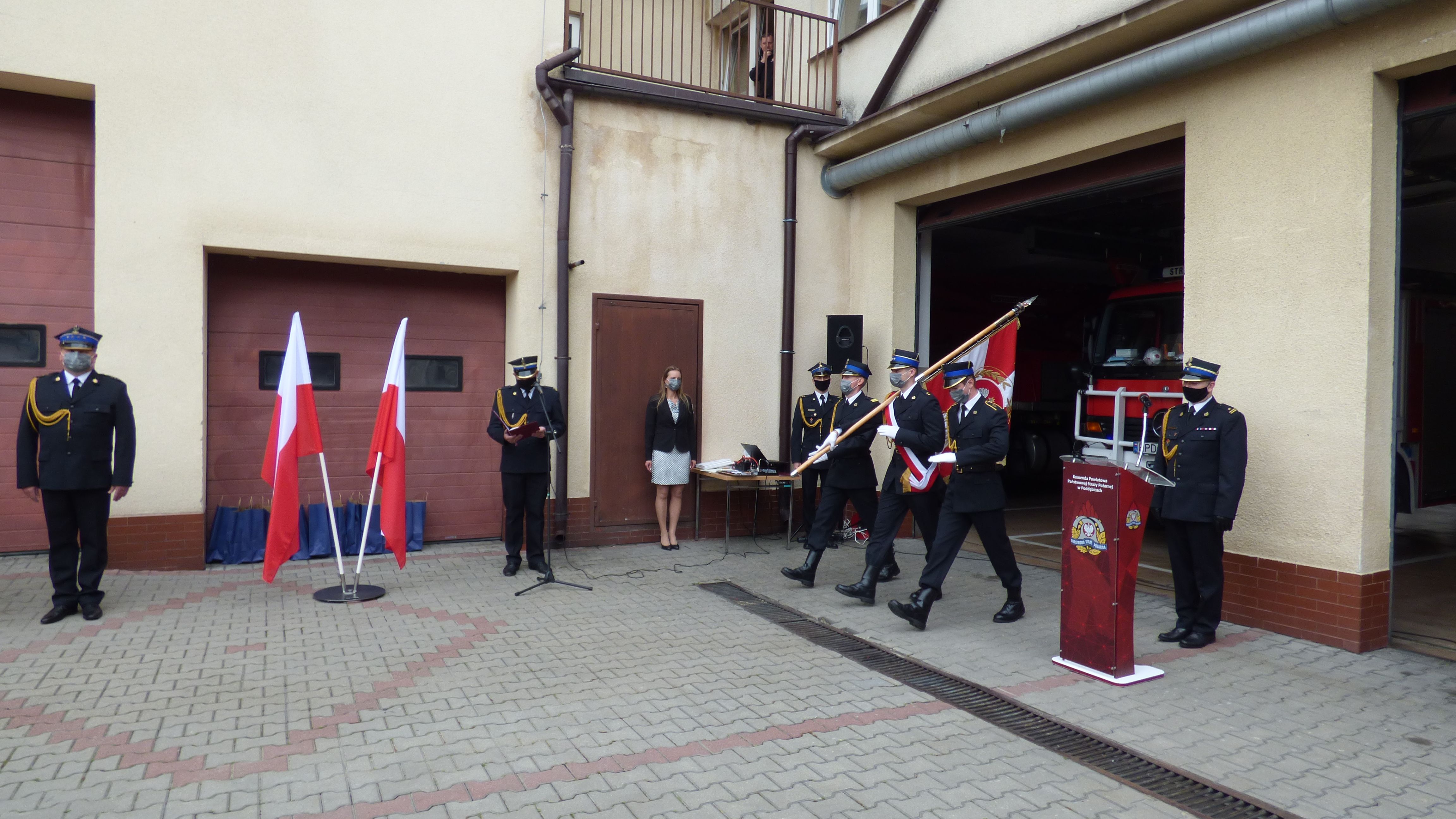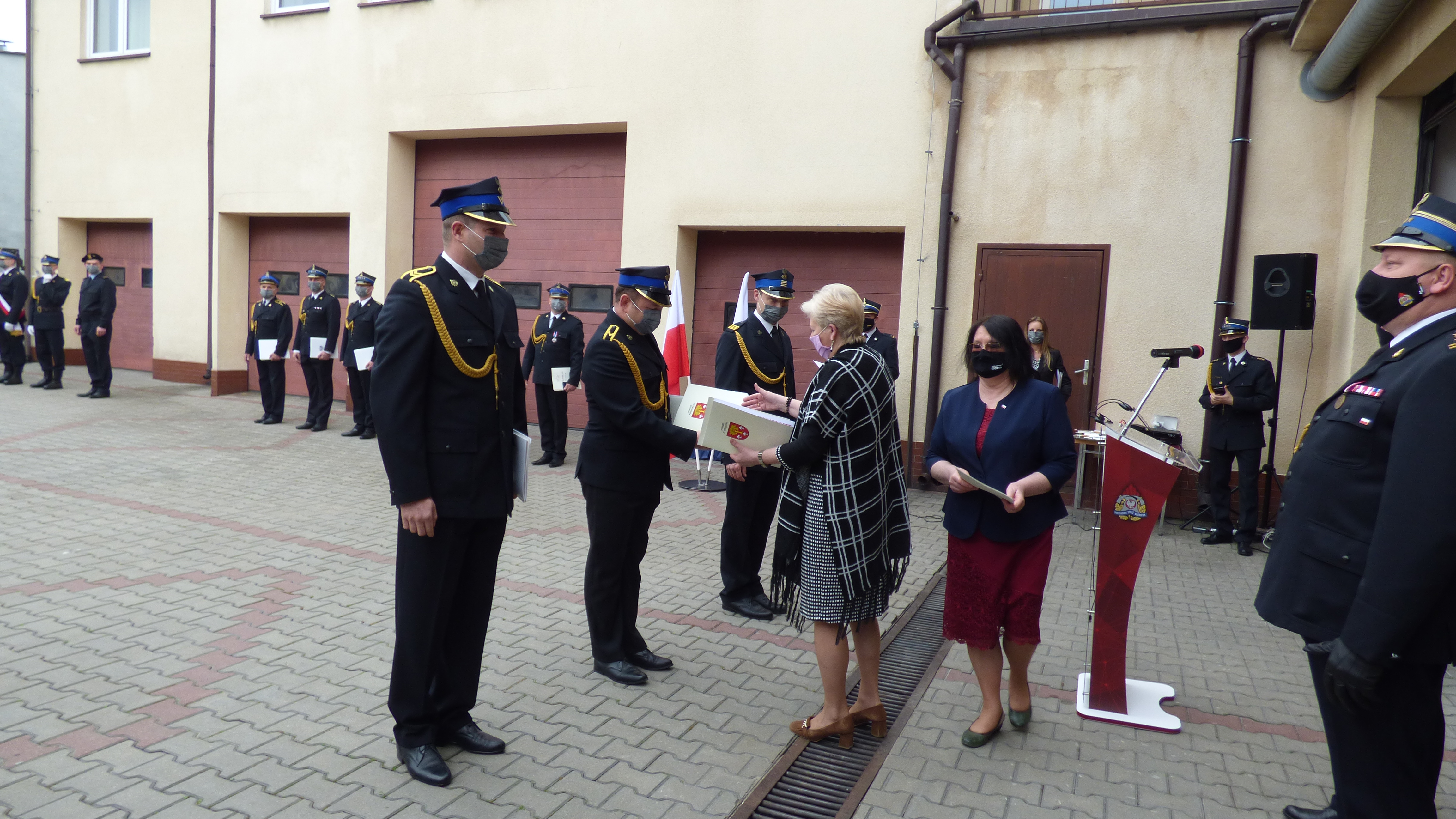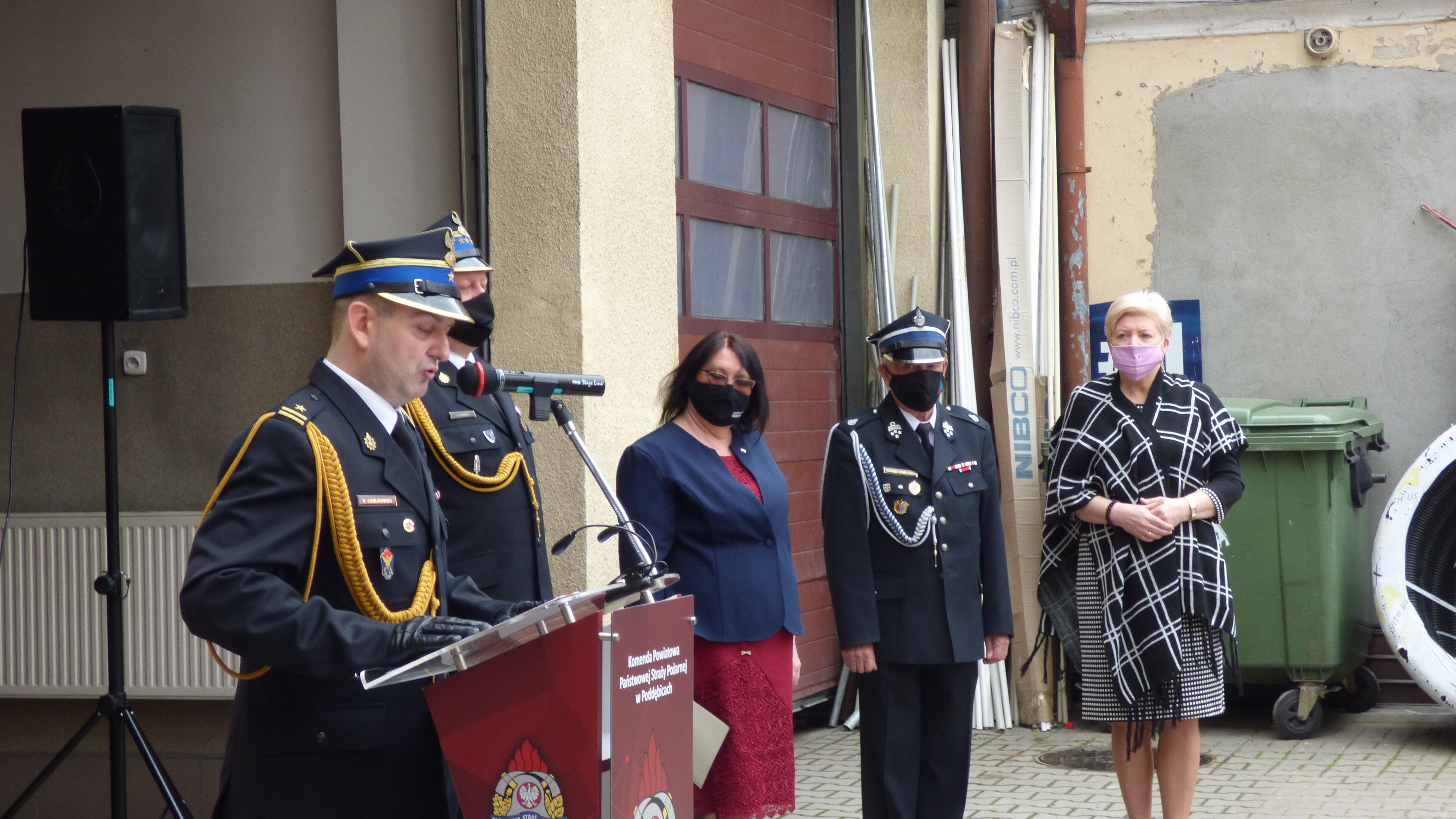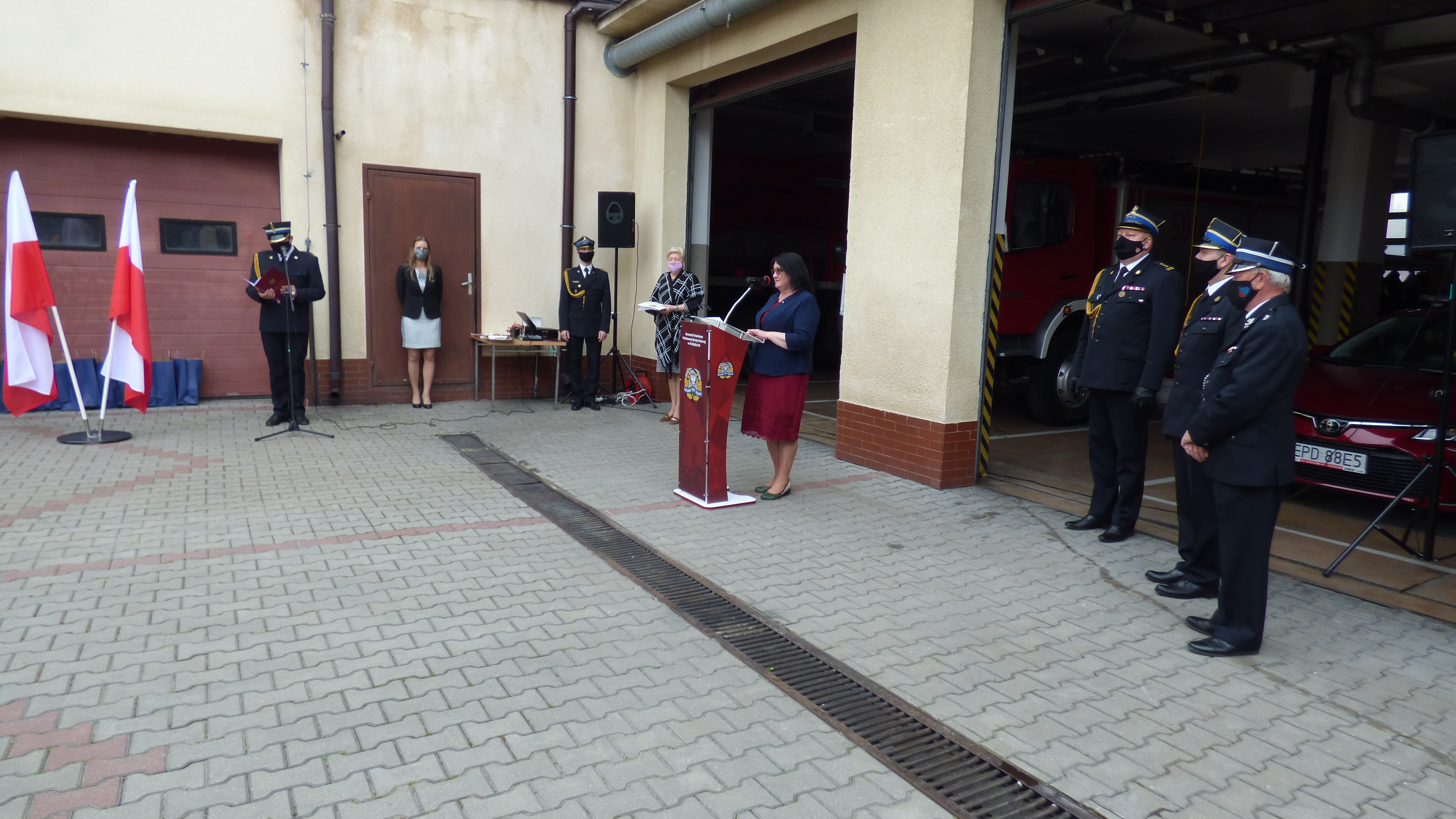 14 maja 2021 roku w Komendzie Powiatowej PSP w Poddębicach odbyły się uroczystości z okazji Dnia Strażaka. W uroczystym apelu uczestniczyli: Łódzki Komendant Wojewódzki PSP w Łodzi – st. bryg. Grzegorz Janowski, Starosta Powiatu Poddębickiego - Pani Małgorzata Komajda, Radna Sejmiku Województwa Łódzkiego - Pani Dorota Więckowska, Prezesa Zarządu Oddziału Powiatowego ZOSP RP w Poddębicach – dh Tadeusz Chmielewski oraz funkcjonariusze i pracownicy cywilni Komendy Powiatowej PSP w Poddębicach. Po wprowadzeniu Sztandaru Komendy Powiatowej i odśpiewaniu hymnu państwowego, Komendant Powiatowy PSP w Poddębicach mł. bryg. Radosław Cieślikowski przywitał wszystkich zgromadzonych. Przekazał podziękowania oraz życzenia dla wszystkich funkcjonariuszy, pracowników cywilnych i ich rodzin „W tym wyjątkowym czasie, w dniu naszego święta chciałbym Wam serdecznie podziękować za zaangażowanie i ofiarność jaką wkładacie w pełnienie służby, za niesienie pomocy drugiemu człowiekowi. Każdego dnia ratujecie zdrowie i życie ludzkie, mienie i środowisko. Niesiecie pomoc naszym mieszkańcom, którzy znaleźli się w niebezpieczeństwie”. Podczas uroczystości odczytano również życzenia Marszałek Sejmu Rzeczypospolitej Polskiej skierowane do wszystkich strażaków. Po odczytaniu postanowień o nadaniu odznaczeń i rozkazów personalnych nastąpił akt dekoracji oraz wręczono akty nadania wyższych stopni służbowych. Następnie Łódzki Komendant Wojewódzki st. bryg. Grzegorz Janowski skierował kilka słów do uczestników uroczystości, w których podziękował za dotychczasową służbę oraz złożył życzenia dla wszystkich strażaków i pracowników cywilnych. Przekazał również gratulacje awansowanym i odznaczonym.