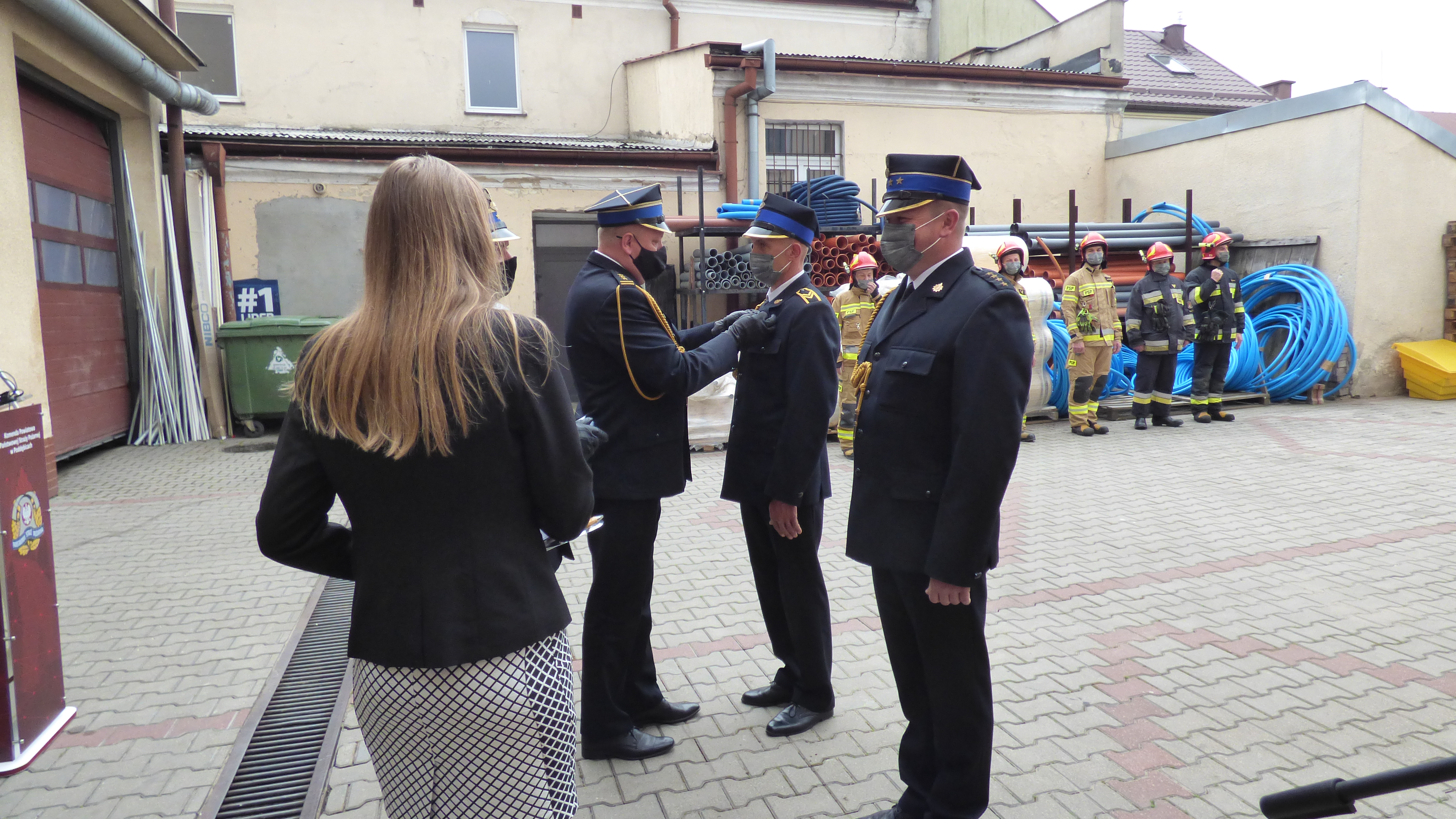 Srebrną Odznaką ,,ZASŁUŻONY DLA OCHRONY PRZECIWPOŻAROWEJ”