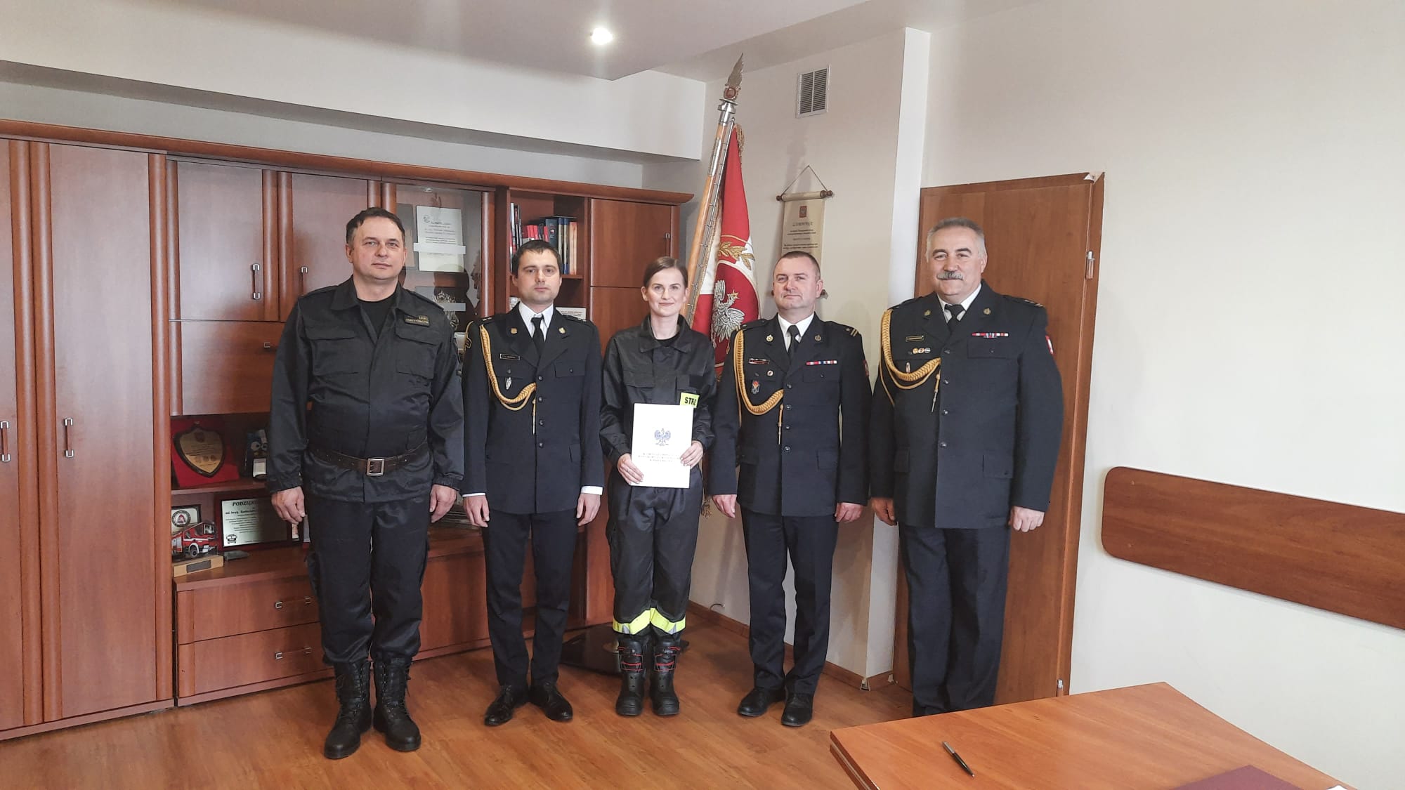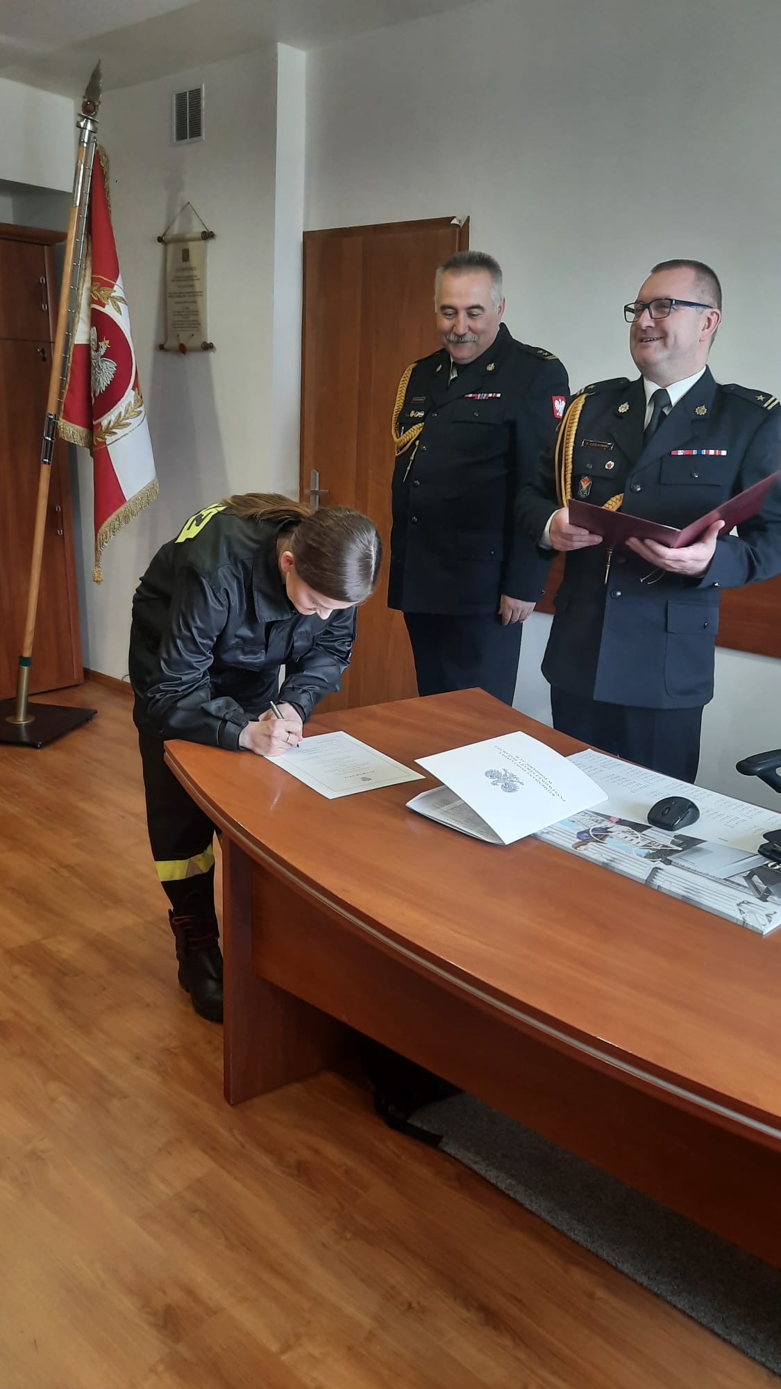 Witamy nowo przyjętego do służby strażaka w szeregach Państwowej Straży Pożarnej i życzymy bezpiecznej służby oraz wiele satysfakcji z wybranego zawodu.