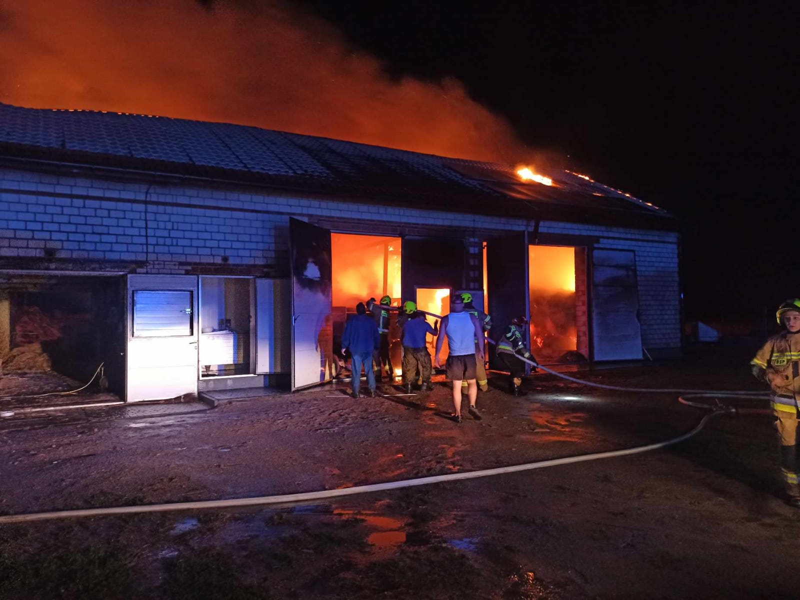 16.08.2023 r. o godzinie 20.41 do Stanowiska Kierowania Komendanta Powiatowego Państwowej Straży Pożarnej w Poddębicach wpłynęło zgłoszenie o pożarze budynku inwentarsko – składowego w gospodarstwie rolnym w miejscowości Wierzbowa gmina Wartkowice. Po dojeździe na miejsce zdarzenia zastano budynek w dużej części objęty pożarem. Przed przybyciem Jednostek Ochrony Przeciwpożarowej udało się właścicielom ewakuować z wewnątrz zwierzęta na przyległy teren poza obszar prowadzonych działań. W trakcie zdarzenia ratownicy zmagali się z bardzo dużym zadymieniem, pracą na wysokości, a większość działań prowadzona była w porze nocnej. W wyniku podjętych działań uratowano część budynku objętego pożarem oraz maszyny rolnicze. Wartość uratowanego mienia oszacowano na kwotę 200 tyś. zł.