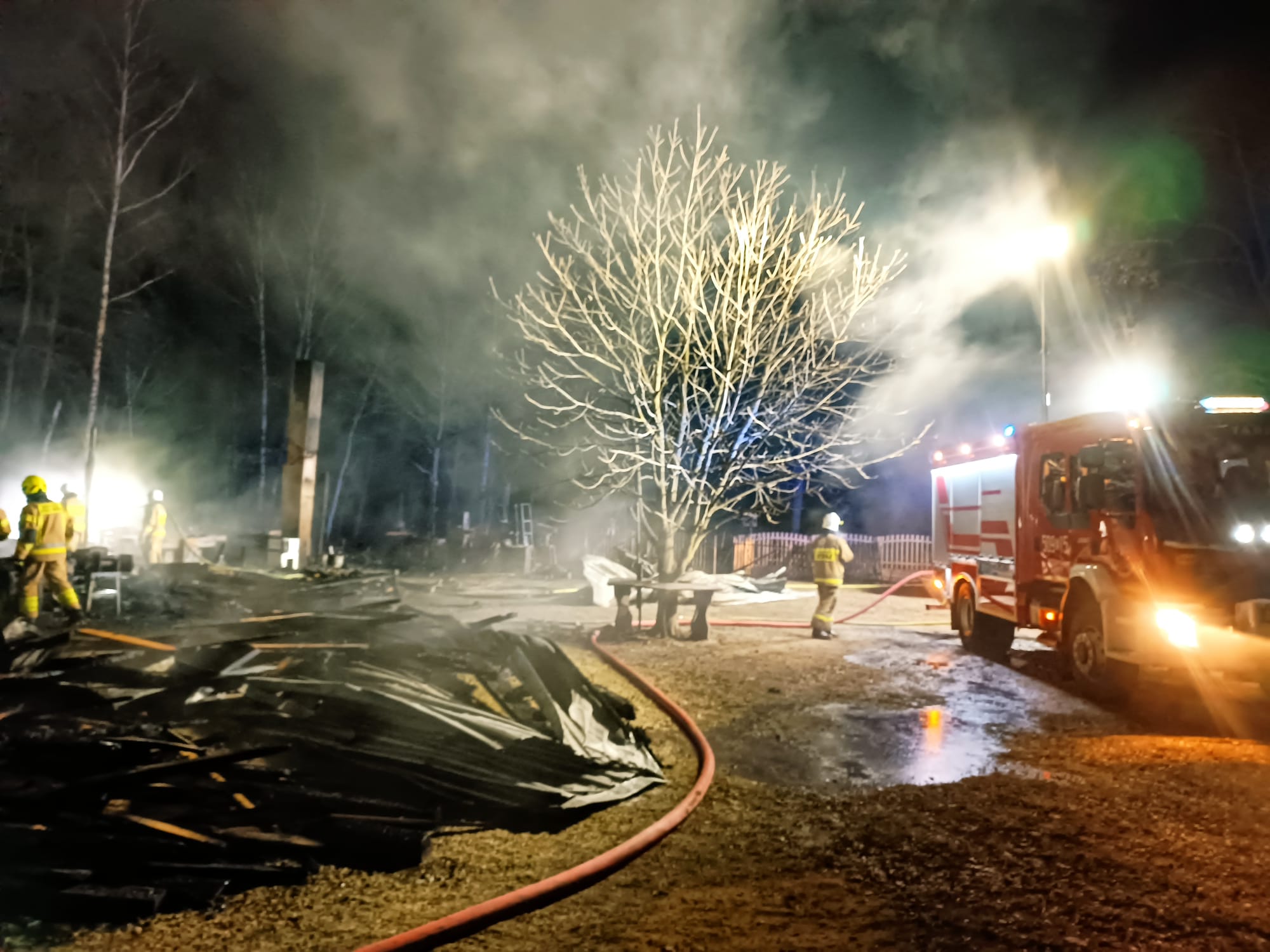 09.01.2024 r. o godzinie 0.45 do Stanowiska Kierowania Komendanta Powiatowego Państwowej Straży Pożarnej w Poddębicach wpłynęło zgłoszenie o pożarze stolarni w miejscowości Antoniew-Lubocha na terenie gminy Dalików. Po dojeździe na miejsce zdarzenia zastano kompleks budynków (stolarnia, garaż, drewutnia), który całkowicie był objęty pożarem. W wyniku zdarzenia żadna osoba nie została poszkodowana. Pożar niestety przyniósł straty materialne w budynkach, wyposażeniu obiektu, a także spaleniu uległ samochód dostawczy. W trakcie zdarzenia ratownicy zmagali się z bardzo dużym zadymieniem oraz trudnymi warunkami atmosferycznymi – niską temperaturą.
