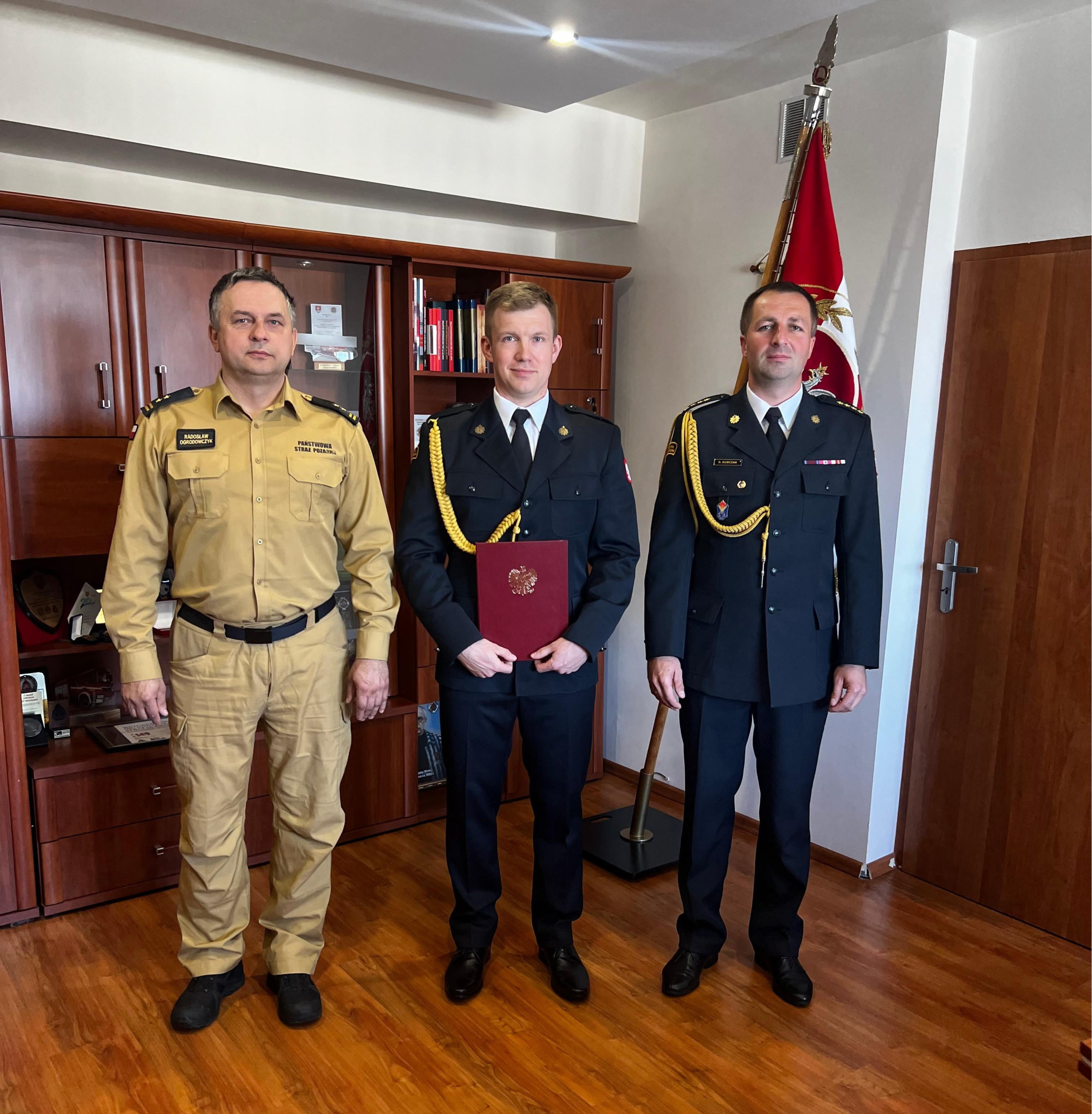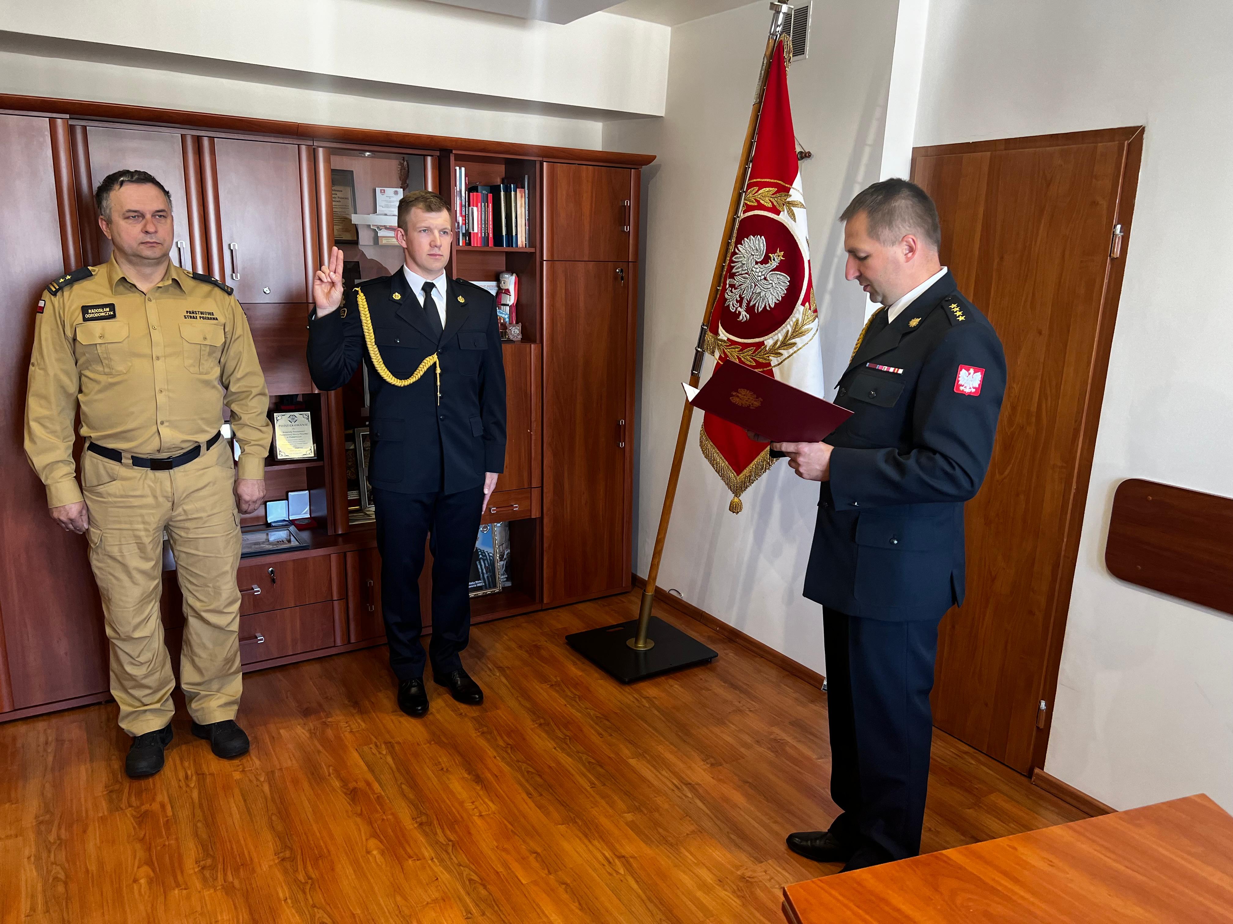 Nowo przyjętego do służby strażaka witamy w szeregach Państwowej Straży Pożarnej i życzymy bezpiecznej służby oraz wiele satysfakcji z wybranego zawodu.