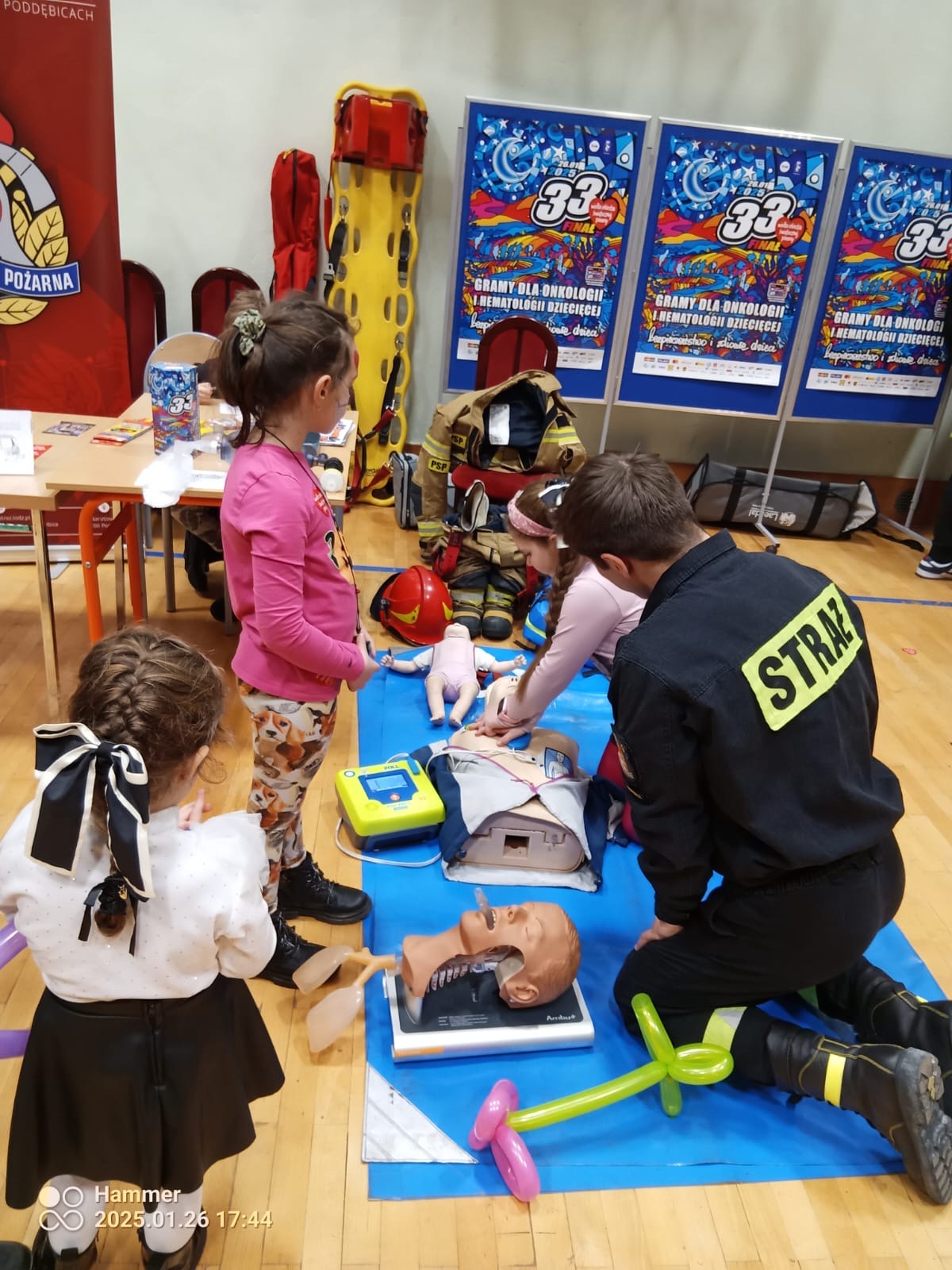 Funkcjonariusze z Komendy Powiatowej Państwowej Straży Pożarnej w Poddębicach aktywnie włączyli się w 33. Finał Wielkiej Orkiestry Świątecznej Pomocy, który odbył się 26 stycznia 2025 roku na hali sportowej przy Liceum Ogólnokształcącym w Poddębicach. Tegoroczny finał przebiegał pod hasłem „Gramy dla onkologii i hematologii dziecięcej!”, którego motywem przewodnim było bezpieczeństwo i zdrowie dzieci.