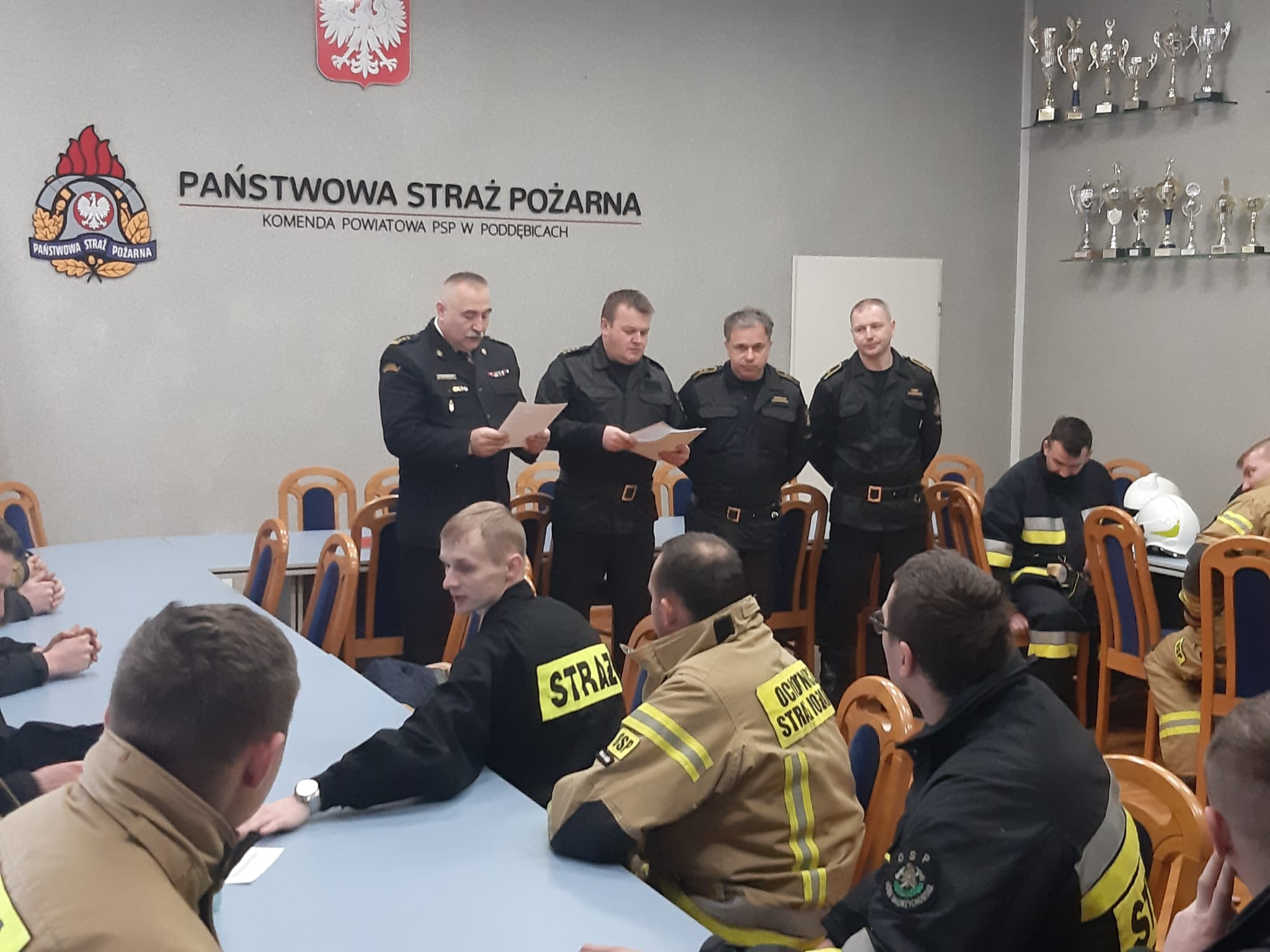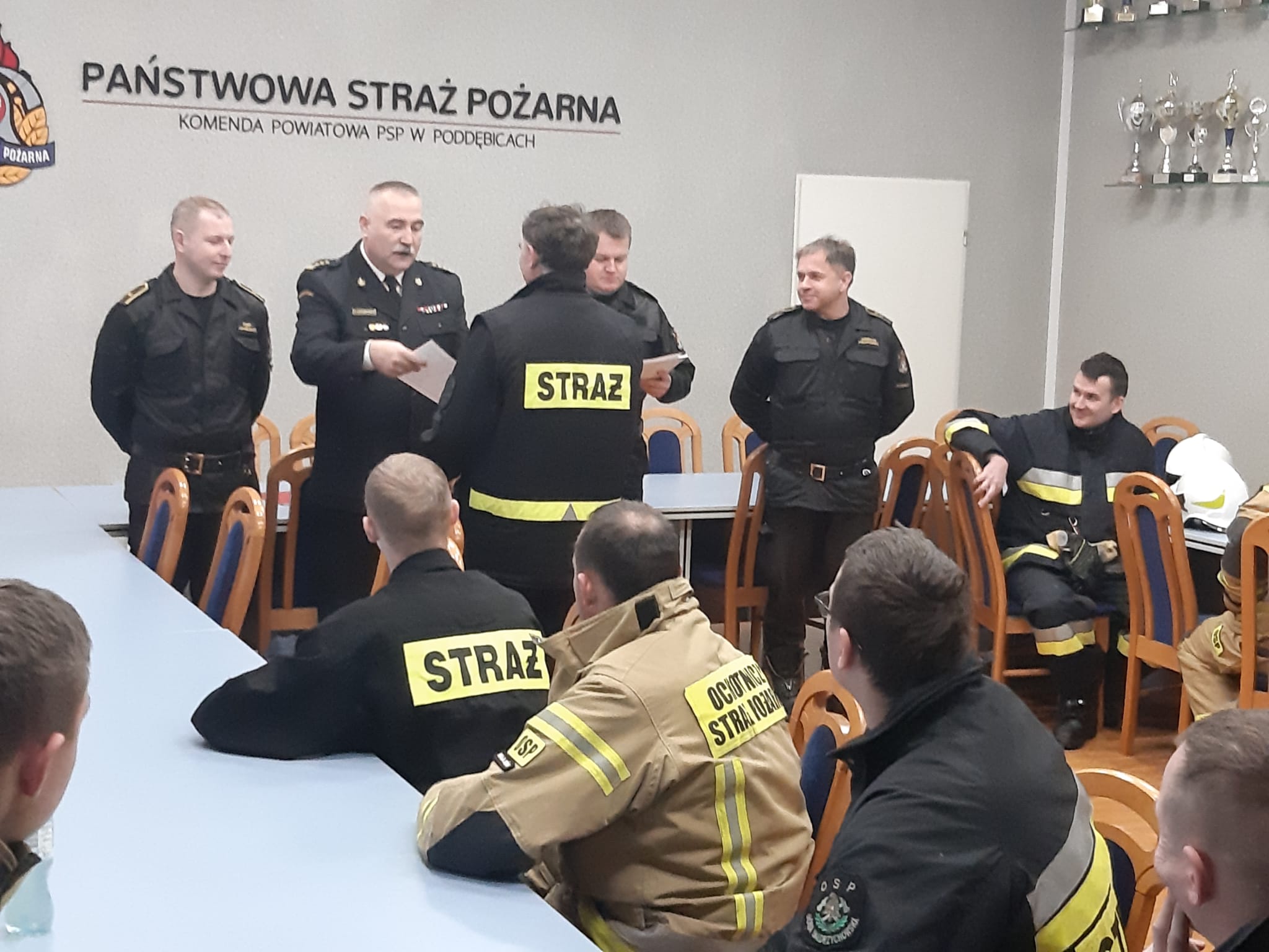 12.02.2023 r. w Komendzie Powiatowej PSP w Poddębicach został przeprowadzony egzamin końcowy dla strażaków OSP, którzy uczestniczyli w szkoleniu kierowców konserwatorów sprzętu ratowniczego dla członków Ochotniczych Straży Pożarnych. Egzamin przeprowadziła Komisja Egzaminacyjna, powołana przez Komendanta Powiatowego PSP w Poddębicach, składająca się z: