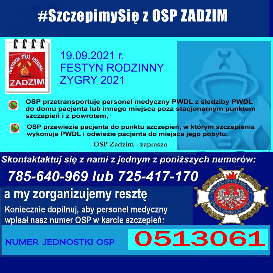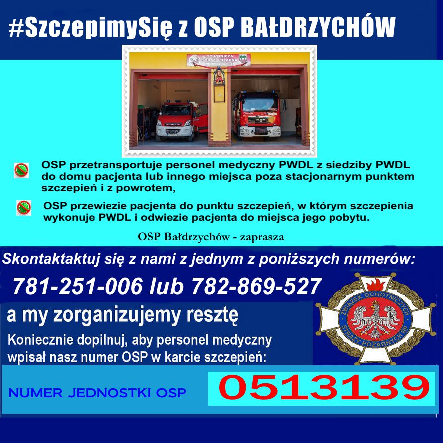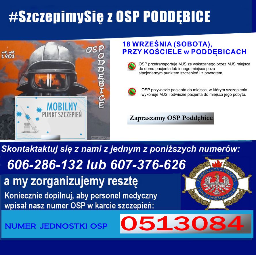 W całym kraju trwa akcja #SzczepimySię z OSP, w ramach której Jednostki Ochotniczych Straży Pożarnych pomagają osobom chętnym, w zaszczepieniu się przeciw COVID-19 poprzez:
