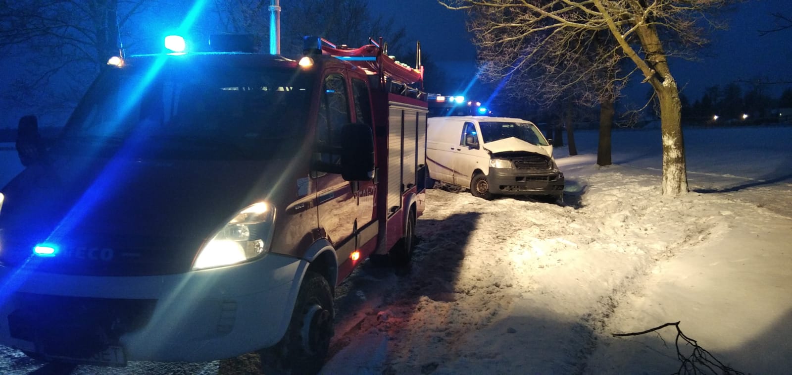 W dniu 13.02.2021 r. o godz. 6.05 otrzymaliśmy informację o zdarzeniu drogowym na drodze krajowej nr 72 w miejscowości Złotniki, gm. Dalików. Po przyjeździe na miejsce zastano samochód marki VW Transporter, który uderzył w przydrożne drzewo. Pojazdem podróżowała jedna osoba, której strażacy udzielili kwalifikowanej pierwszej pomocy, następnie przekazano osobę poszkodowaną przybyłemu na miejsce Zespołowi Ratownictwa Medycznego. W trakcie prowadzonych działań ratowniczych droga krajowa była zablokowana.