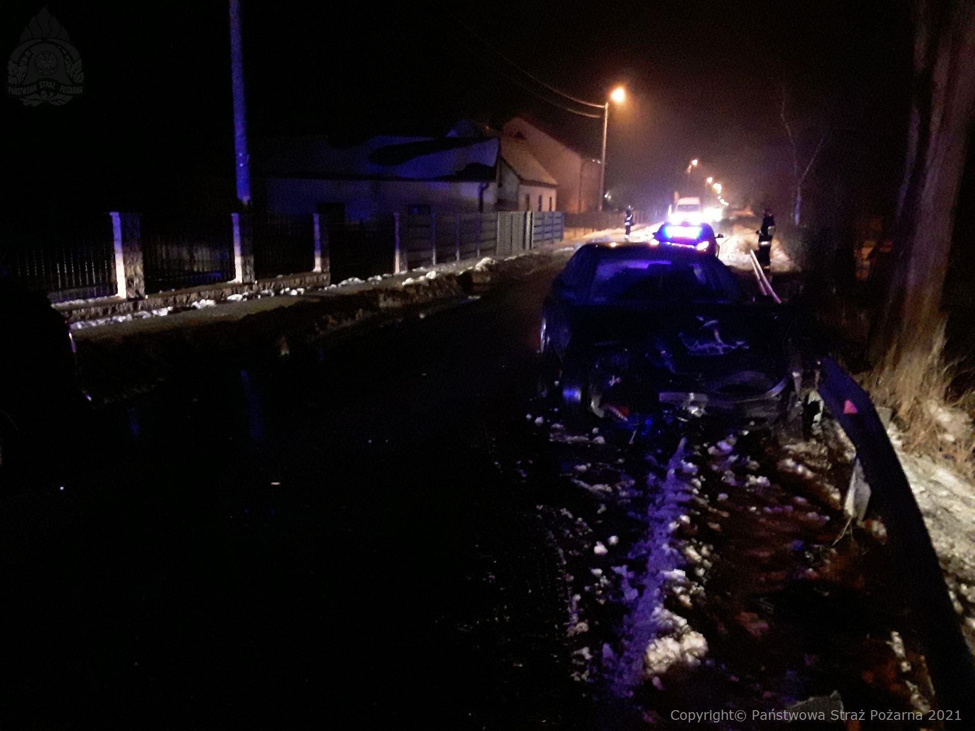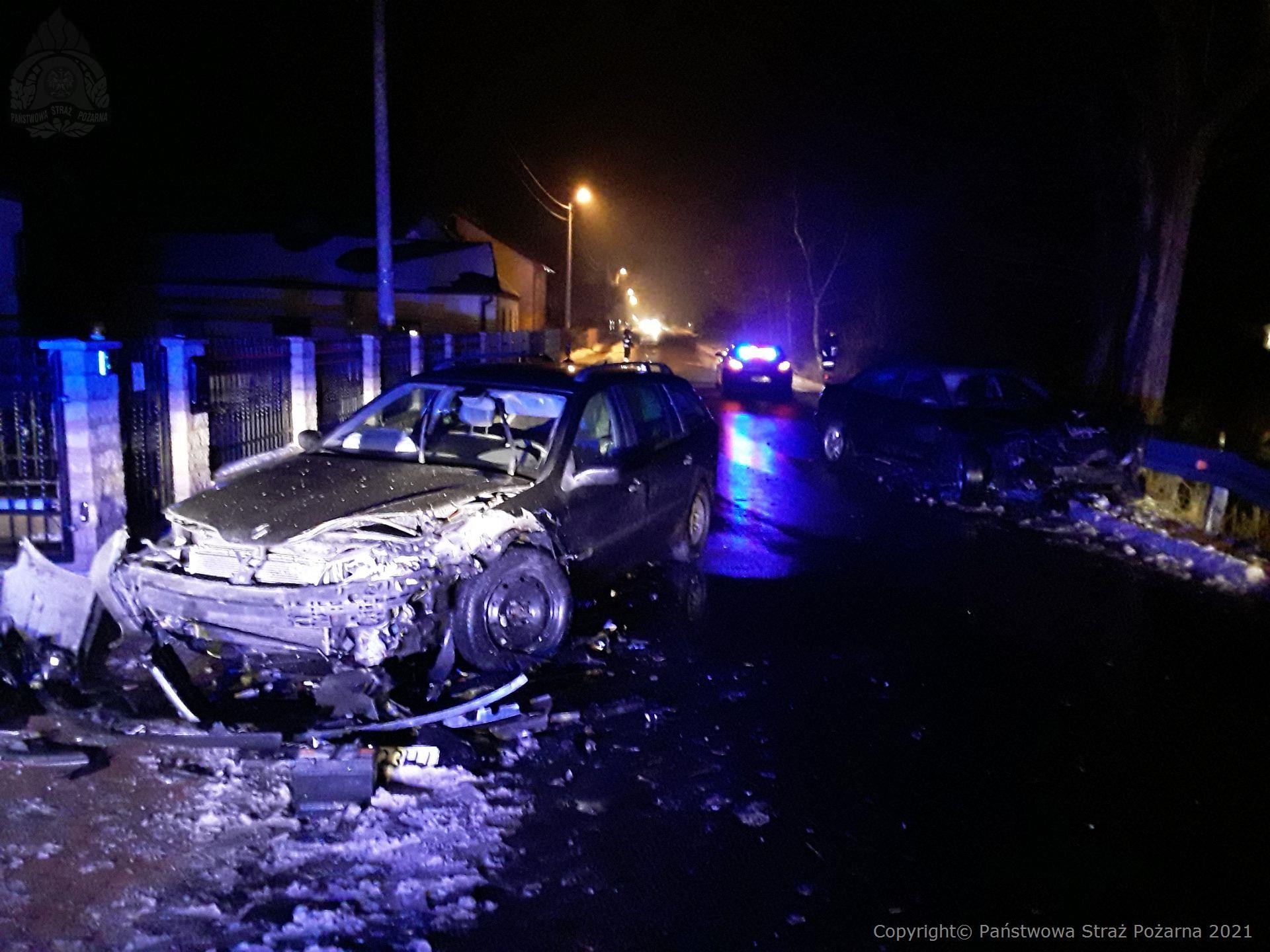 W dniu 18.02.2021 r. o godzinie 17.51 Stanowisko Kierowania Komendanta Powiatowego PSP w Poddębicach otrzymało informację o wypadku dwóch pojazdów osobowych w miejscowości Chropy gm. Poddębice. Po przyjeździe na miejsce zastano dwa uszkodzone pojazdy (Renault, Audi), którymi podróżowały trzy osoby, jedna z tych osób w wyniku zdarzenia została poszkodowana i znajdowała się pod opieką ZRM.