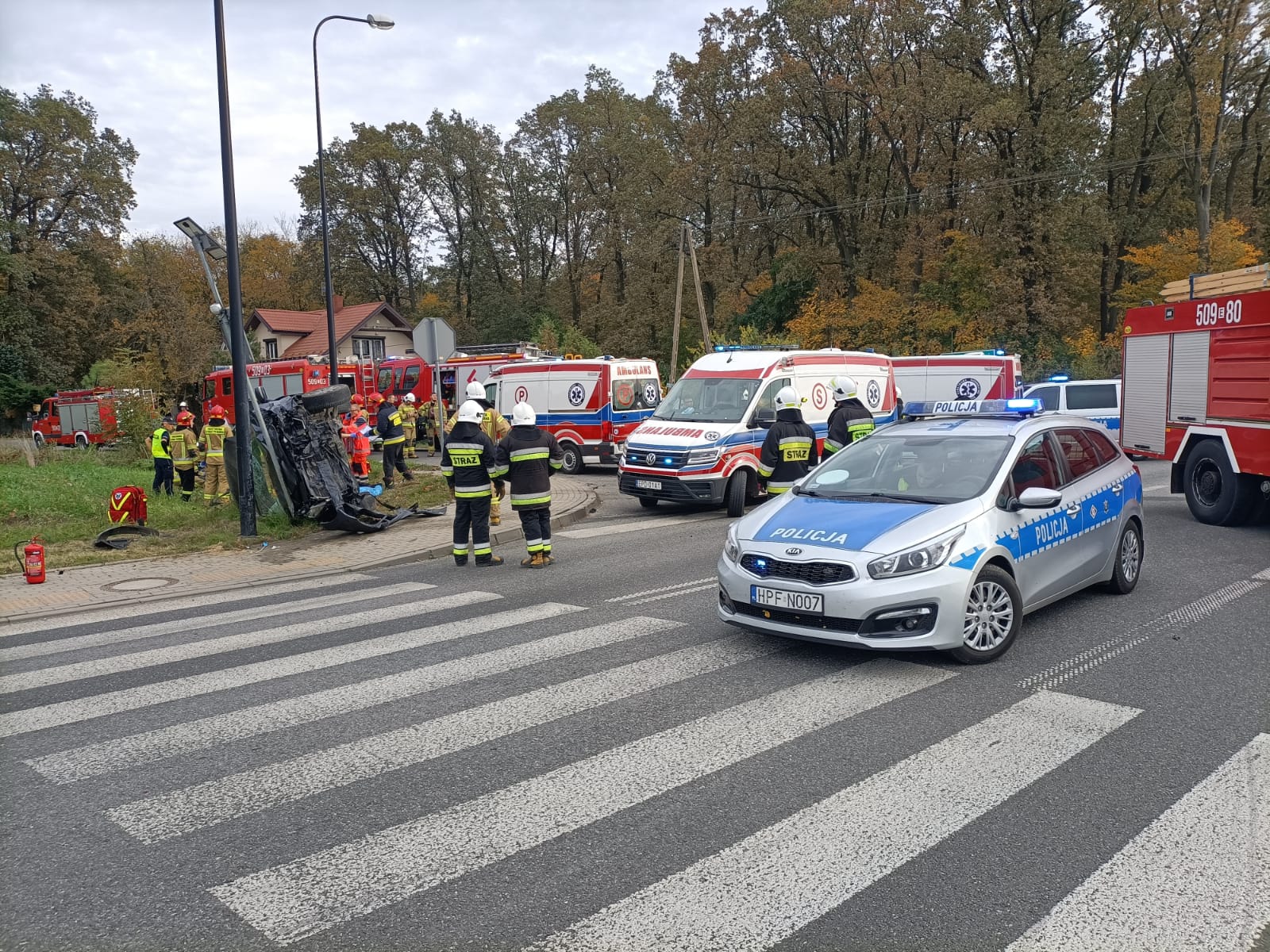 W dniu 16 października 2022 r. o godzinie 14:49 Stanowisko Kierowania Komendanta PSP w Poddębicach otrzymało informację z CPR Łódź o wypadku komunikacyjnym – zderzenie pojazdów w miejscowości Orzeszków gm. Uniejów. Po przybyciu na miejscu zdarzenia zastano dwa uszkodzone samochody osobowe uczestniczące w wypadku, osoby podróżujące znajdowały się poza pojazdami. W wyniku zdarzenia trzy osoby zostały poszkodowane. Strażacy udzielili kwalifikowanej pierwszej pomocy osobom poszkodowanym, a następnie przekazali poszkodowanych przybyłym na miejsce Zespołom Ratownictwa Medycznego, które zabrały osoby ranne do szpitala.